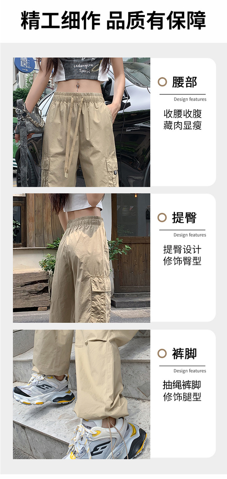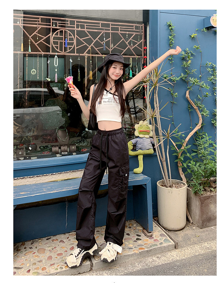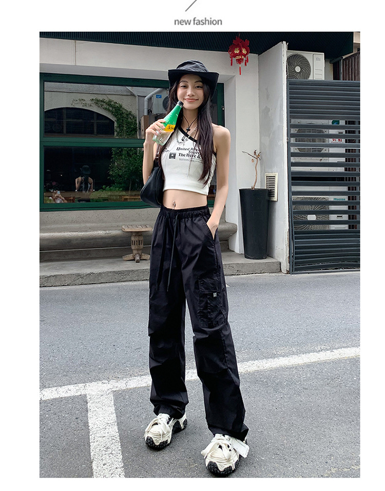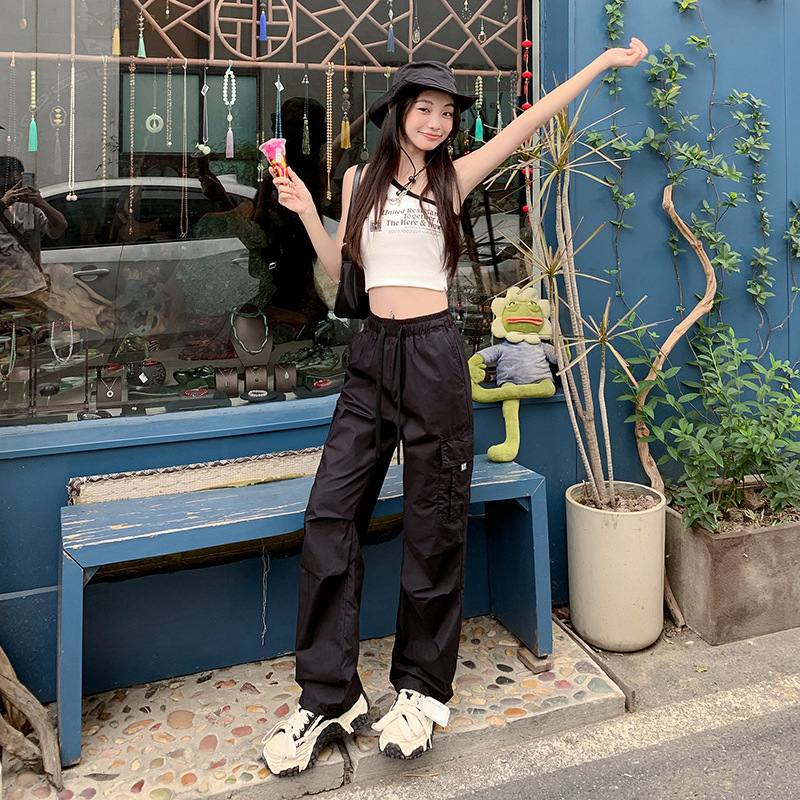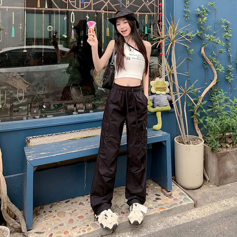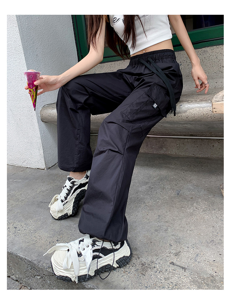 미국의 빠른 건조 작업복 여성 여름 2024 새로운 높은 허리 발가락 하이킹 바지 넓은 다리 캐주얼 스포츠 바지