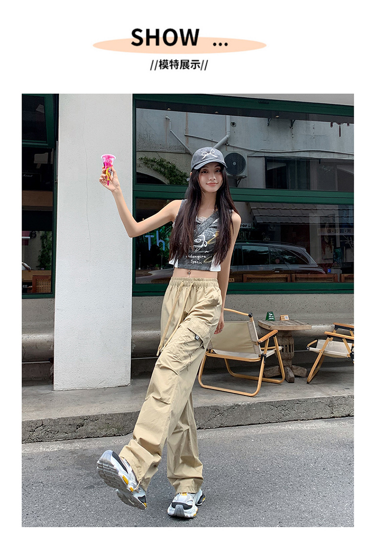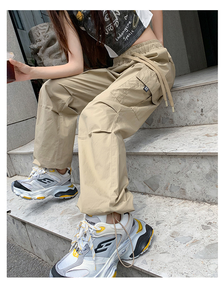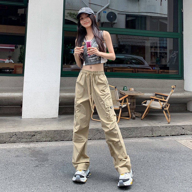 미국의 빠른 건조 작업복 여성 여름 2024 새로운 높은 허리 발가락 하이킹 바지 넓은 다리 캐주얼 스포츠 바지스토어 가기