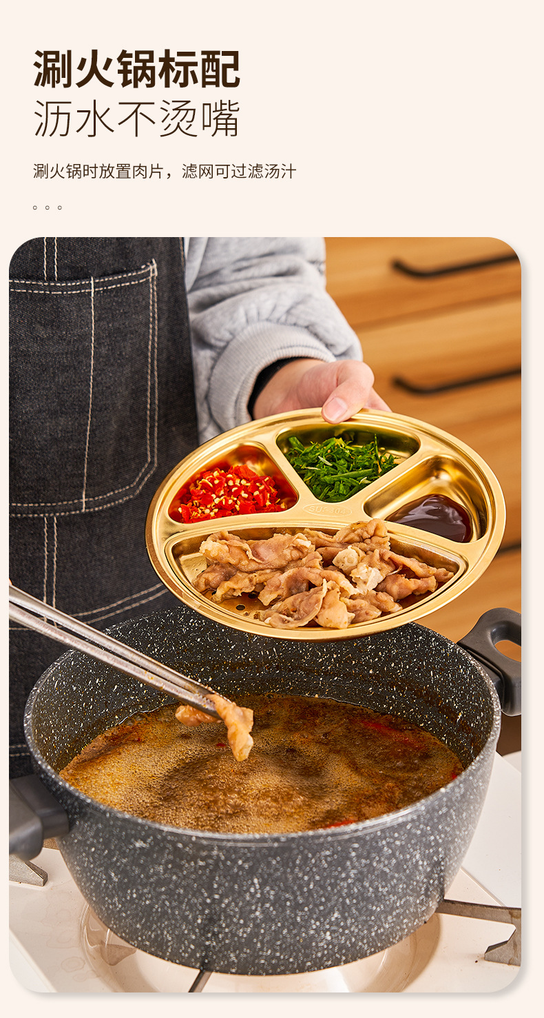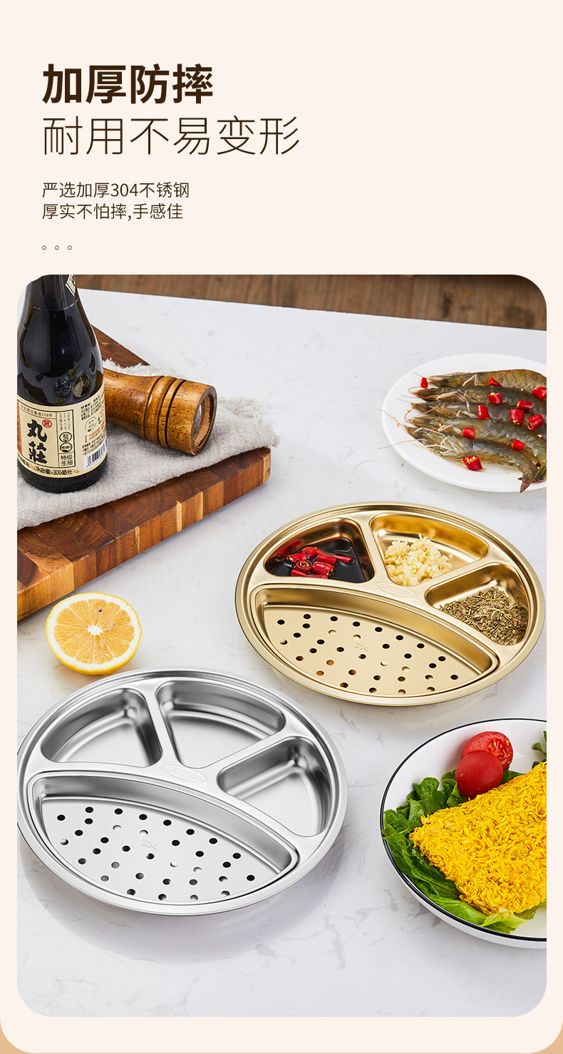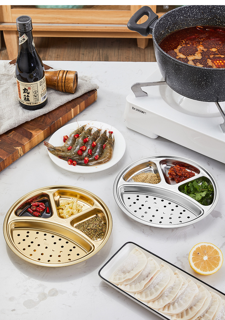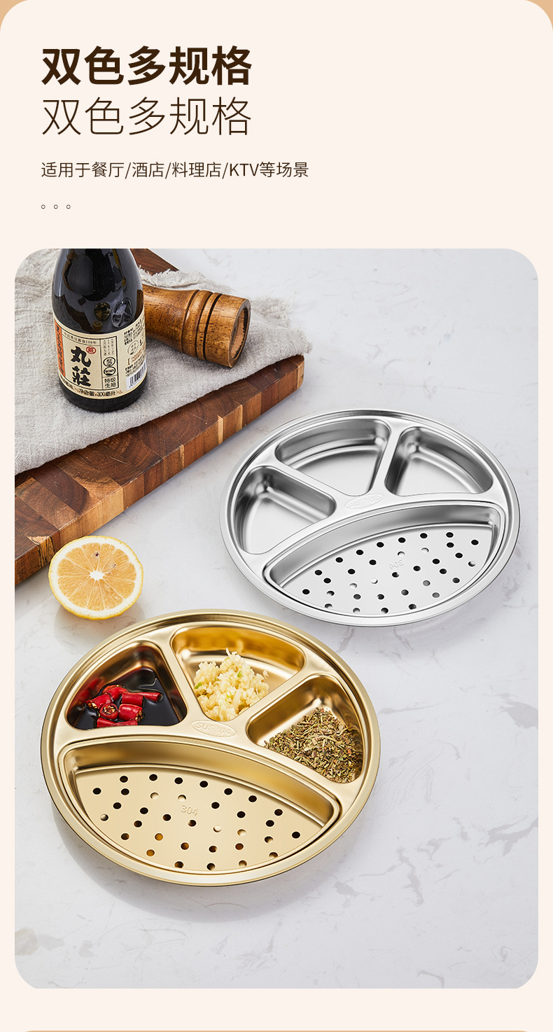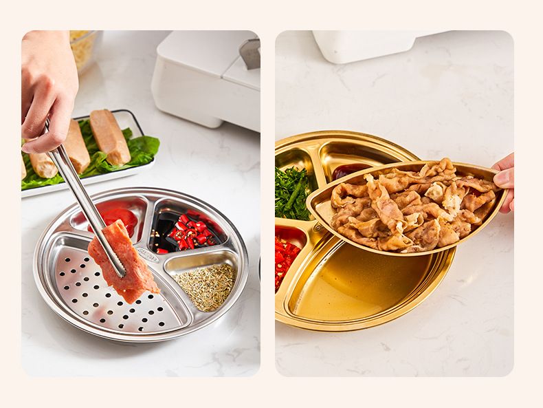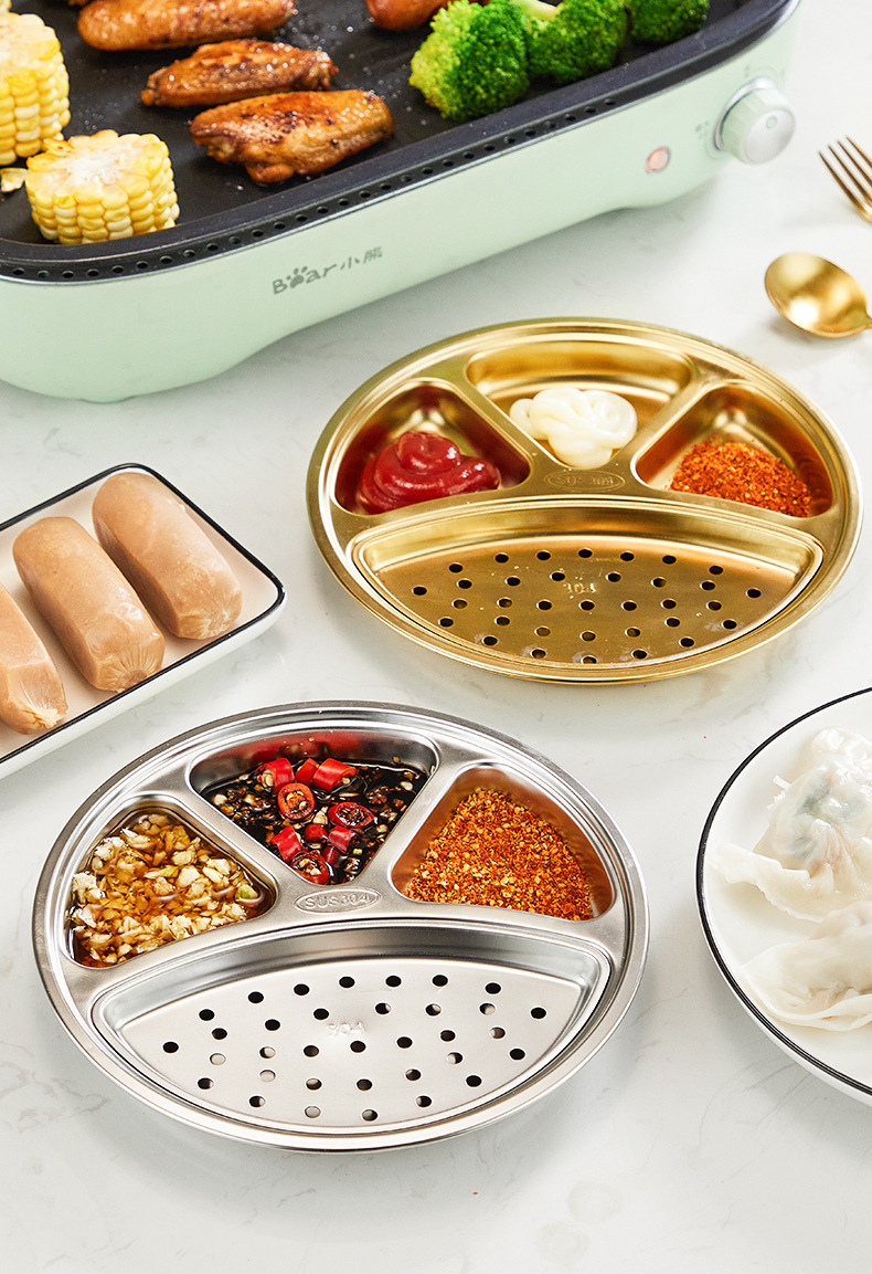 304 스테인레스 스틸 분할 디너 플레이트 이동식 및 세척 가능한 바베큐 오일 필터 플레이트 한국 소스 분할 딥 디너 플레이트 딥 오일 딥 팬스토어 가기