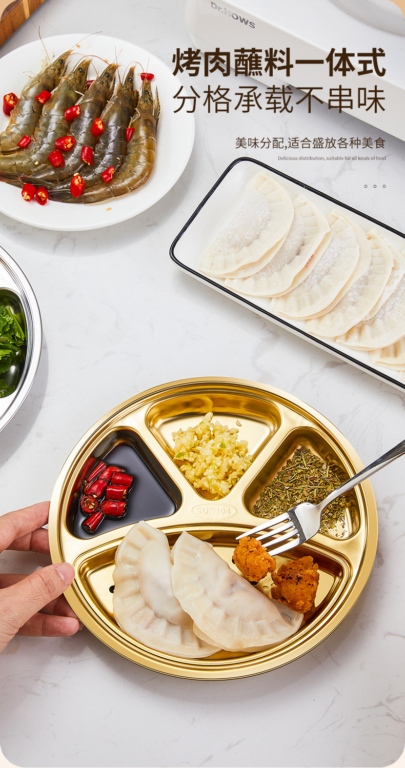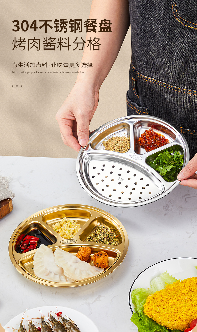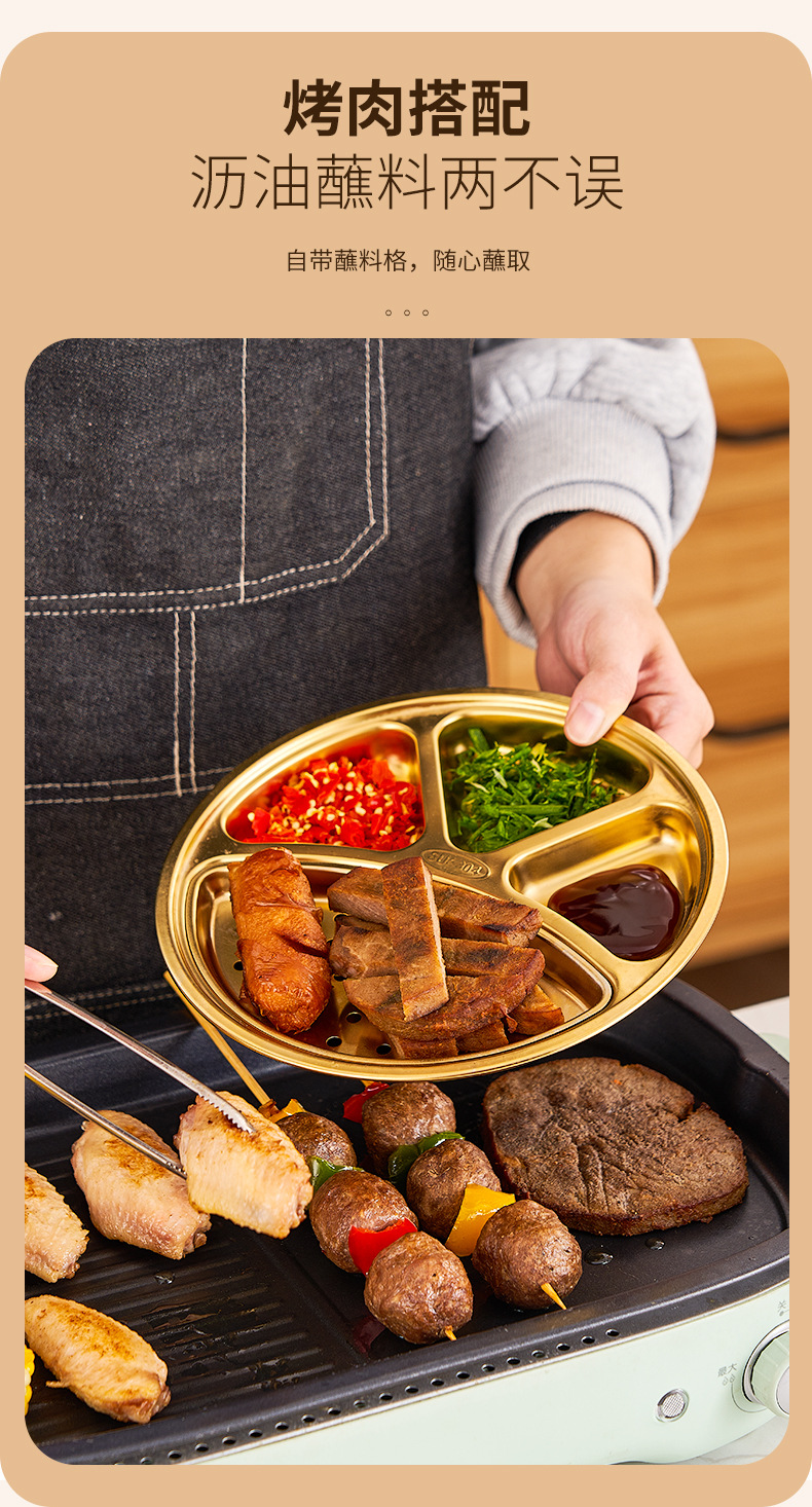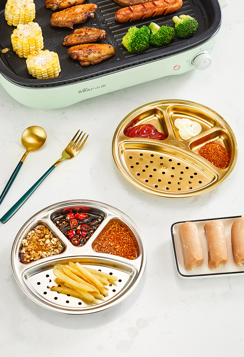 304 스테인레스 스틸 분할 디너 플레이트 이동식 및 세척 가능한 바베큐 오일 필터 플레이트 한국 소스 분할 딥 디너 플레이트 딥 오일 딥 팬