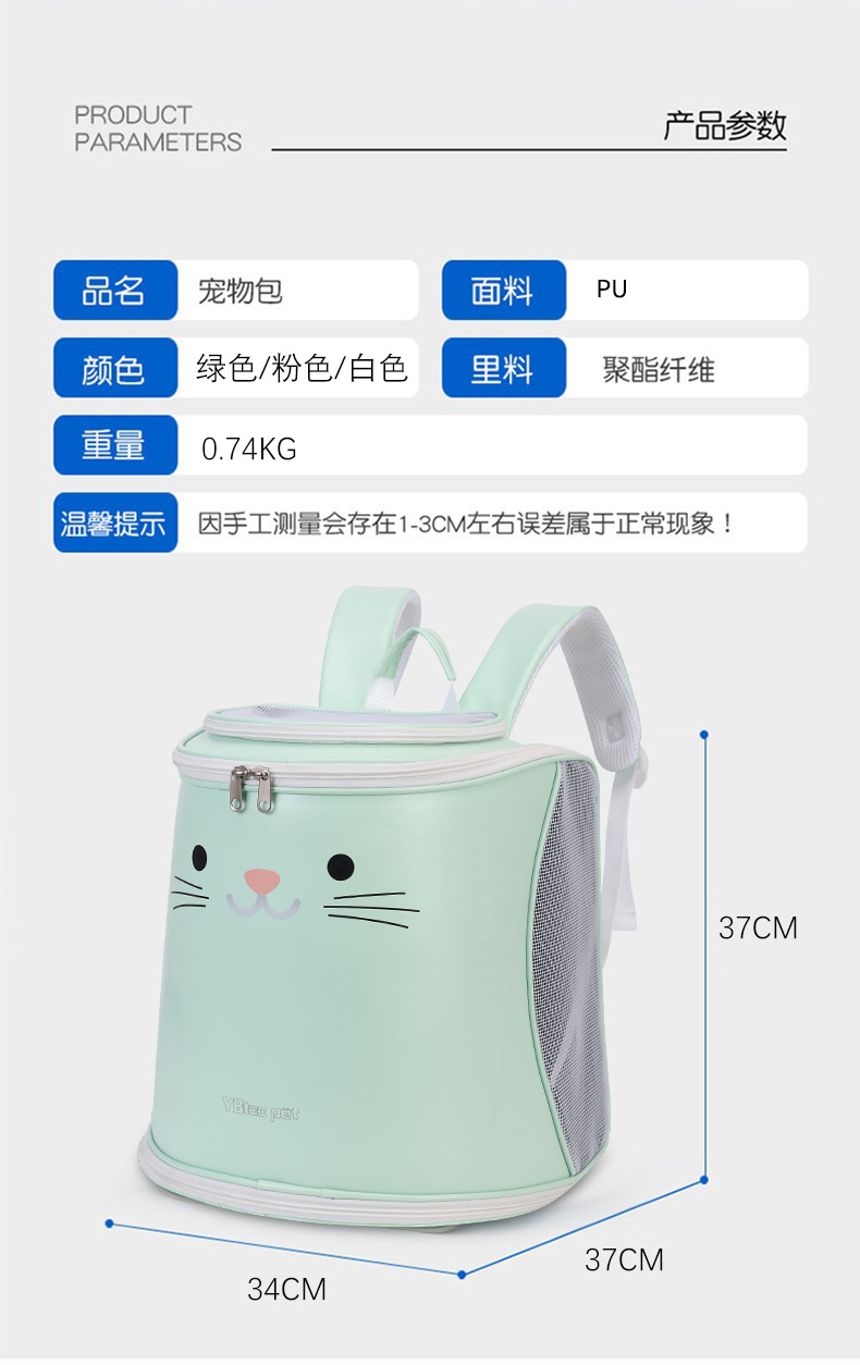 새로운 솔리드 컬러 애완 동물 가방 대용량 접이식 고양이 가방 나가는 가방 휴대용 공간 캡슐 Schoolbag 배낭 고양이 케이지