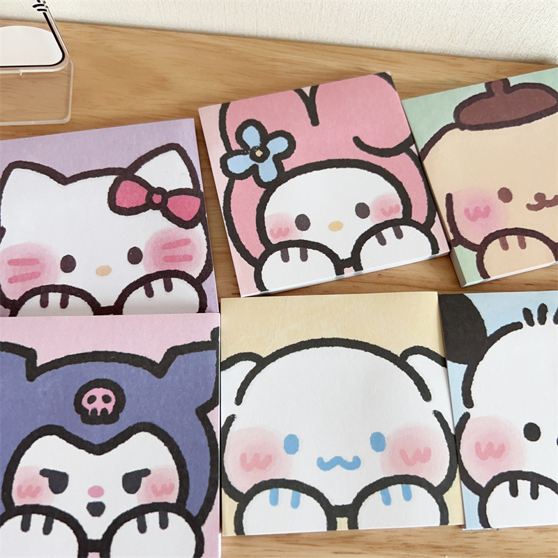 학생들을위한 귀여운 Ins 스타일 포스트잇 스티커 Sanrio 시리즈 만화 헤드 노트 스티커스토어 가기