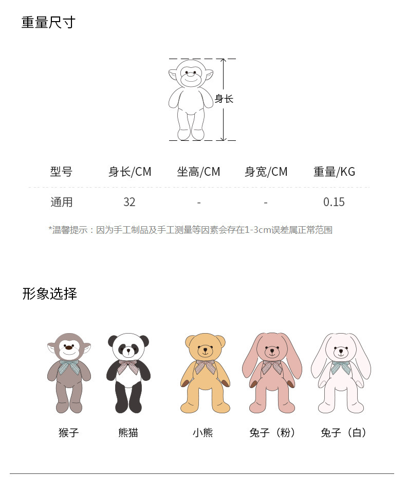 아기 포옹 32cm 귀여운 동물 팬더 원숭이 토끼 플러시 장난감 인형 제조 업체 도매 슈퍼 귀여운스토어 가기