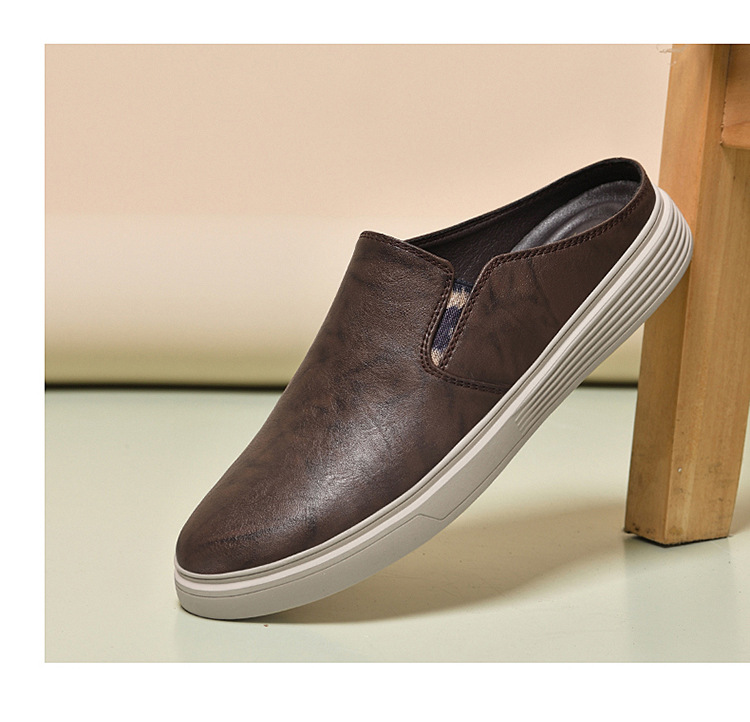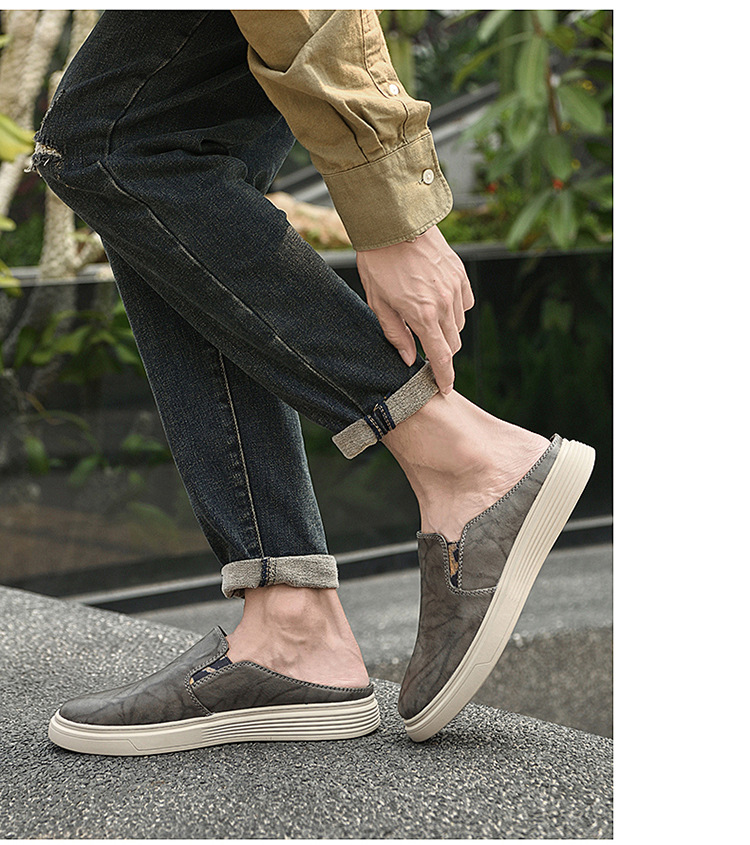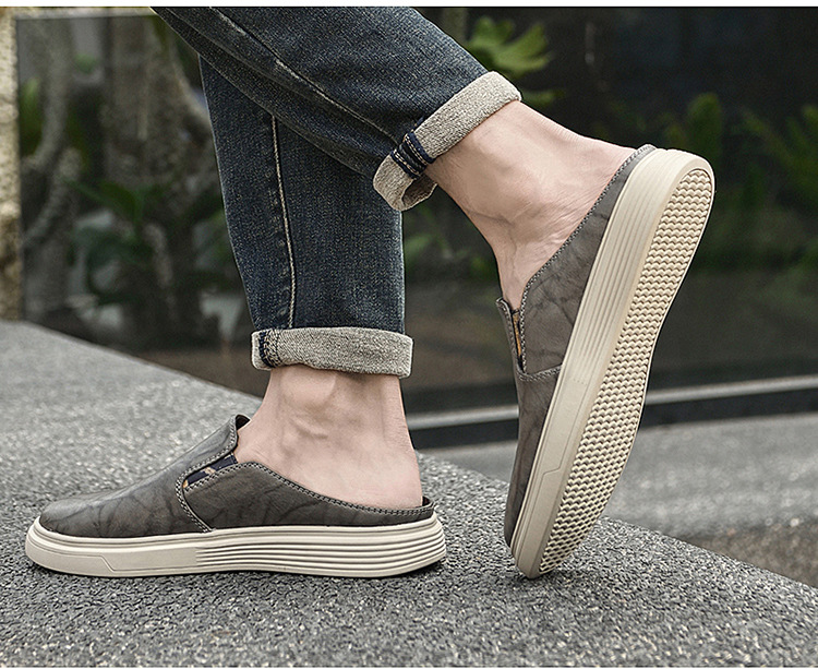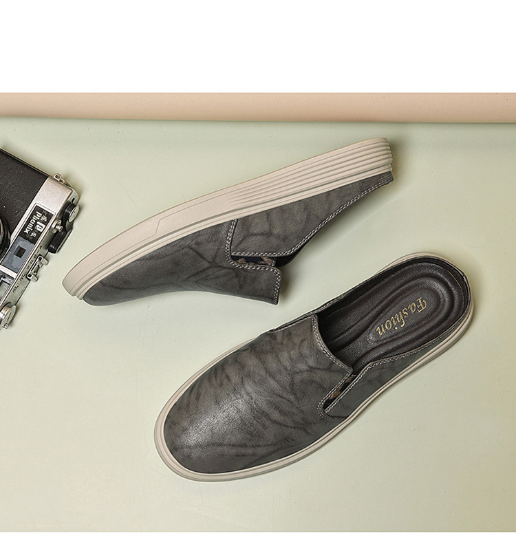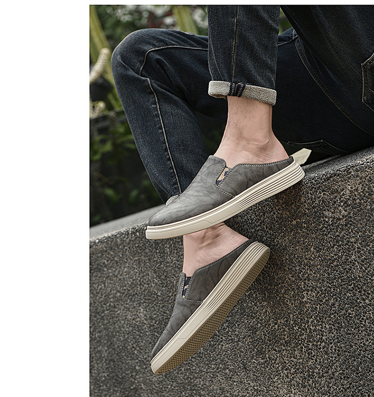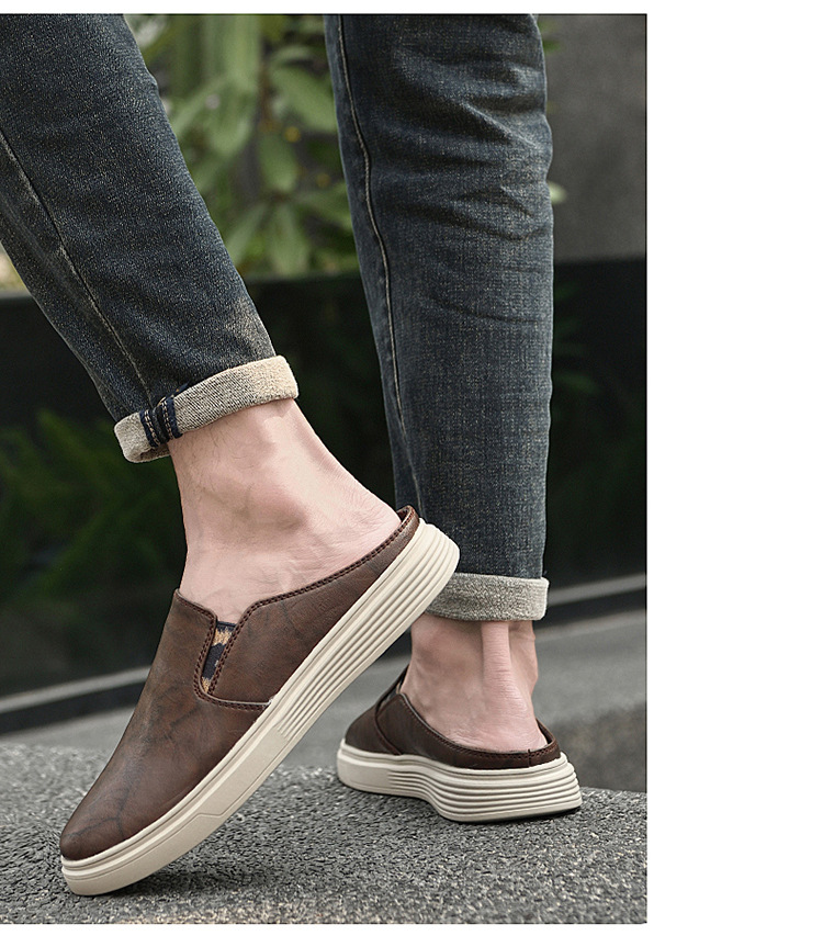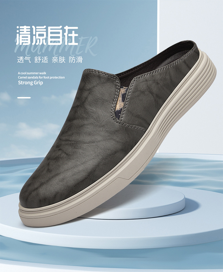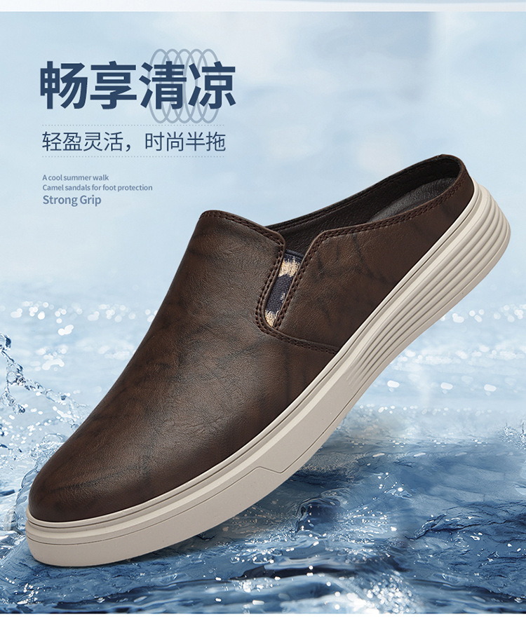정품 가죽 하프 슬리퍼 샌들 남성용 여름 비치 슈즈 남성용 슬립 온 게으른 슬리퍼 통기성 올 매치 캐주얼 슈즈스토어 가기