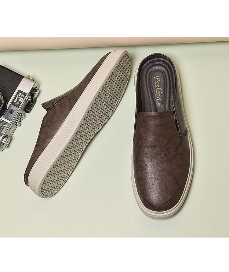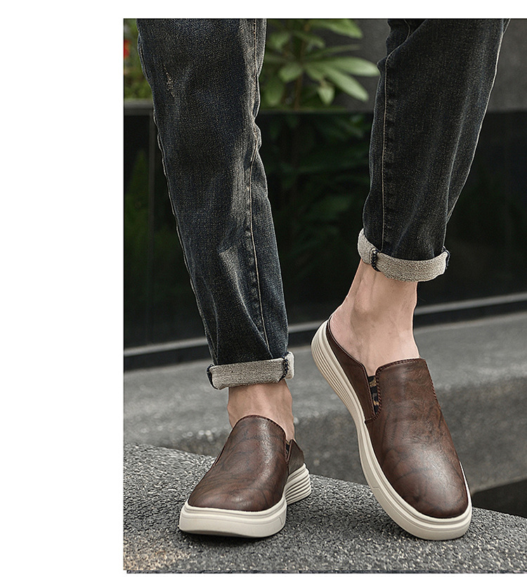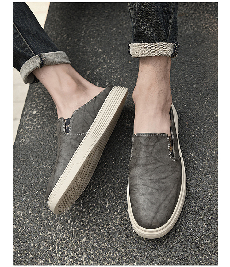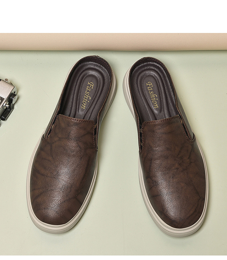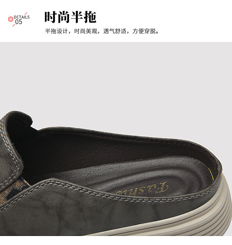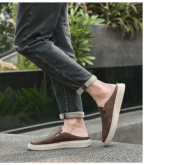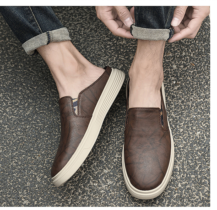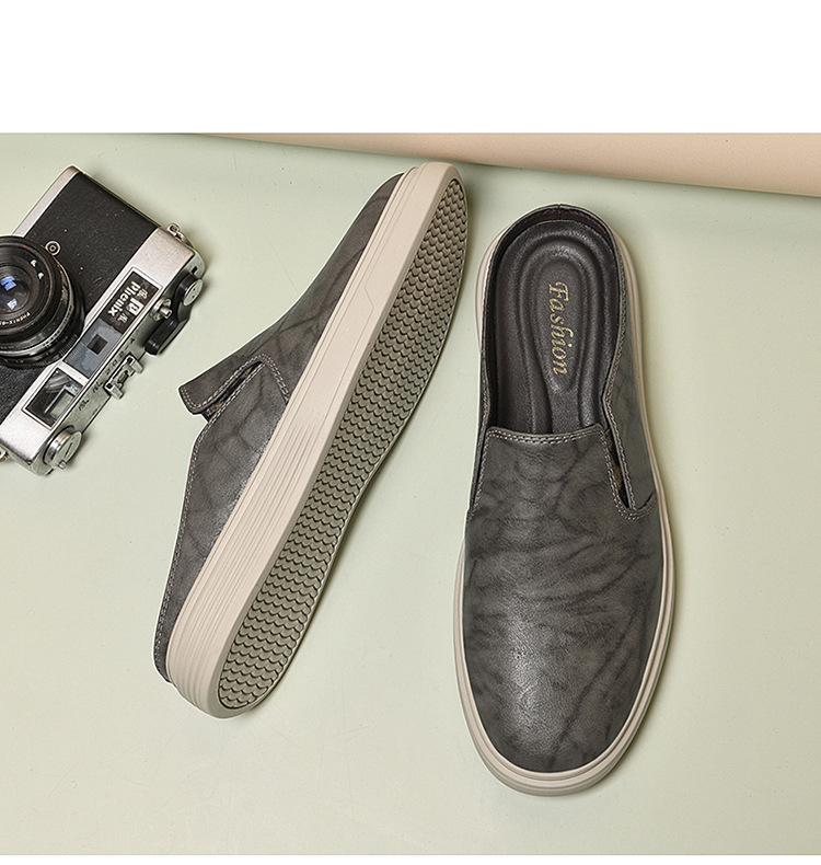 정품 가죽 하프 슬리퍼 샌들 남성용 여름 비치 슈즈 남성용 슬립 온 게으른 슬리퍼 통기성 올 매치 캐주얼 슈즈스토어 가기
