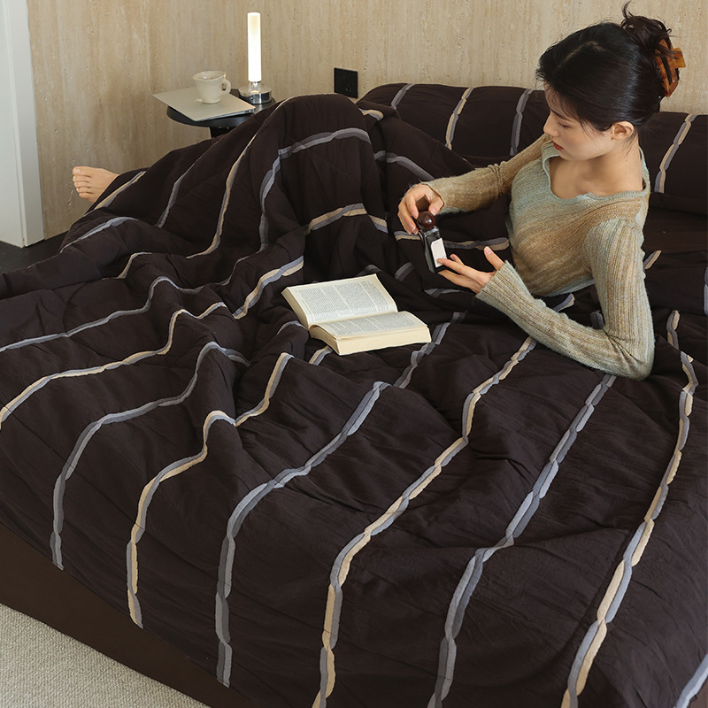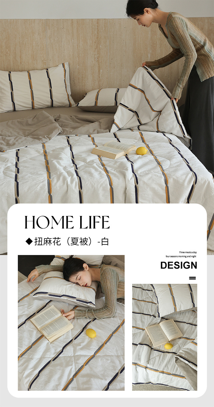 여름 고급 원사 염색 자카드 면화 여름 이불 4 피스 에어컨 이불 얇은 순면 여름 이불 기계 세탁기