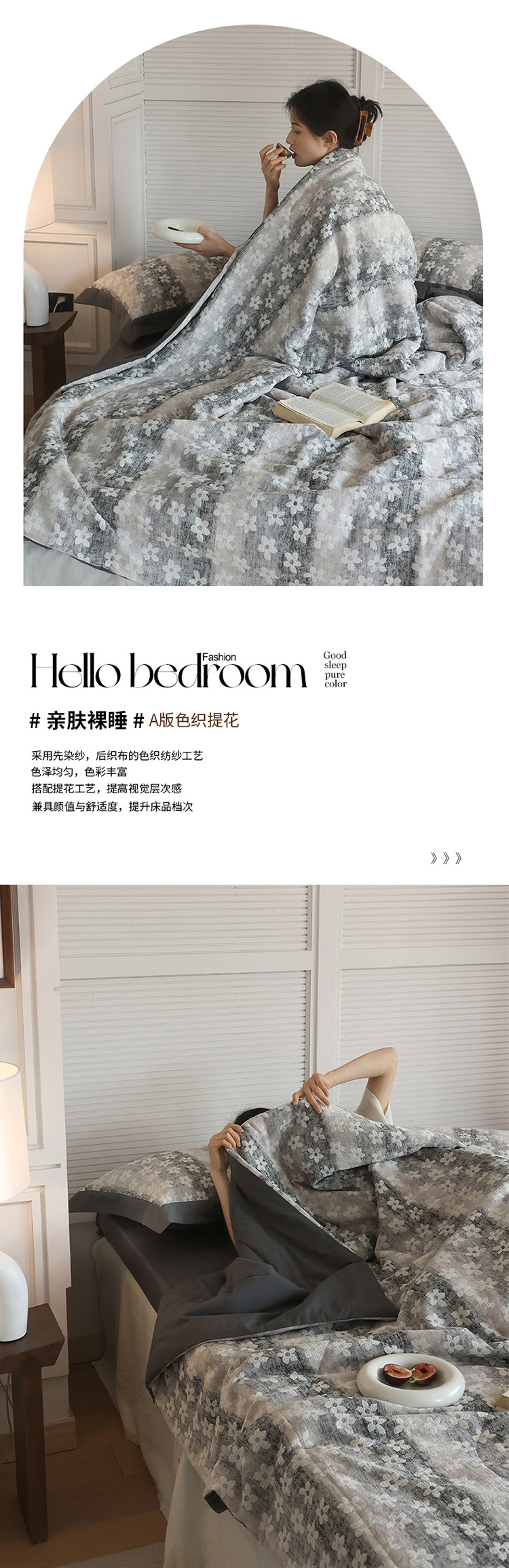 여름 고급 원사 염색 자카드 면화 여름 이불 4 피스 에어컨 이불 얇은 순면 여름 이불 기계 세탁기스토어 가기