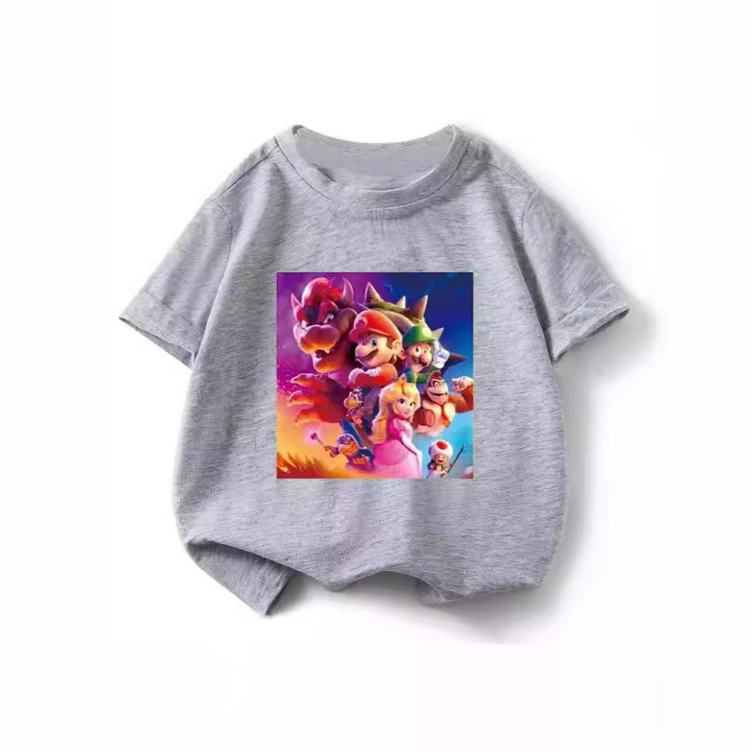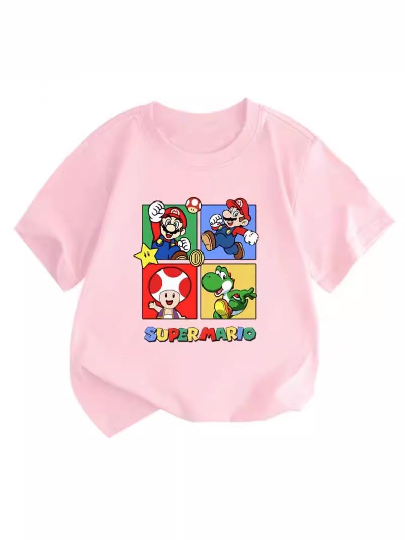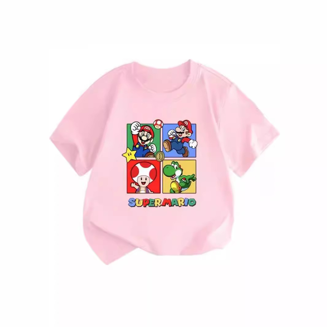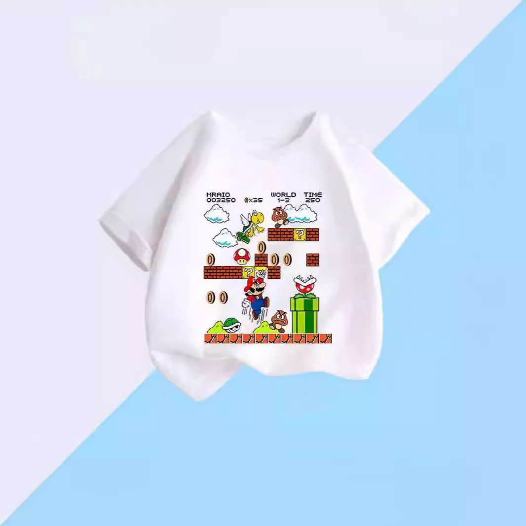 100 면 짧은 소매 티셔츠 슈퍼 메리 마리오 만화 인쇄 어린이 반 소매 셔츠 소년과 소녀스토어 가기