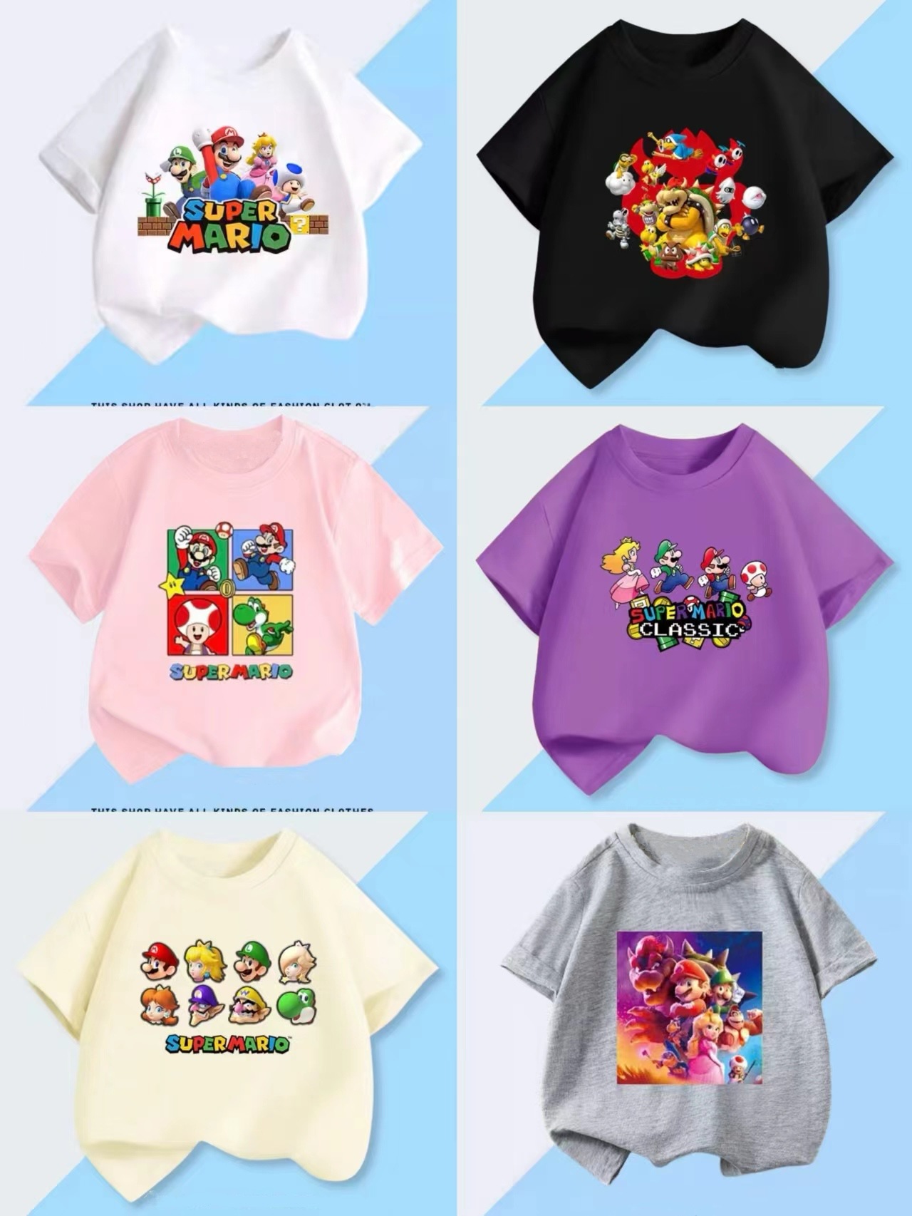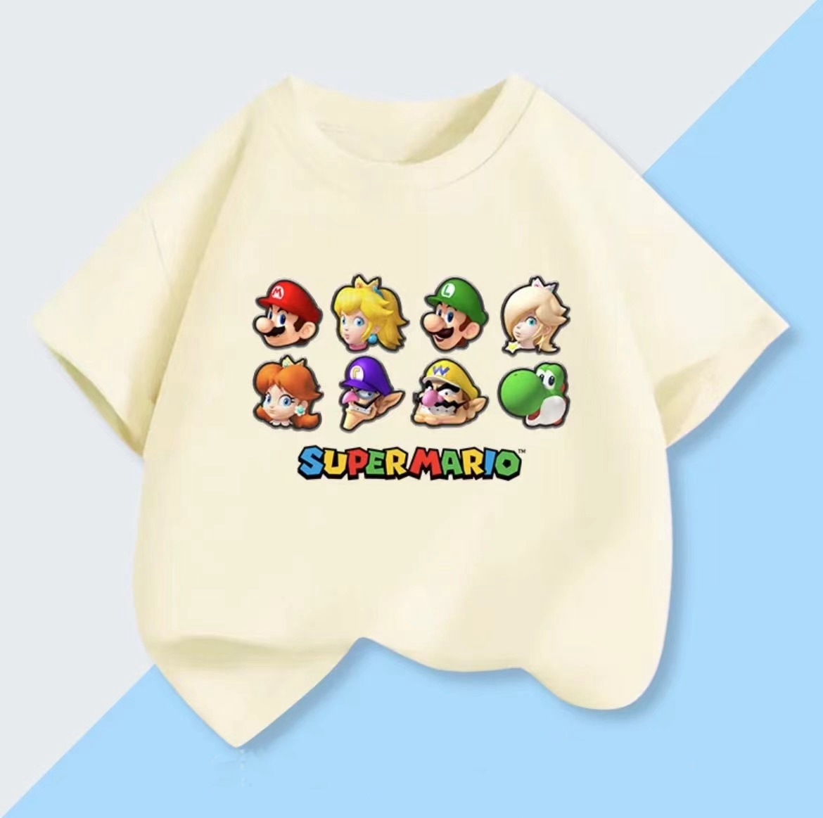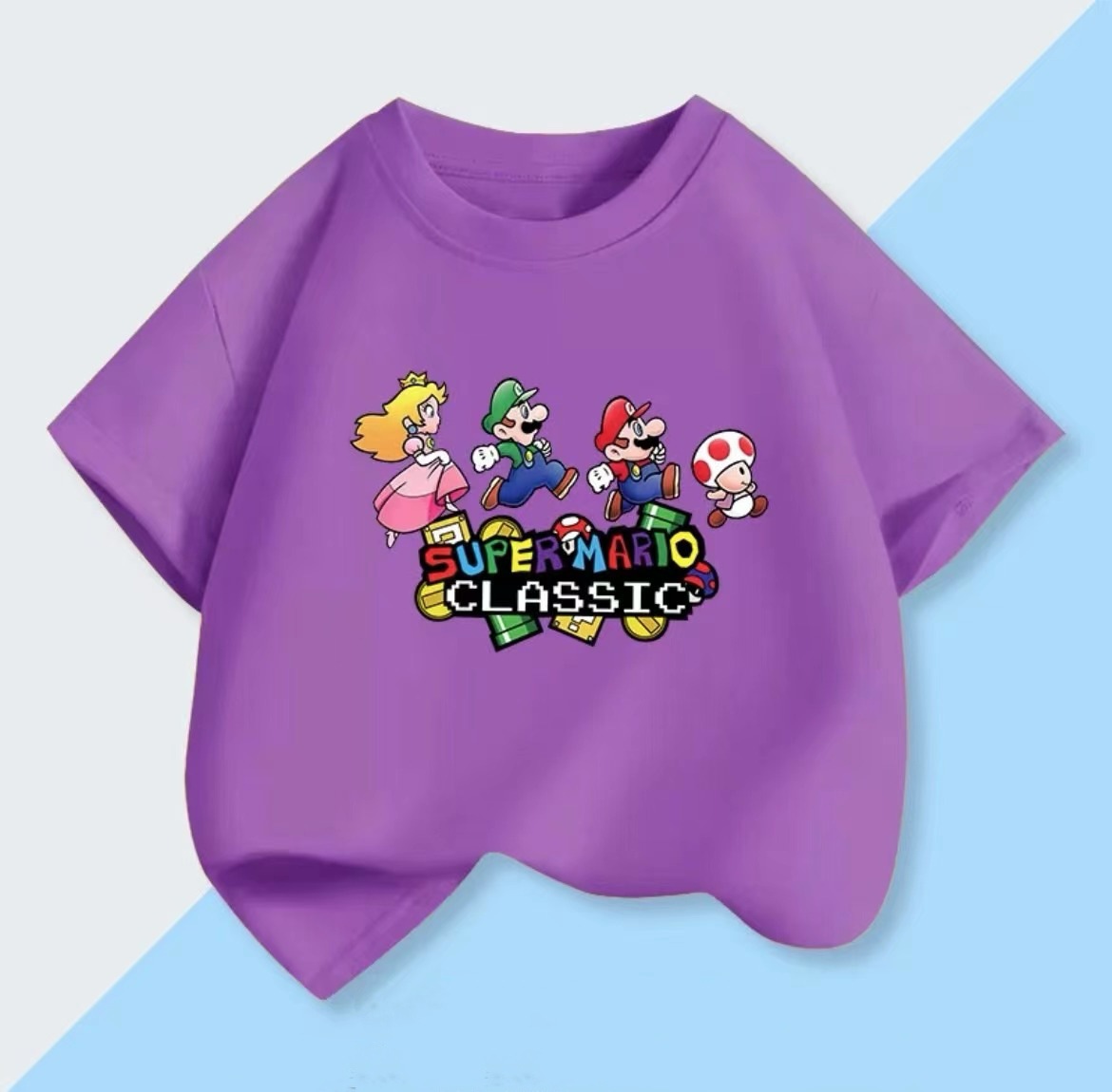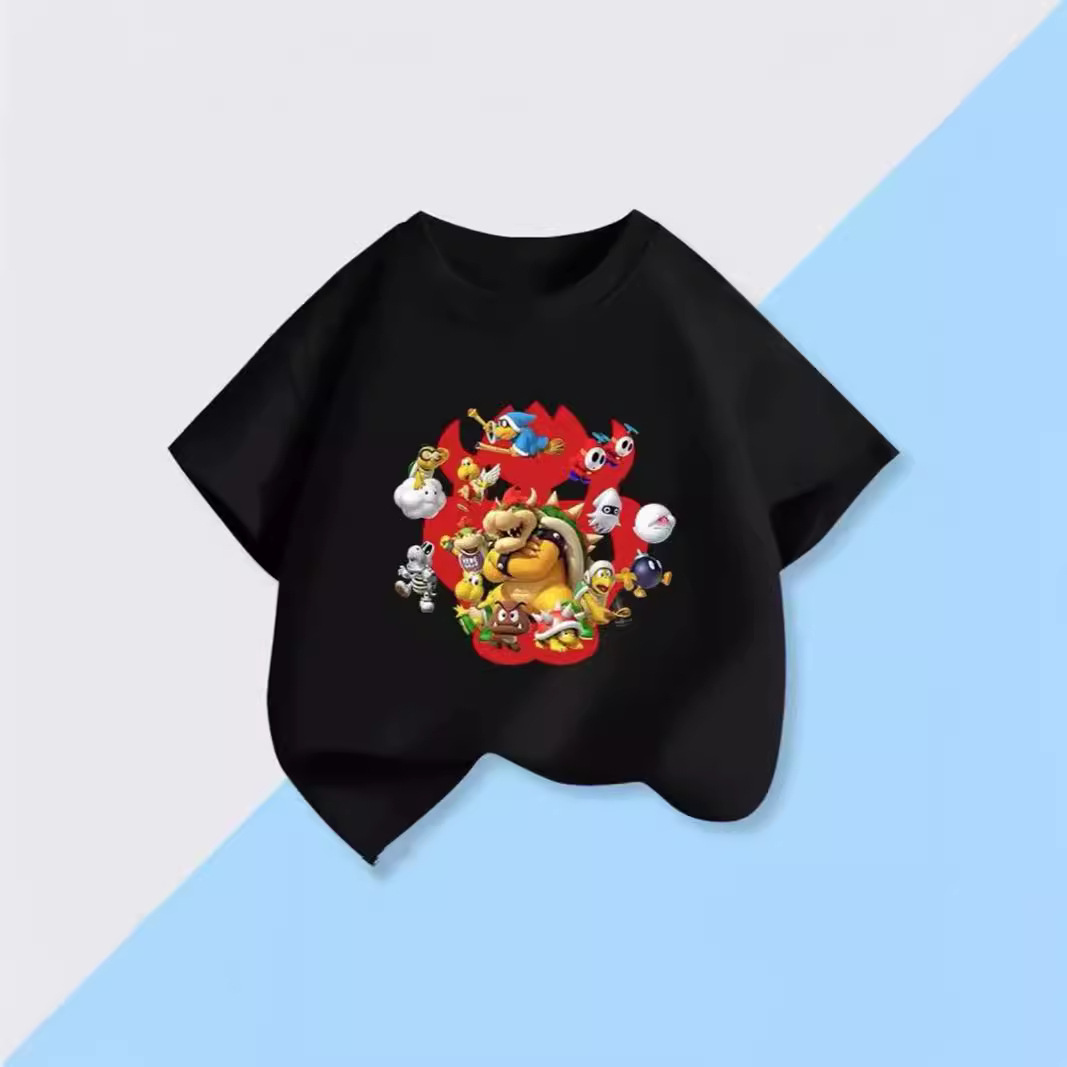 100 면 짧은 소매 티셔츠 슈퍼 메리 마리오 만화 인쇄 어린이 반 소매 셔츠 소년과 소녀스토어 가기