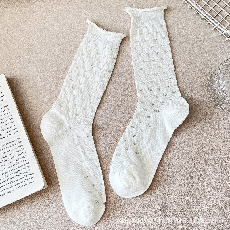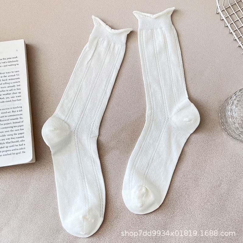 발레 스타일 얇은 양말 여성용 작은 가죽 신발 흰색 중간 길이 양말 여름 얇은 스타킹 메리 제인 롱 튜브 여름
