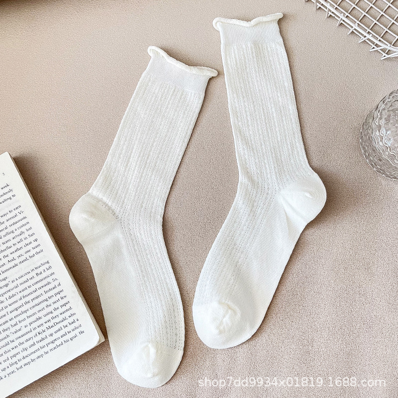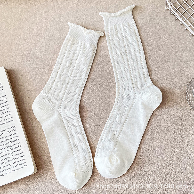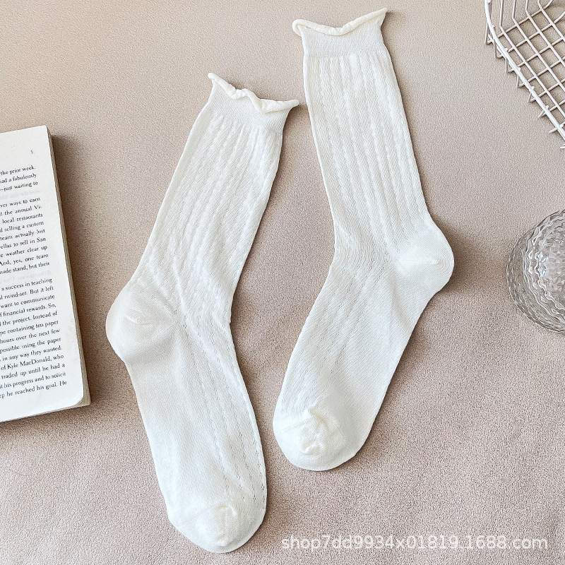 발레 스타일 얇은 양말 여성용 작은 가죽 신발 흰색 중간 길이 양말 여름 얇은 스타킹 메리 제인 롱 튜브 여름스토어 가기