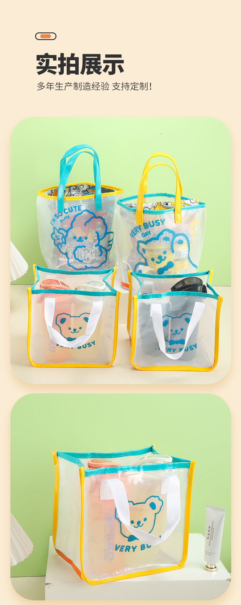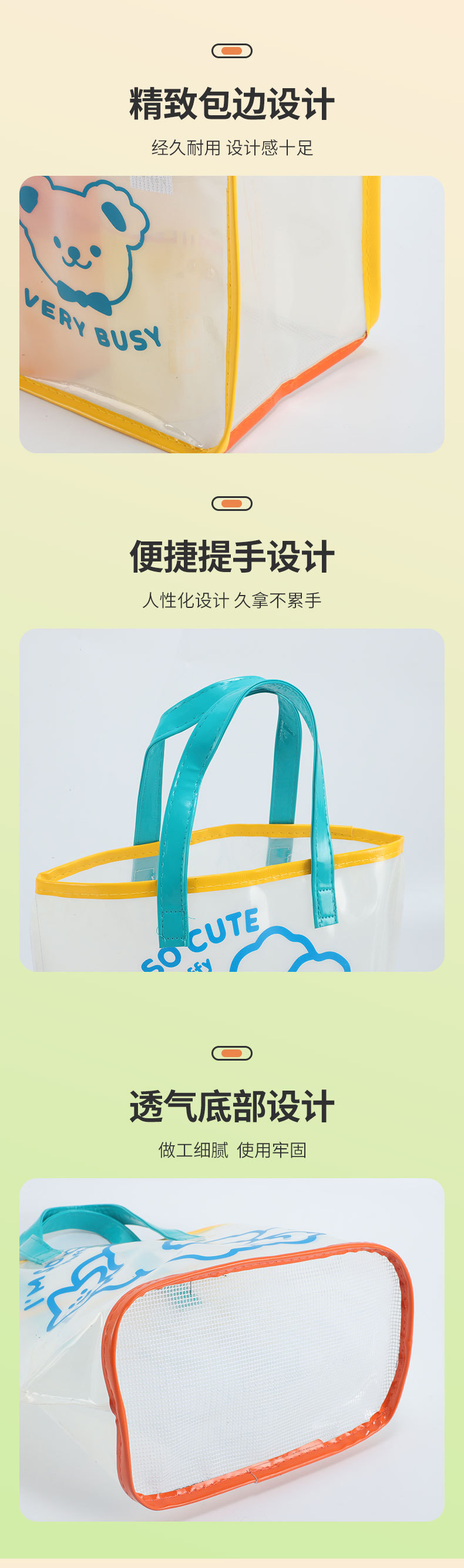 어린이 야외 휴대용 수영 가방 비치 가방 귀여운 만화 방수 핸드백 욕실 보관 가방 PVC스토어 가기