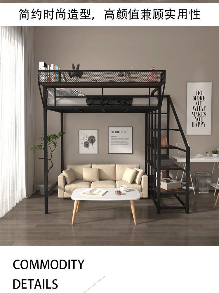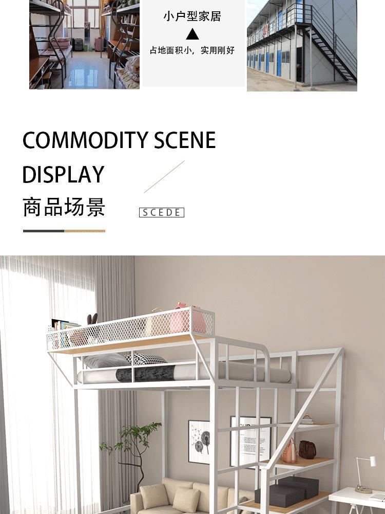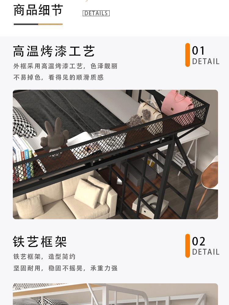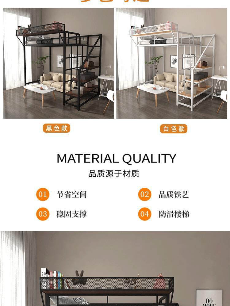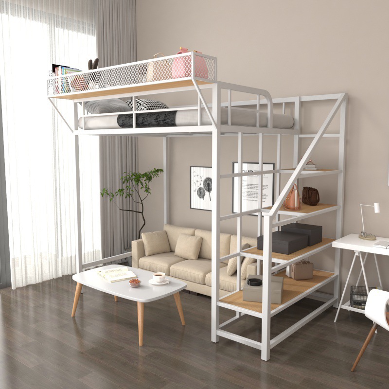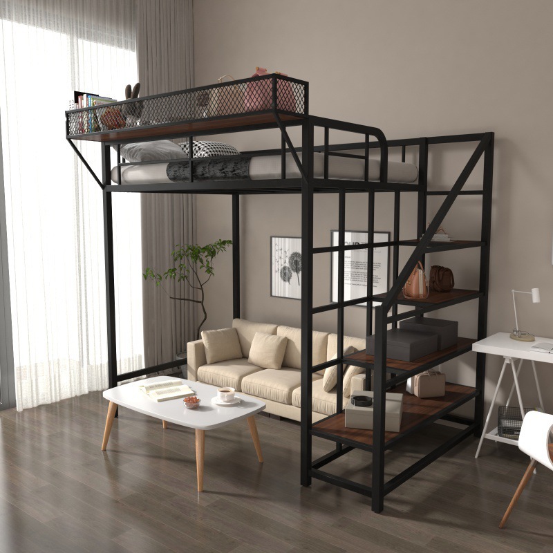 아이언 로프트 침대 듀플렉스 2 층 침대 아래 침대 테이블 인터 레벨 높고 낮은 침대 단계 사다리 로프트 침대 시트 상부 공간 절약