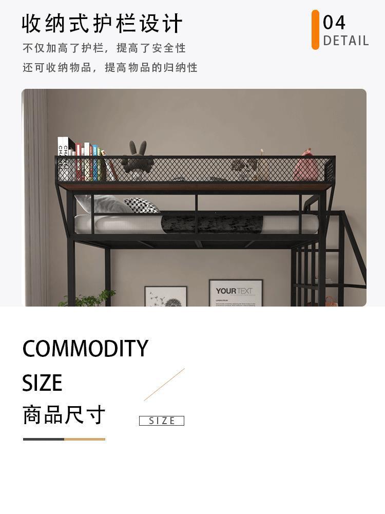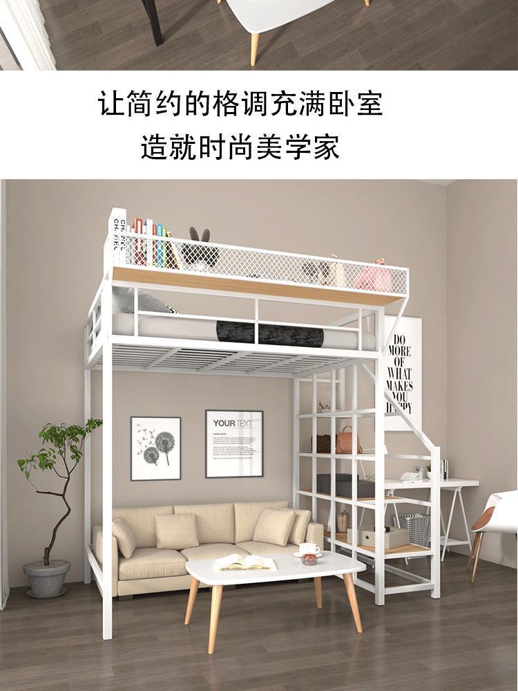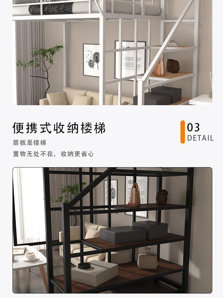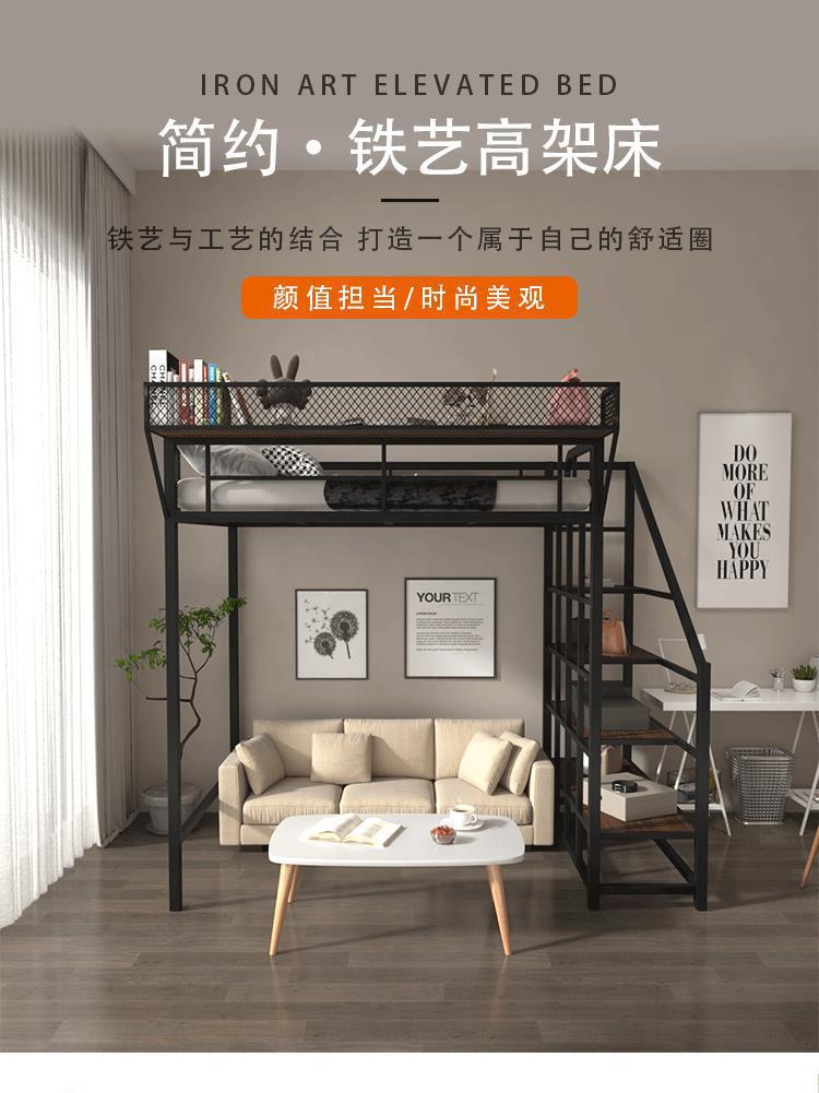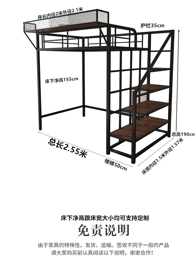 아이언 로프트 침대 듀플렉스 2 층 침대 아래 침대 테이블 인터 레벨 높고 낮은 침대 단계 사다리 로프트 침대 시트 상부 공간 절약