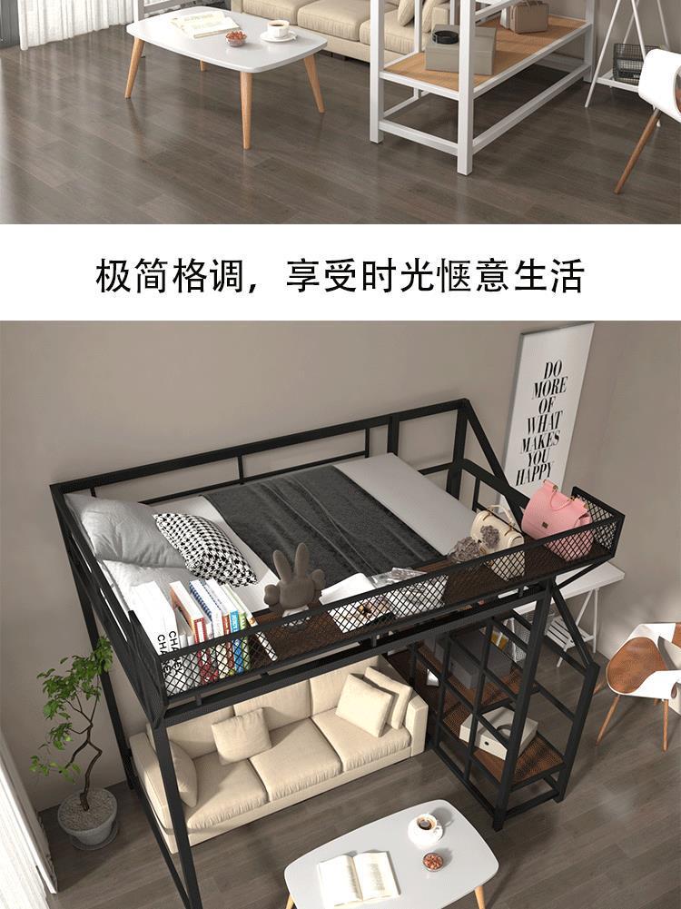 아이언 로프트 침대 듀플렉스 2 층 침대 아래 침대 테이블 인터 레벨 높고 낮은 침대 단계 사다리 로프트 침대 시트 상부 공간 절약스토어 가기