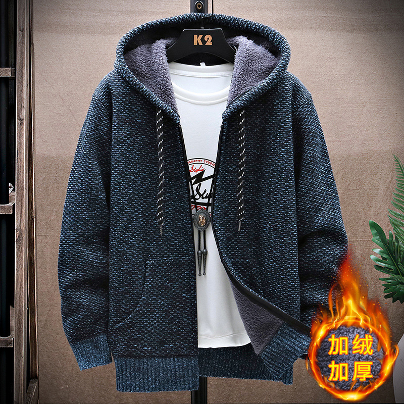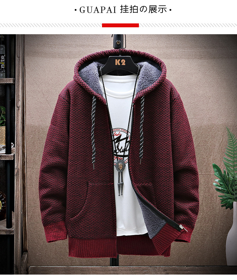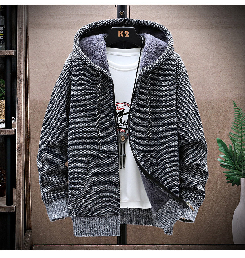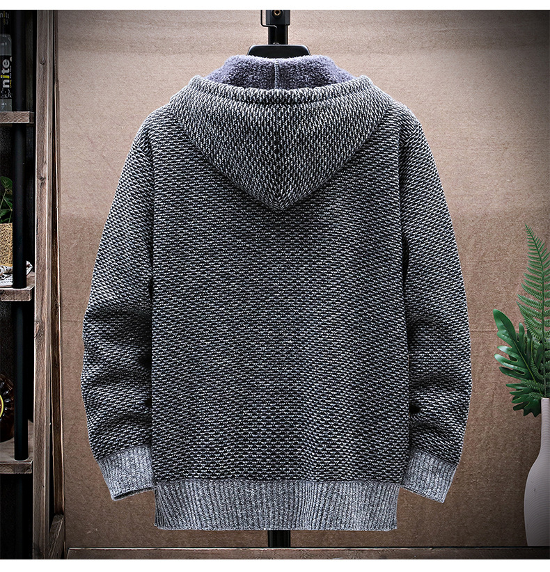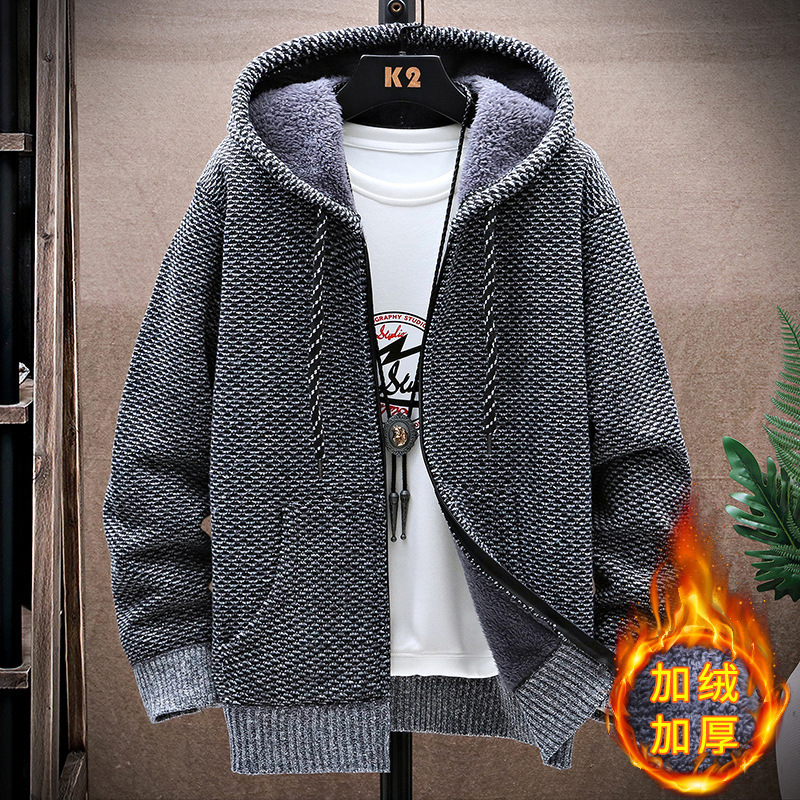 니트 스웨터 남성 카디건 2023 가을, 겨울 새로운 스타일 벨벳 두꺼운 코트 후드 대형 스웨터 패션 스웨터스토어 가기