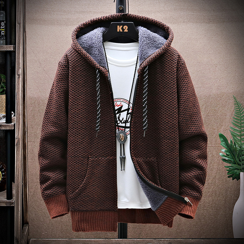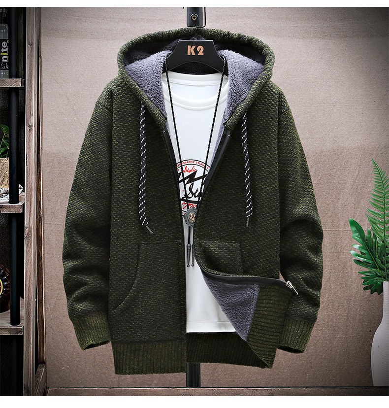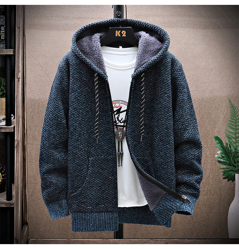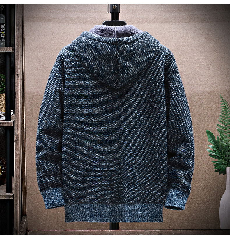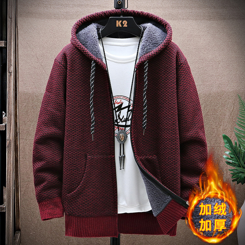 니트 스웨터 남성 카디건 2023 가을, 겨울 새로운 스타일 벨벳 두꺼운 코트 후드 대형 스웨터 패션 스웨터스토어 가기
