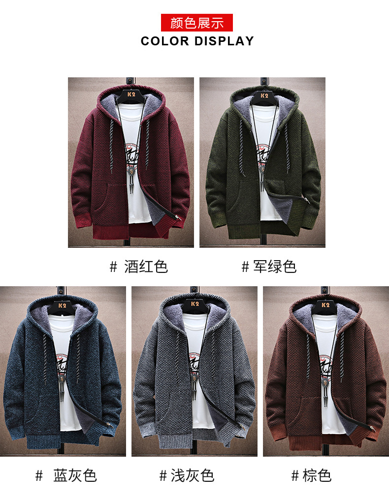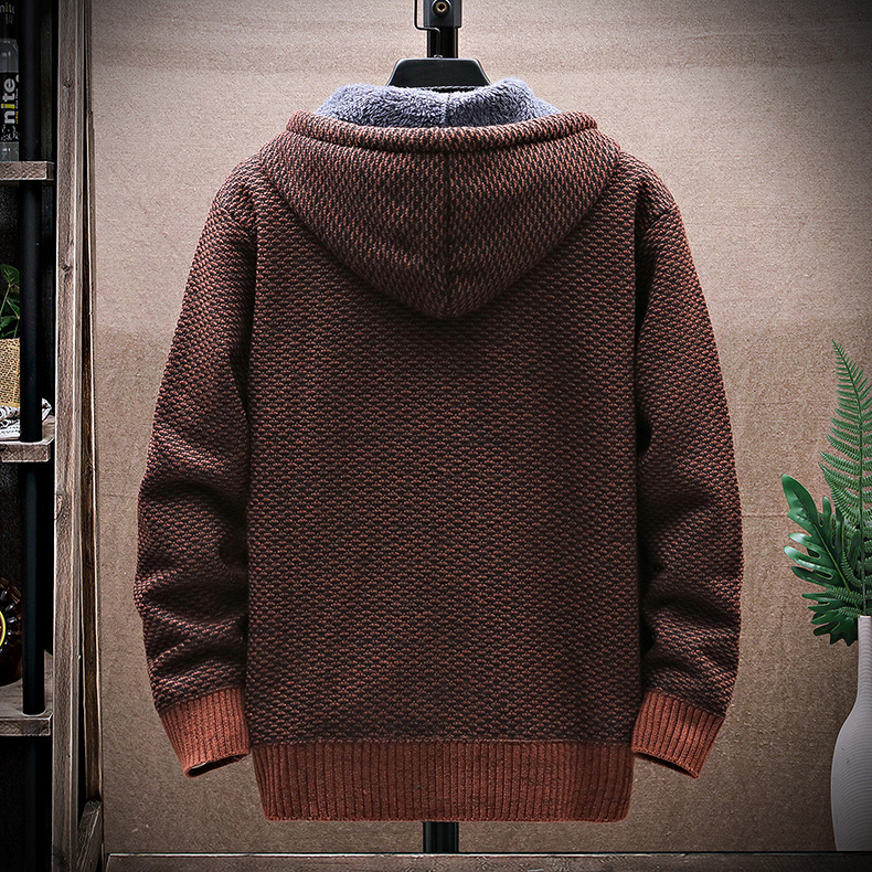 니트 스웨터 남성 카디건 2023 가을, 겨울 새로운 스타일 벨벳 두꺼운 코트 후드 대형 스웨터 패션 스웨터