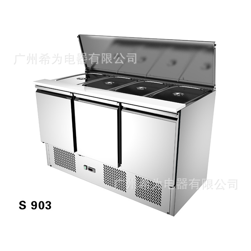 상업용 직냉 스테인레스 스틸 커버 포트 플레이트 과일 및 야채 피자 샐러드 테이블 조미료 테이블 냉장 디스플레이 캐비닛 작업대