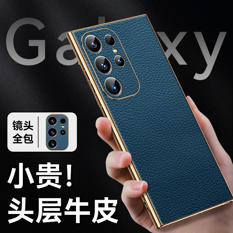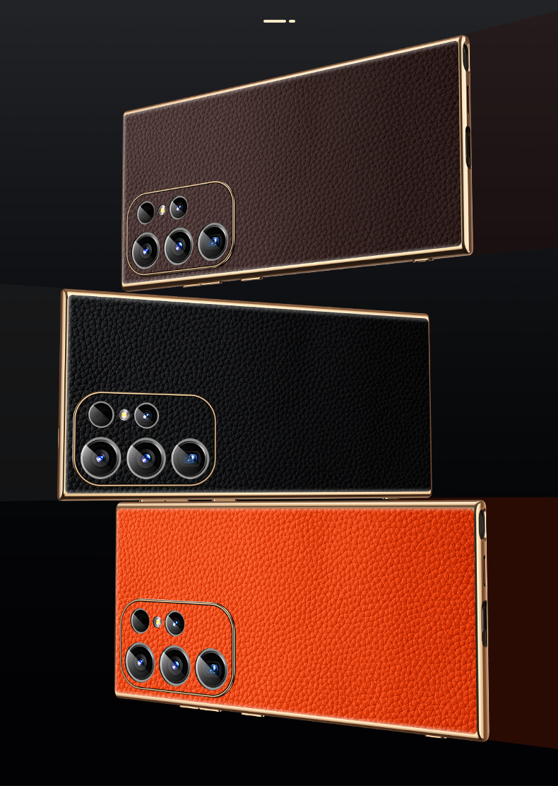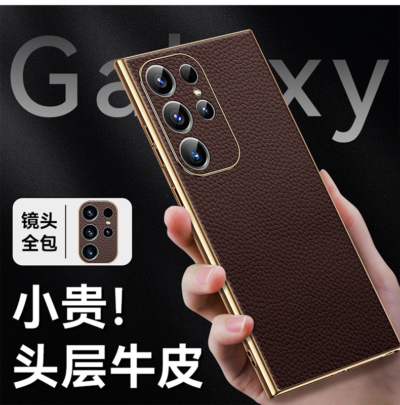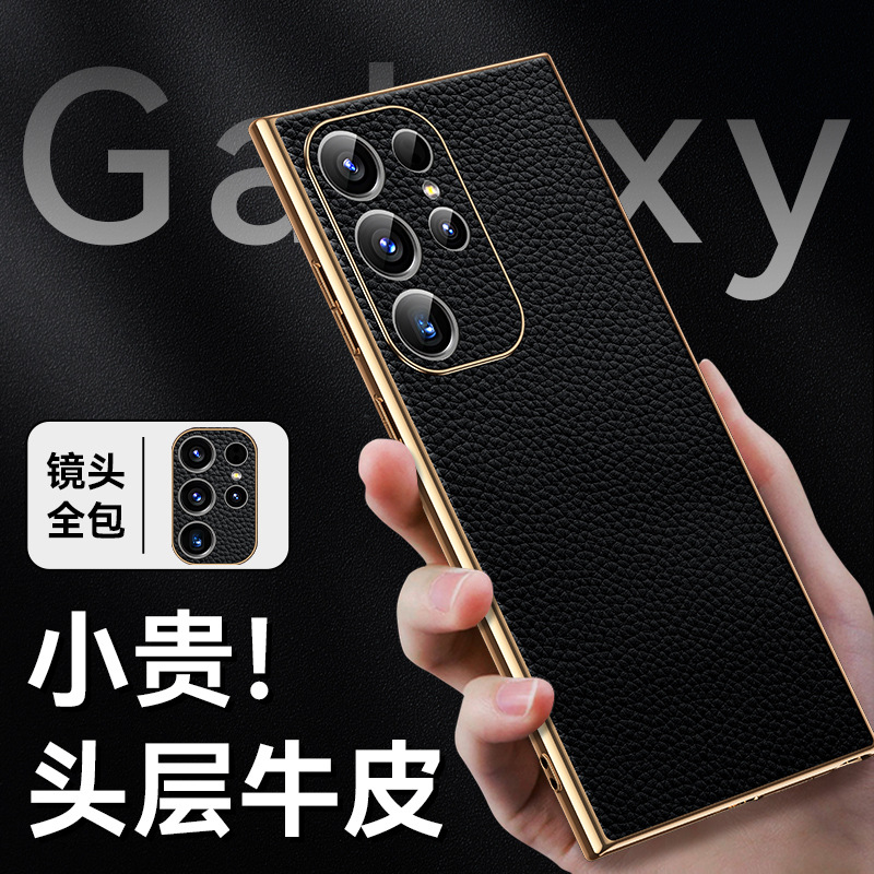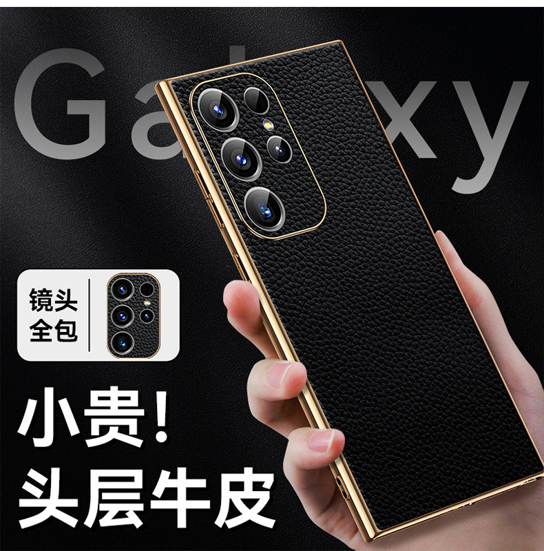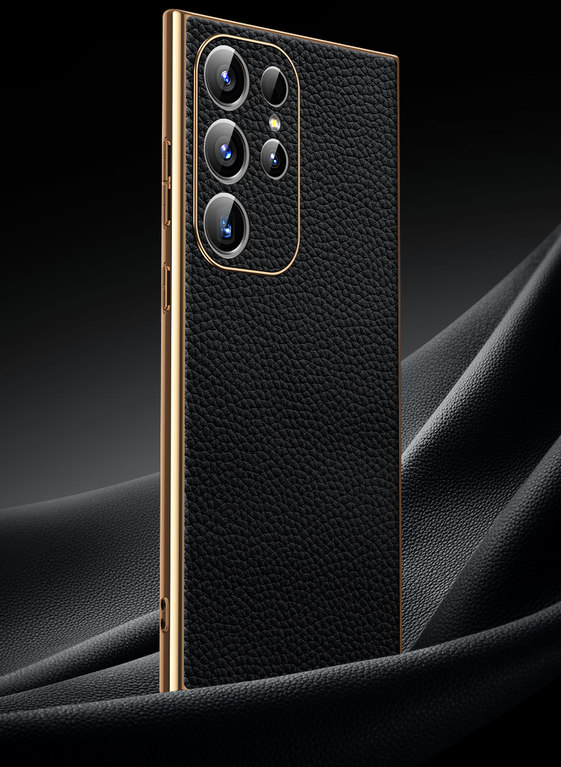 [트레이스리스 배송] sxS25Ultra 휴대폰 케이스 전기도금 홈 부착 천연 가죽 소프트 쉘 미세 구멍 낙하 방지 리치 패턴스토어 가기