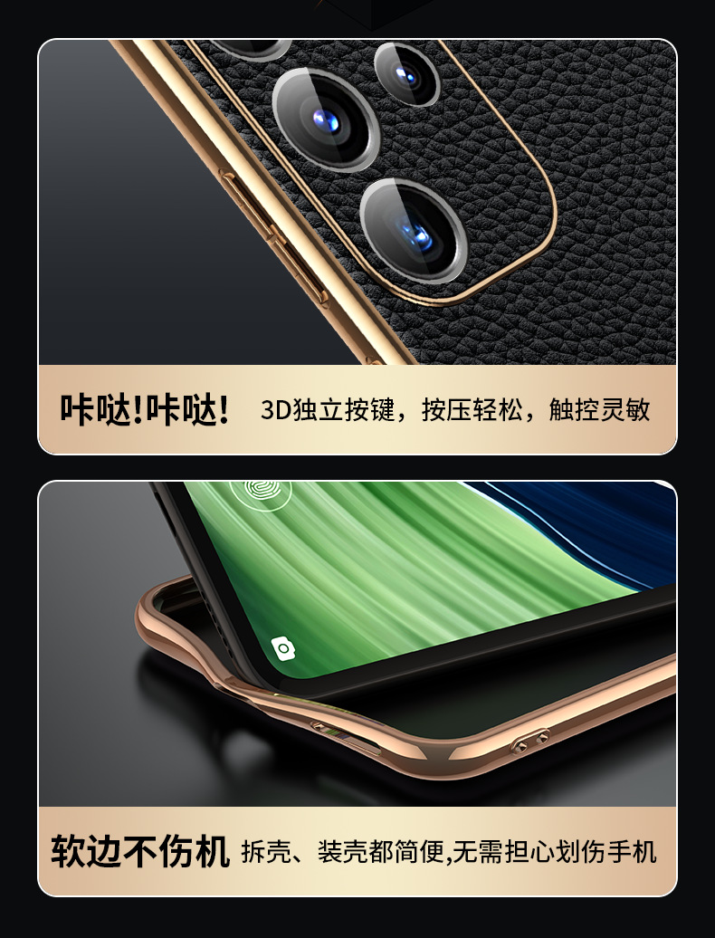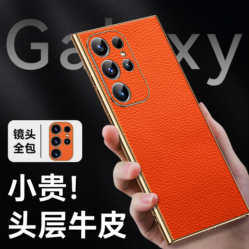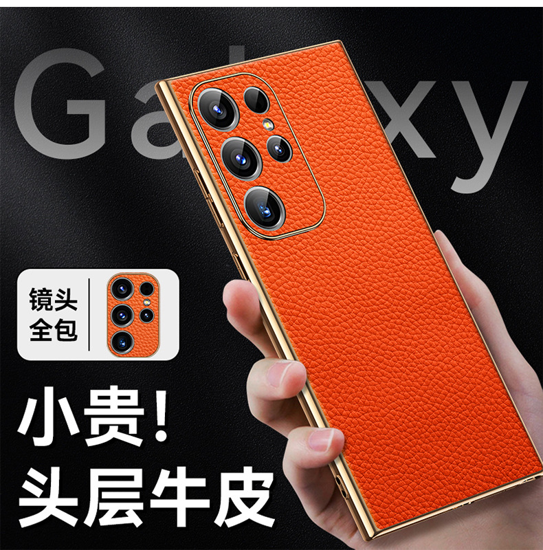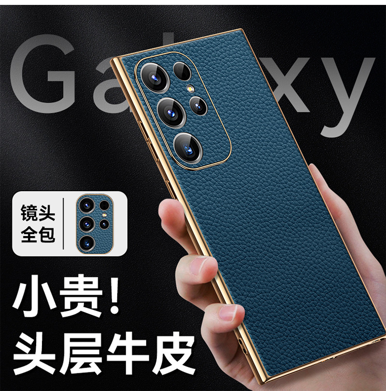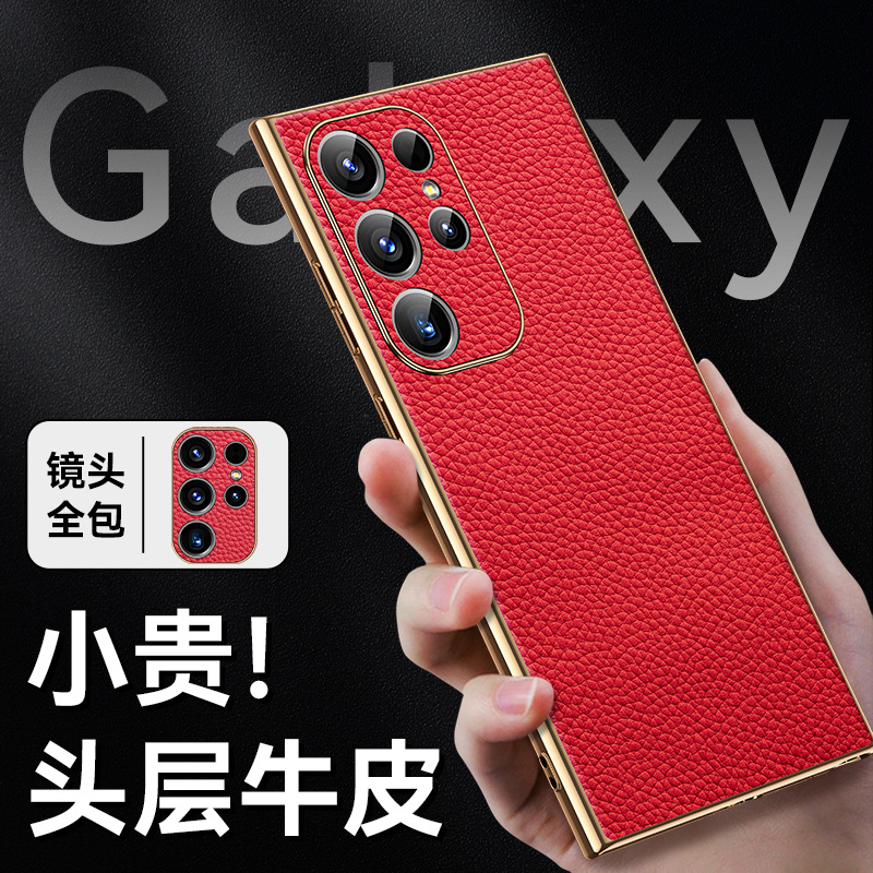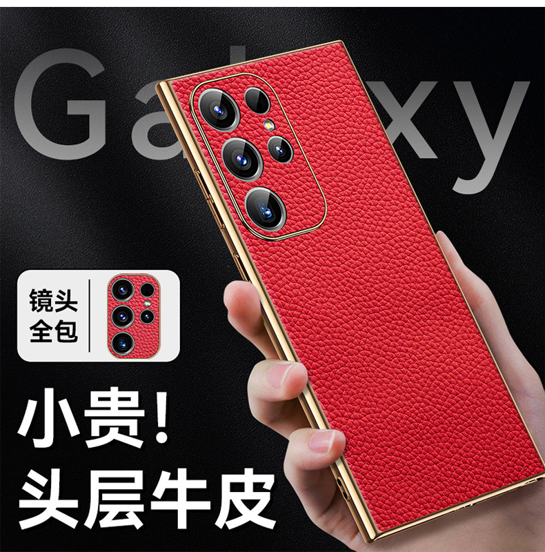 [트레이스리스 배송] sxS25Ultra 휴대폰 케이스 전기도금 홈 부착 천연 가죽 소프트 쉘 미세 구멍 낙하 방지 리치 패턴스토어 가기