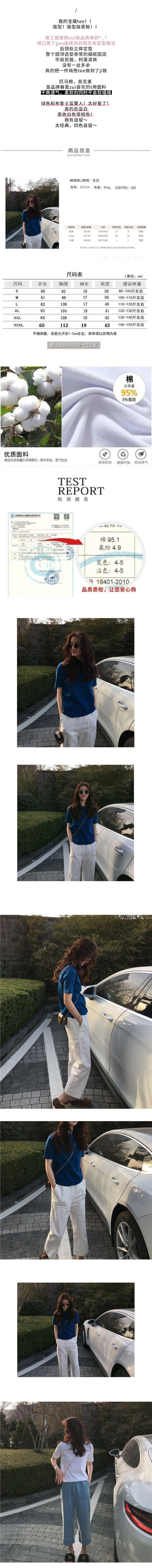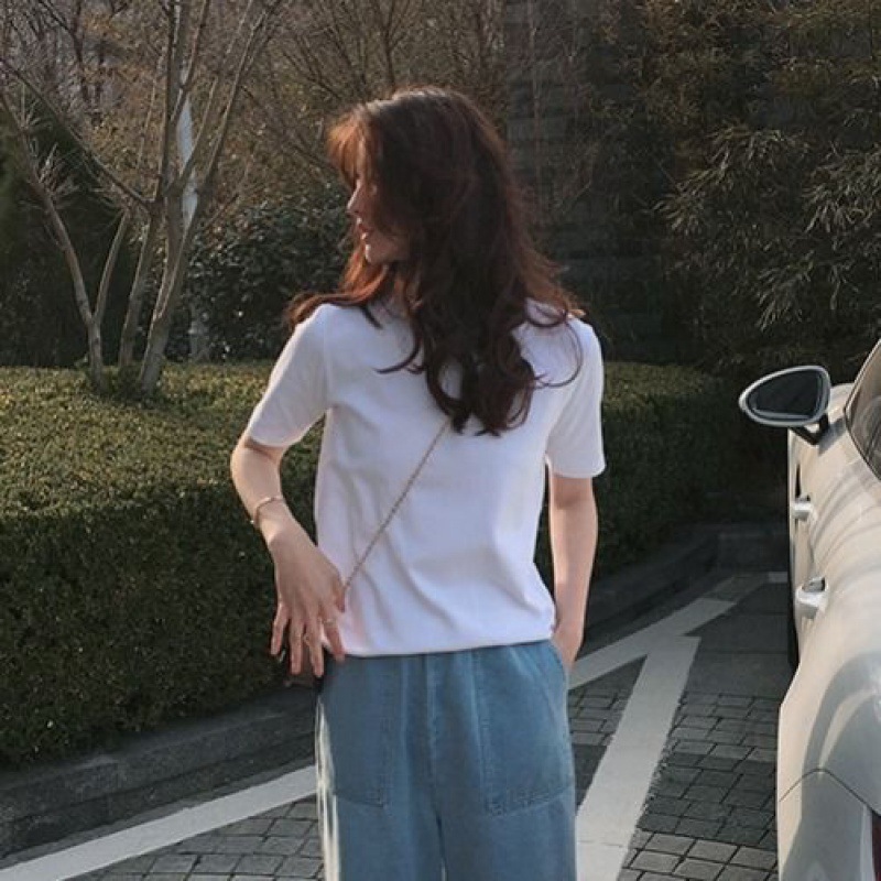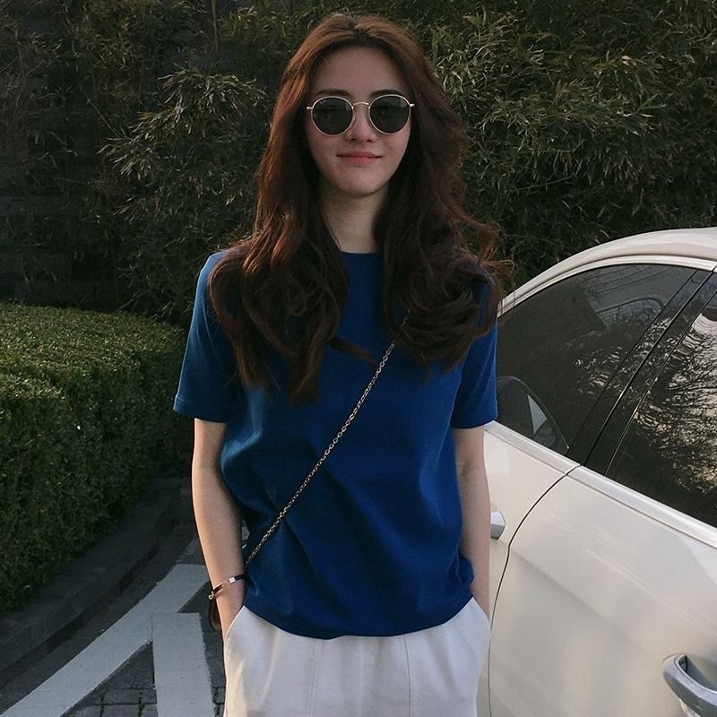95% 면 유행 단색 반팔 티셔츠 여성 느슨한 한국 스타일 반소매 티셔츠 탑 2024 여름 새로운 유행스토어 가기