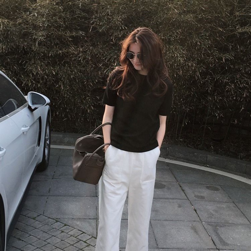 95% 면 유행 단색 반팔 티셔츠 여성 느슨한 한국 스타일 반소매 티셔츠 탑 2024 여름 새로운 유행
