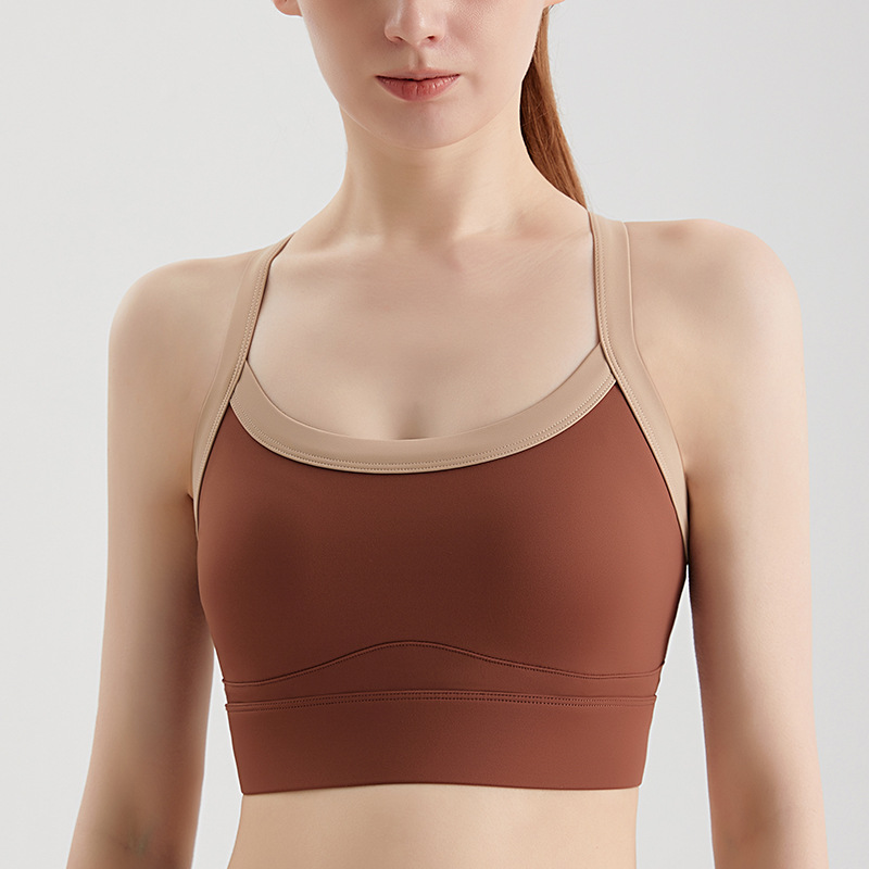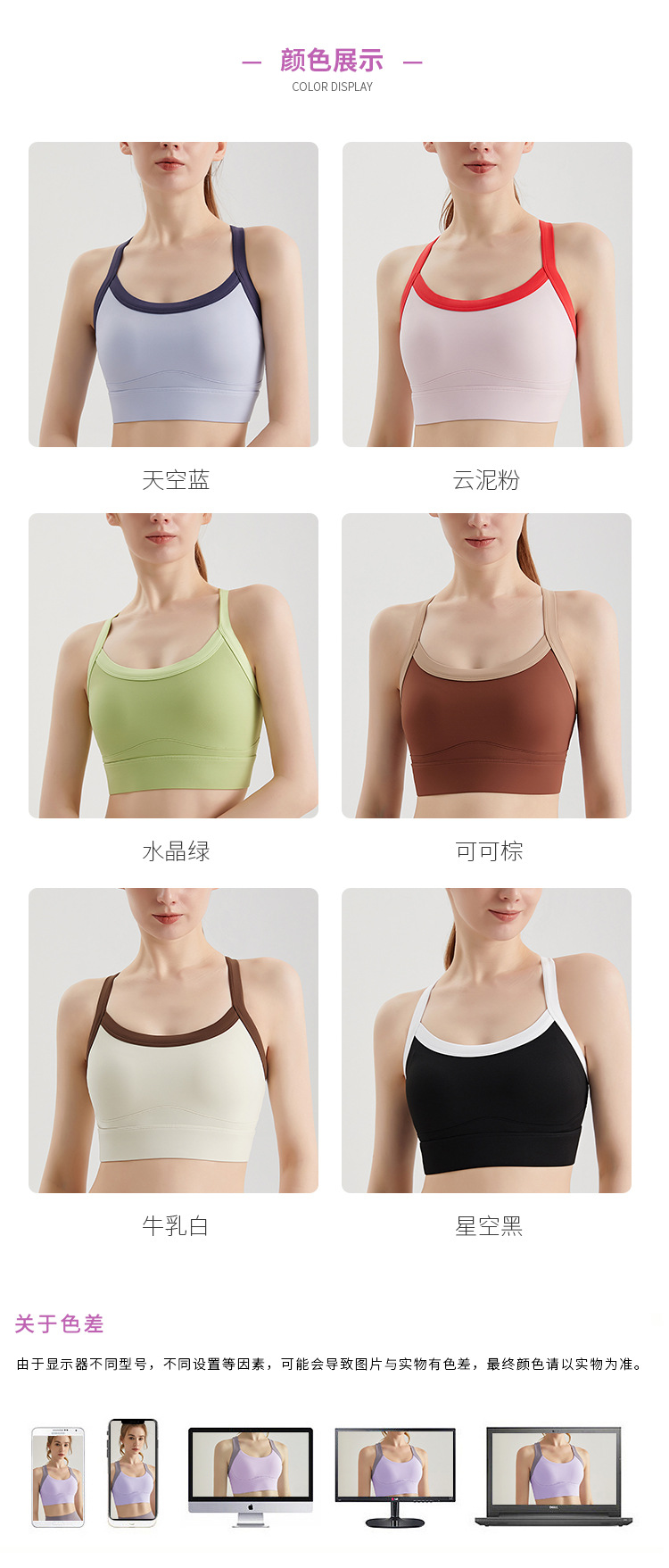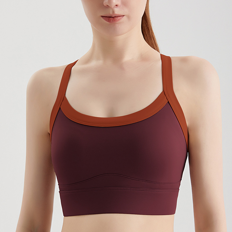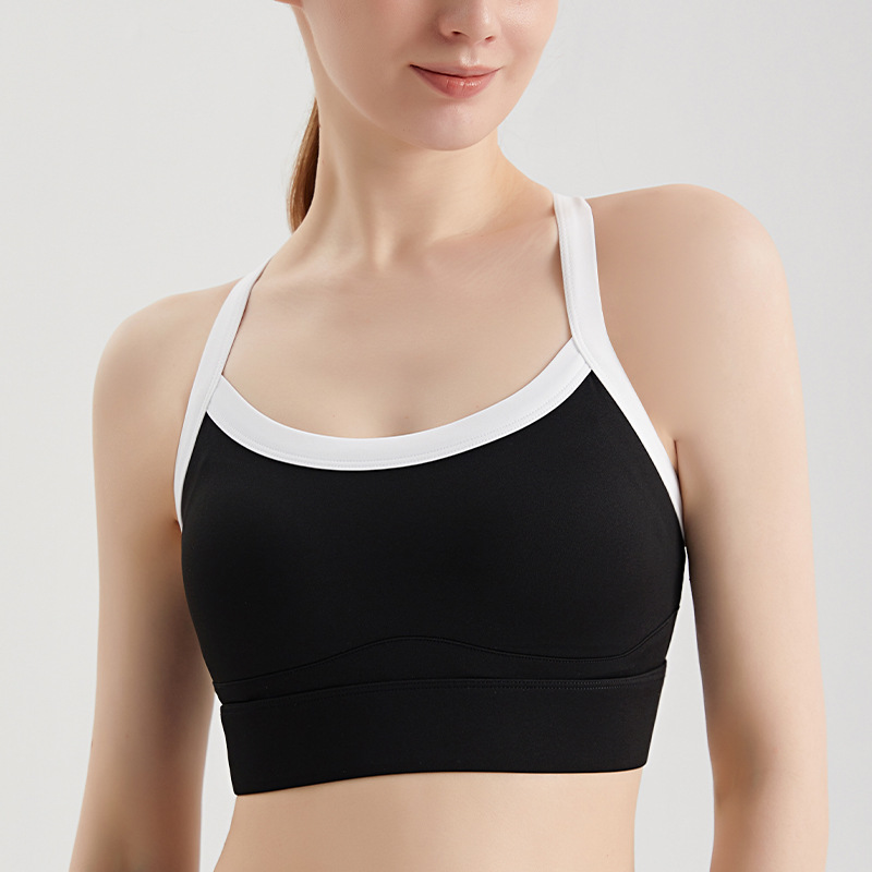 Chuanton 새로운 스포츠 속옷 여성의 충격 방지 고강도 달리기 빠른 건조 고정 원피스 컵 대비 컬러 요가 조끼 여름