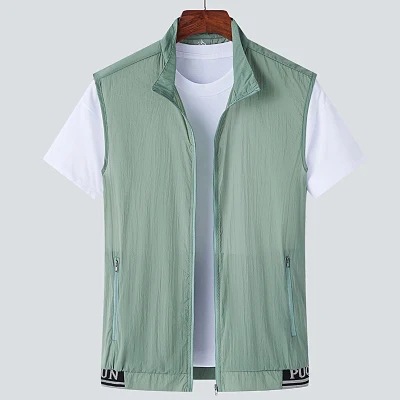 여름 얇은 태양 보호 의류 조끼 남자 여름 야외 빠른 건조 피부 옷 통기성 조끼 웨이스트 코트 민소매 재킷