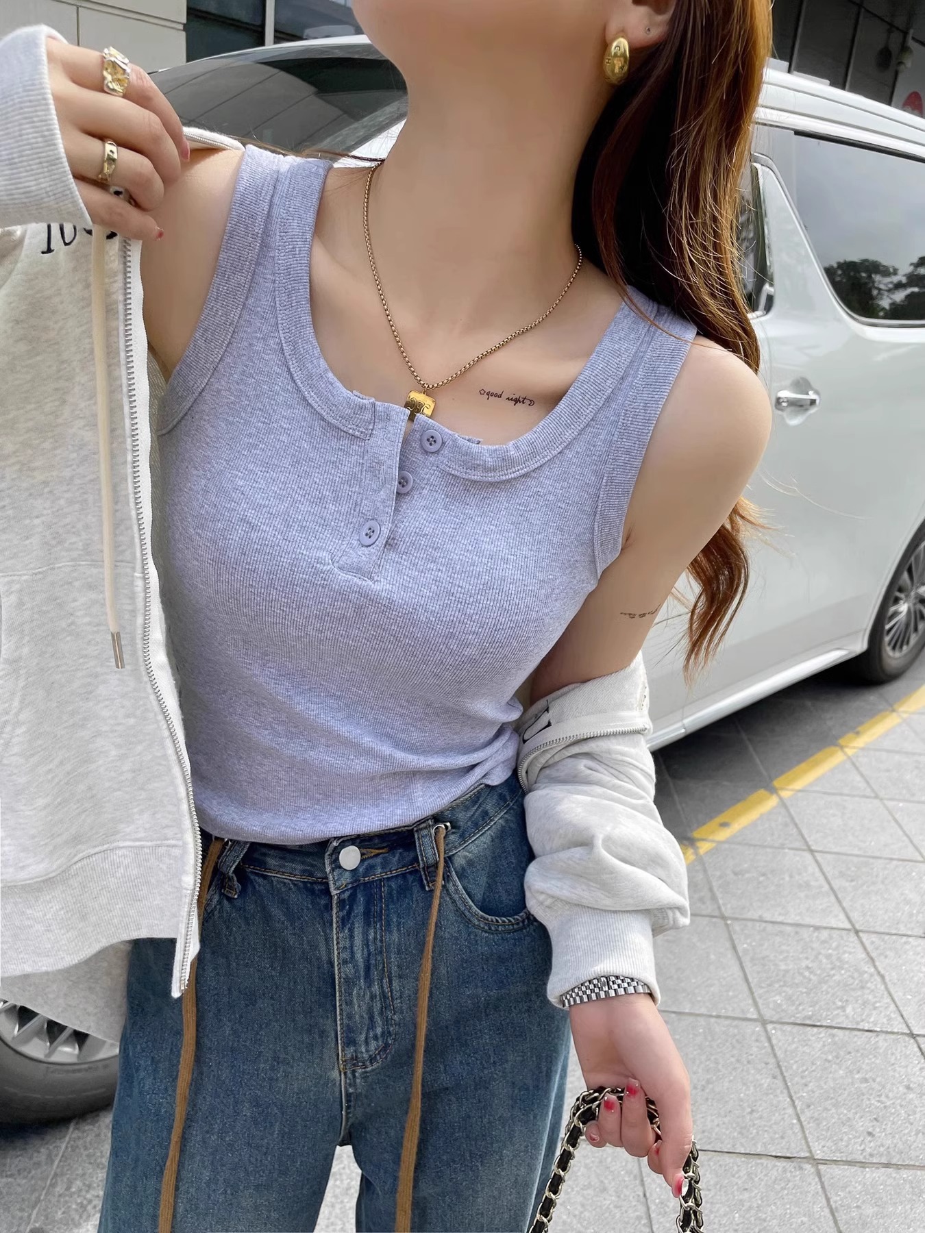 • 가벼운 멜란지 그레이 ~ 둥근 목