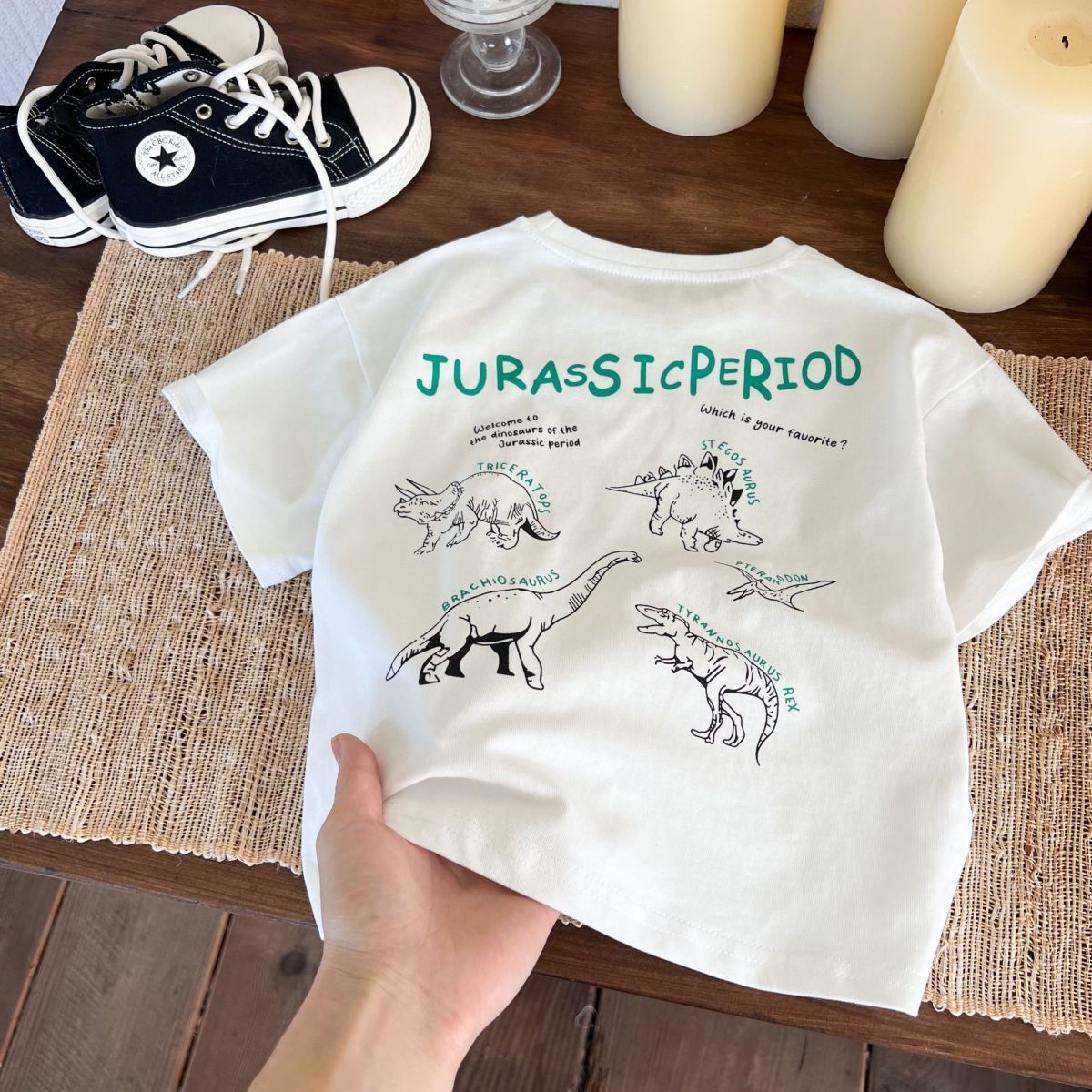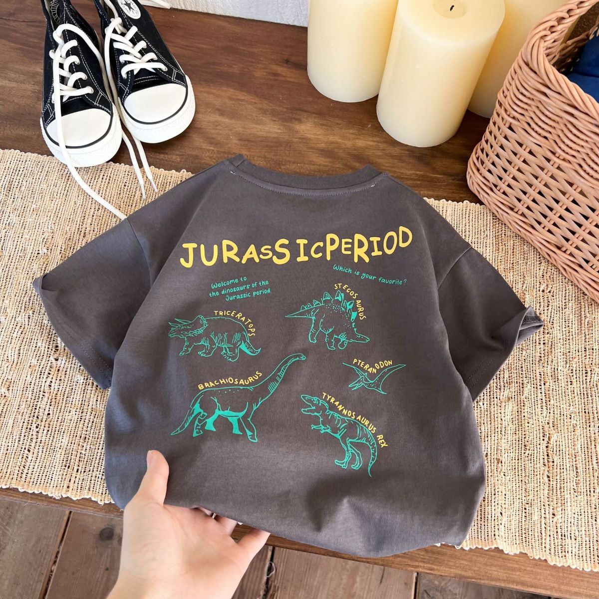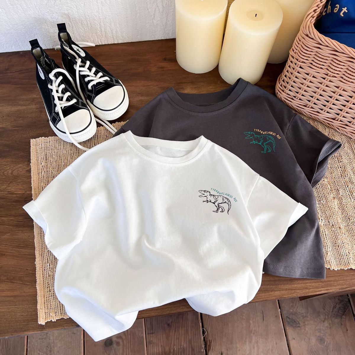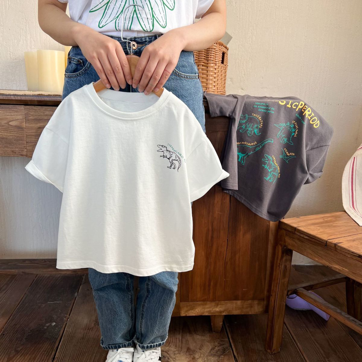 100 면 아동복 소년 반팔 티셔츠 여름 새로운 도착 공룡 만화 소녀 캐주얼 인쇄베이스 탑스토어 가기