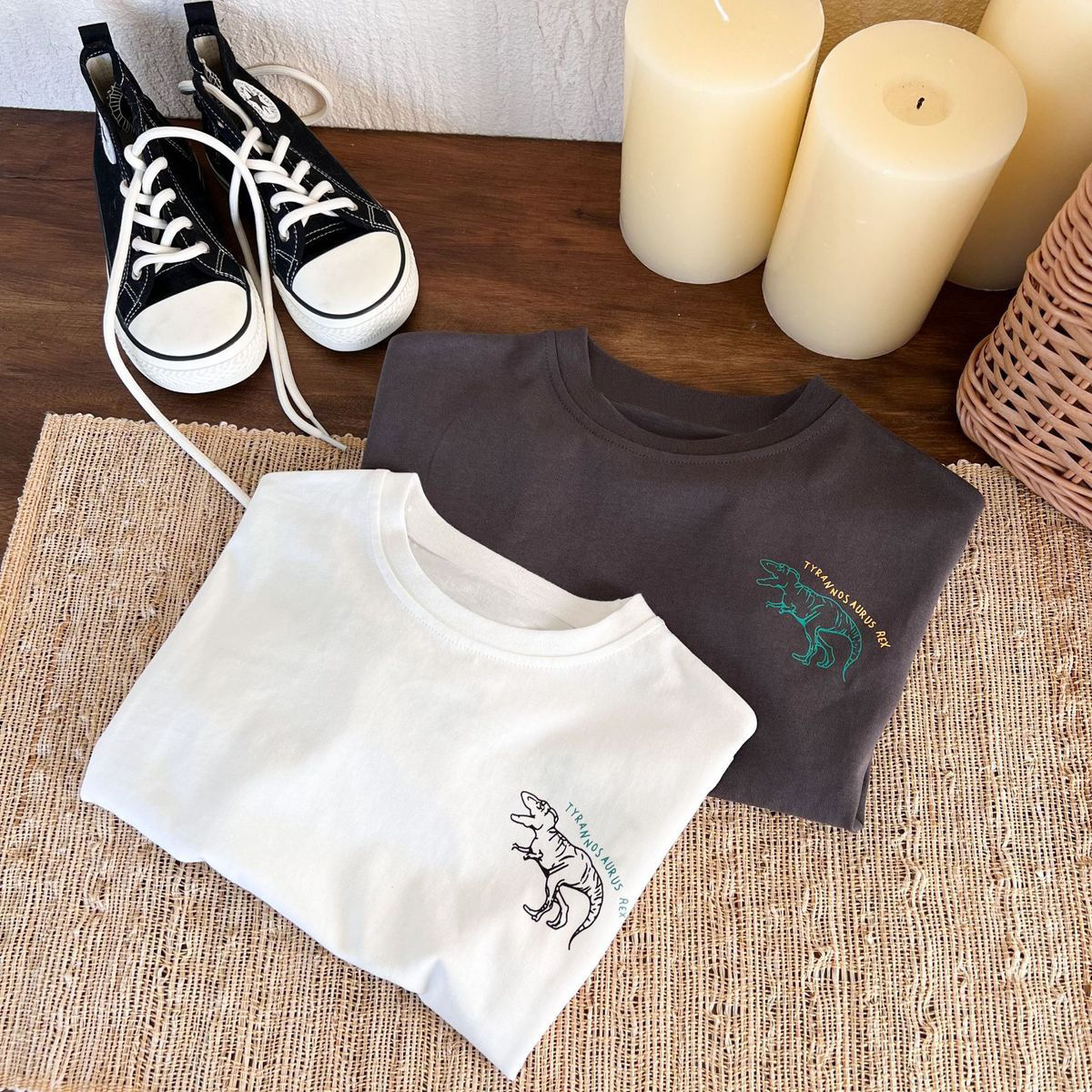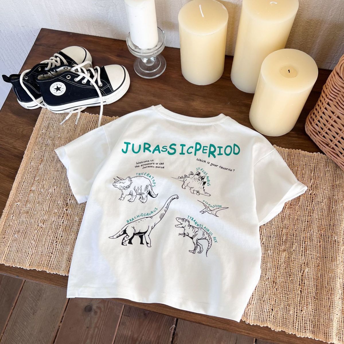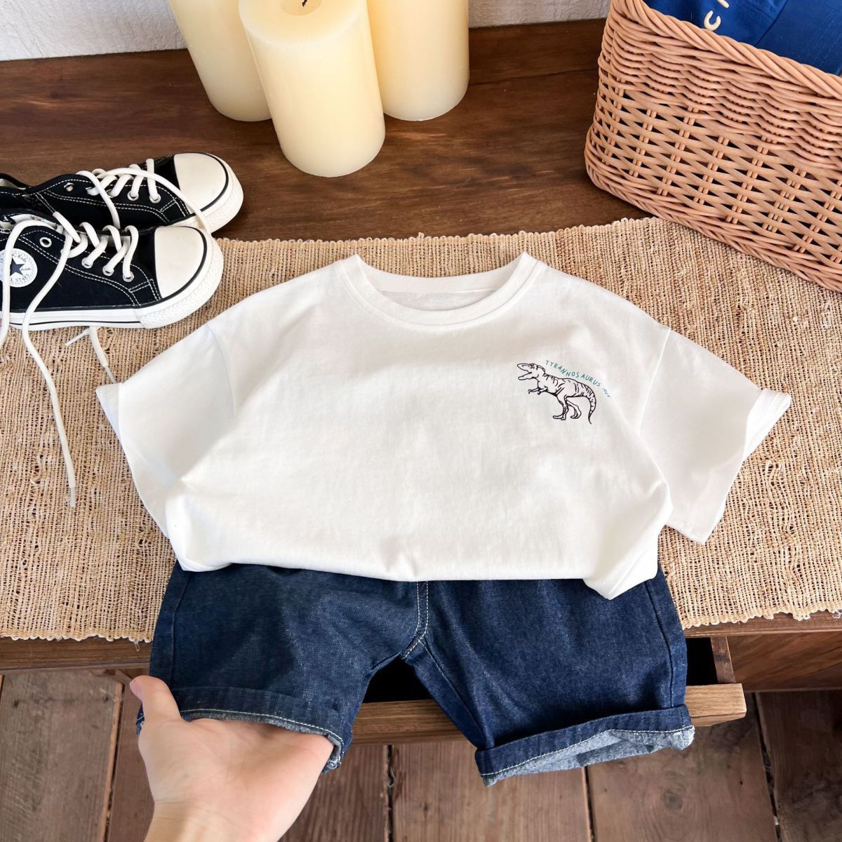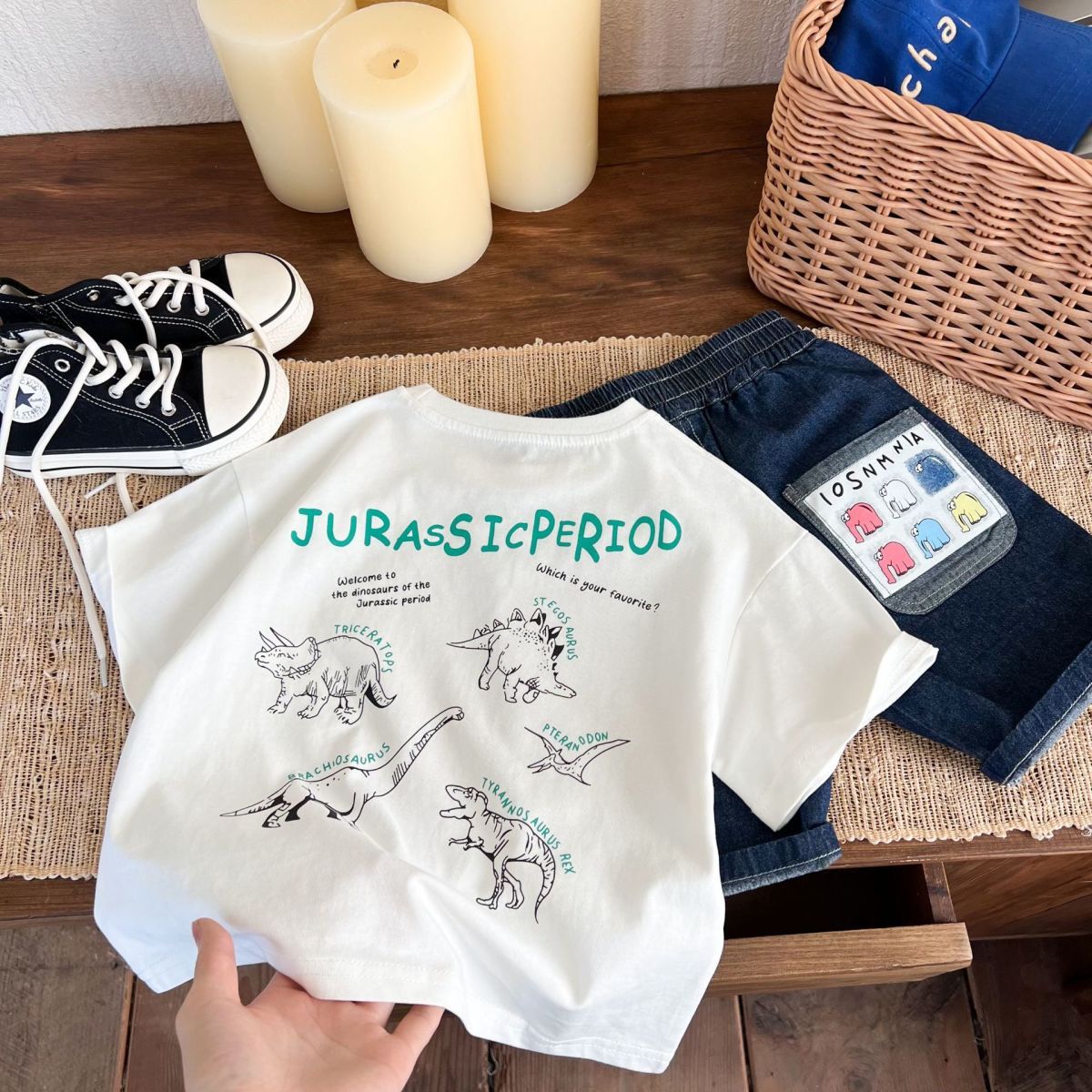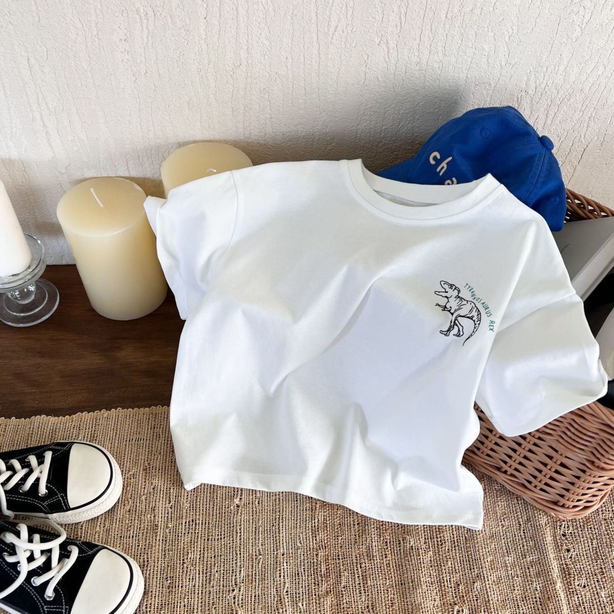 100 면 아동복 소년 반팔 티셔츠 여름 새로운 도착 공룡 만화 소녀 캐주얼 인쇄베이스 탑스토어 가기