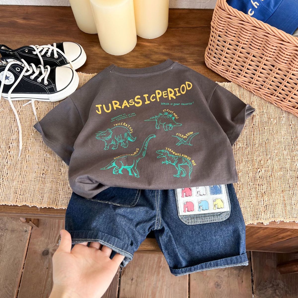 100 면 아동복 소년 반팔 티셔츠 여름 새로운 도착 공룡 만화 소녀 캐주얼 인쇄베이스 탑