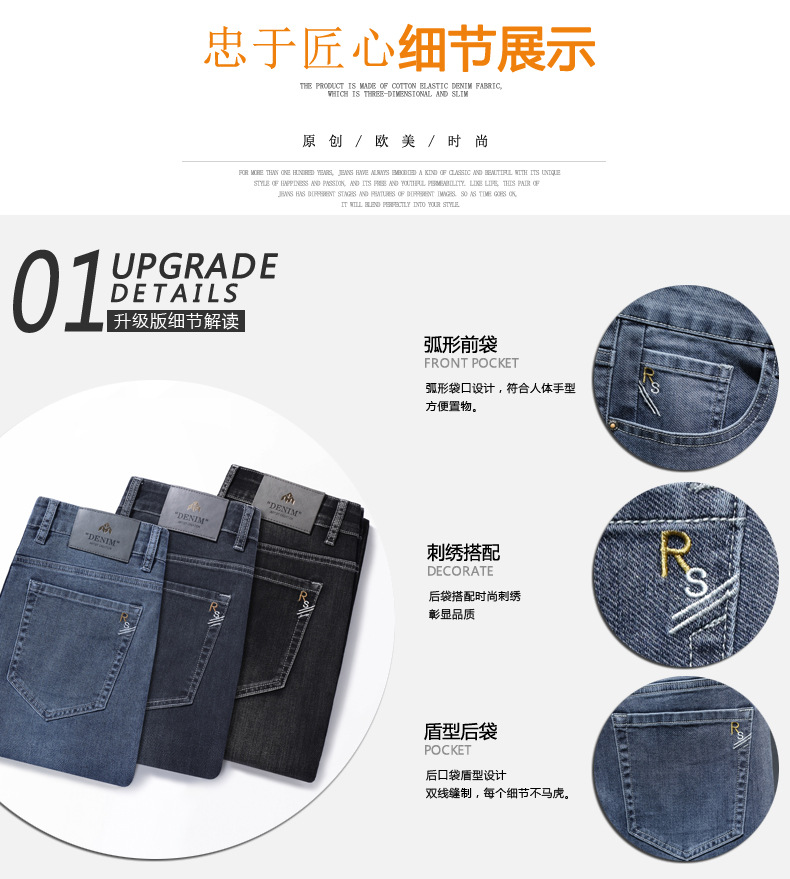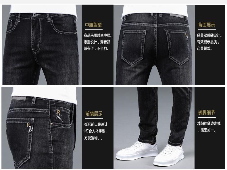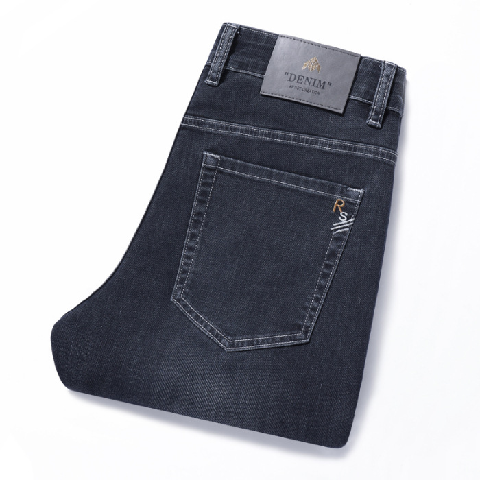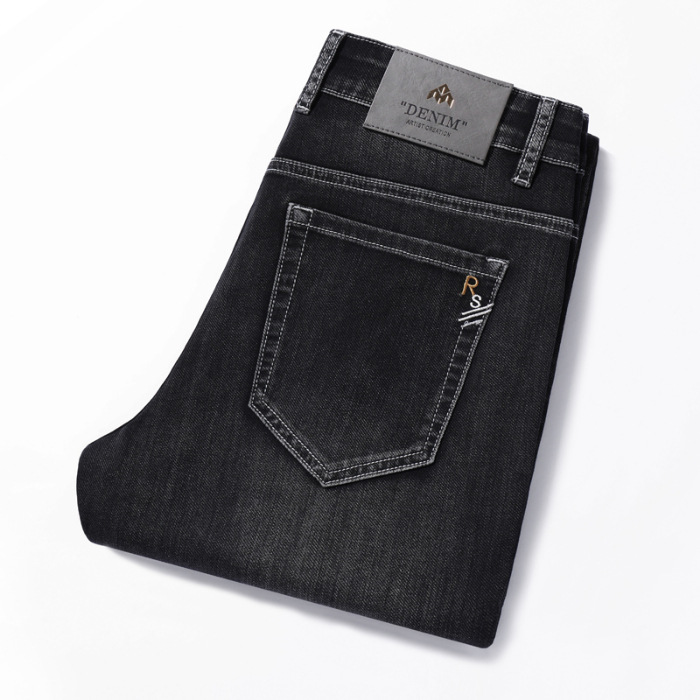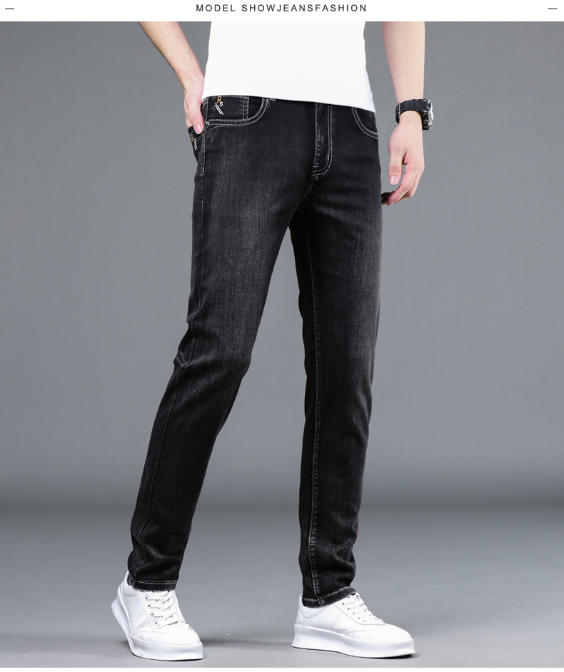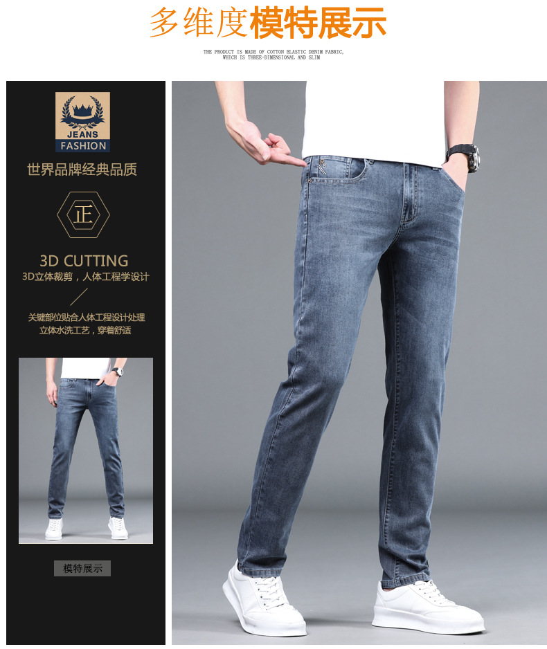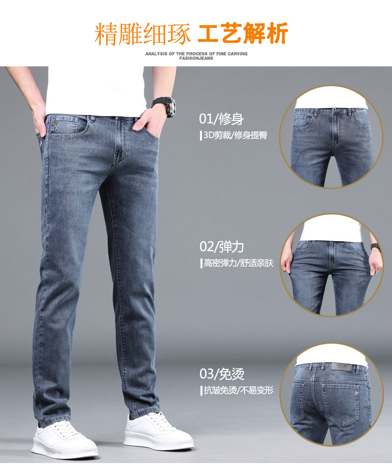 여름 남성용 청바지 슬림 핏 탄성 작은 스트레이트 얇은 편안한 부드러운 중간 허리 데님 남성용 바지스토어 가기