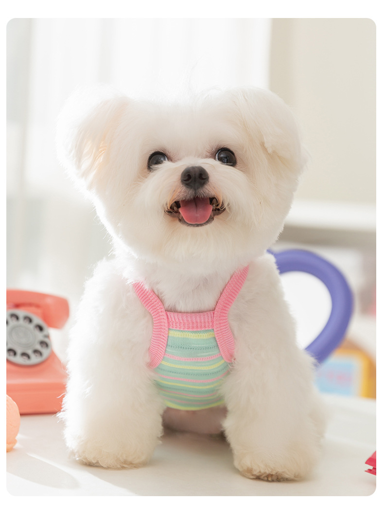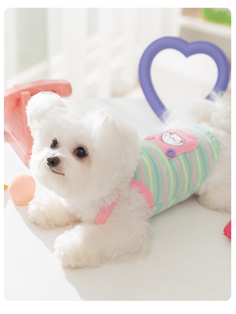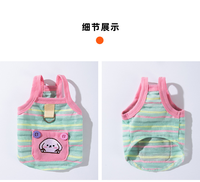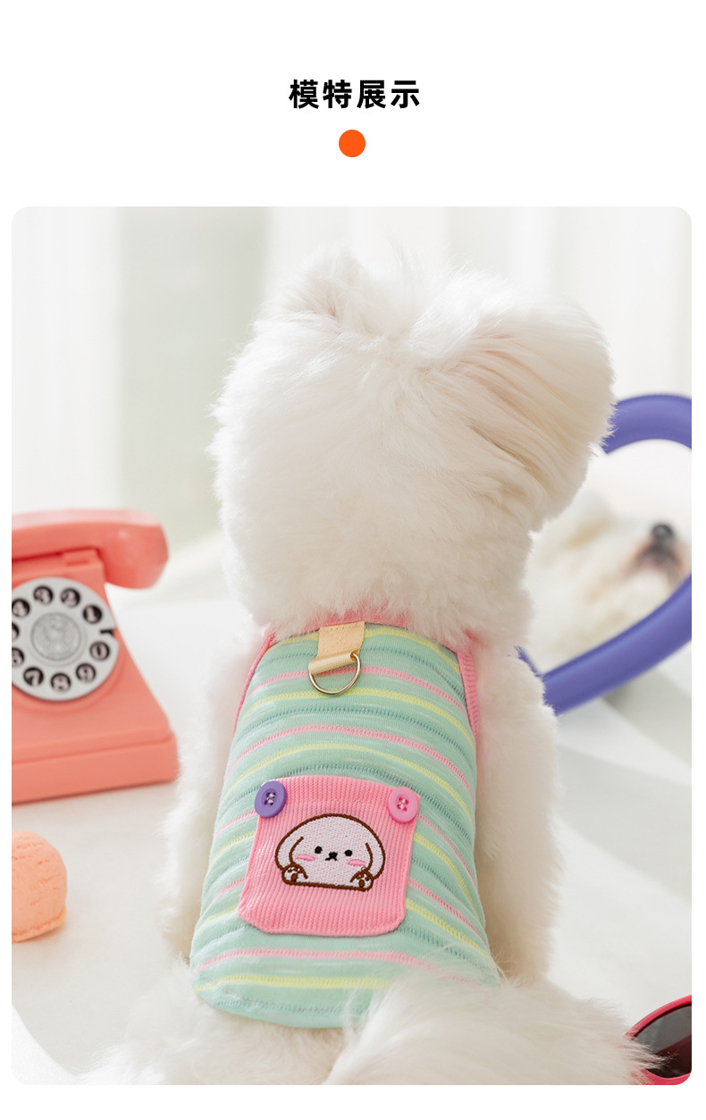 봄과 여름 새로운 통기성 개 옷 귀여운 컬러 줄무늬 견인 카미솔 곰 테디 애완 동물 의류스토어 가기