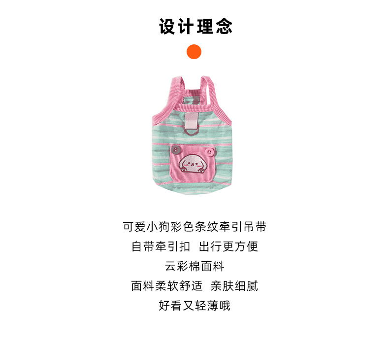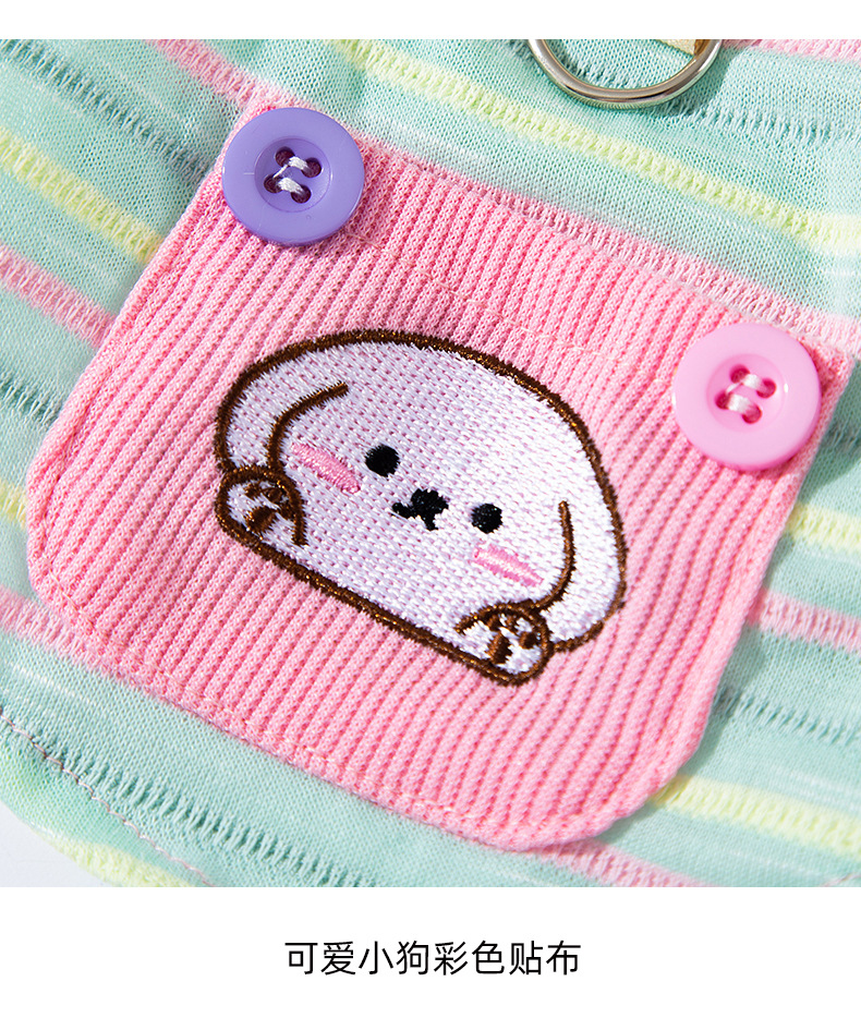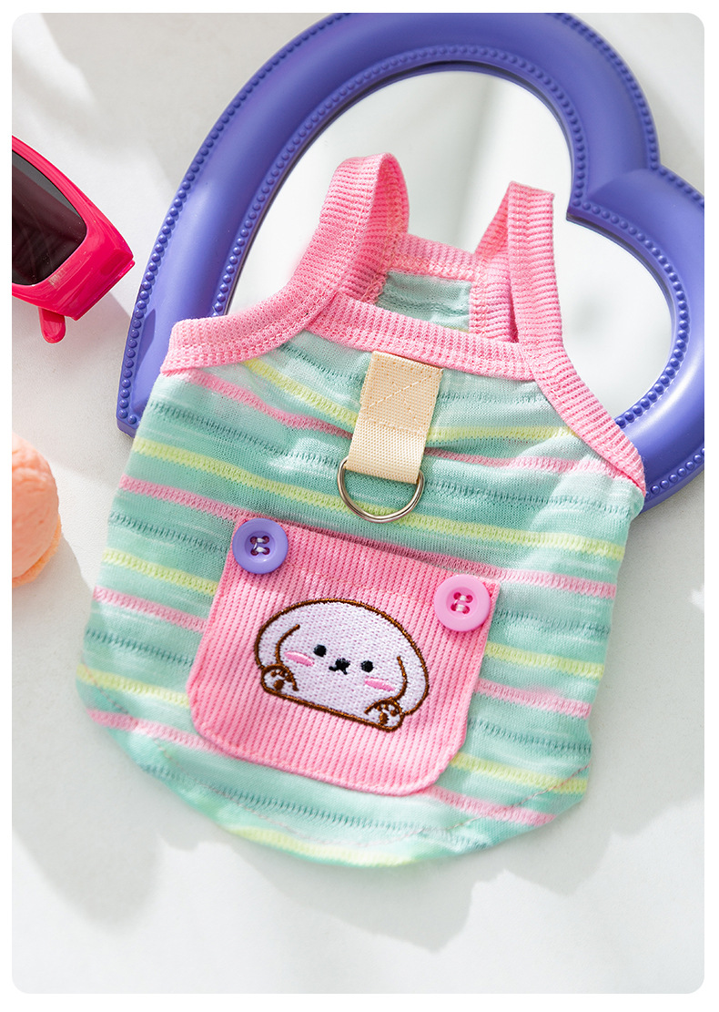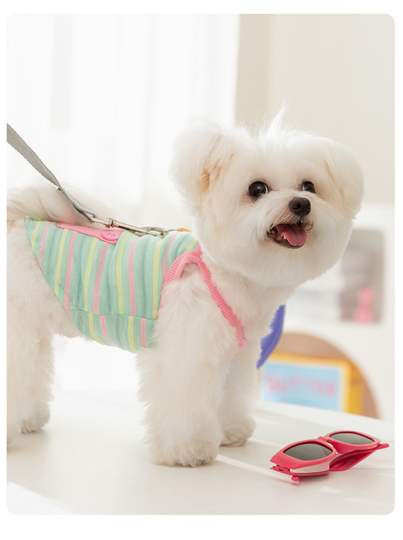 봄과 여름 새로운 통기성 개 옷 귀여운 컬러 줄무늬 견인 카미솔 곰 테디 애완 동물 의류