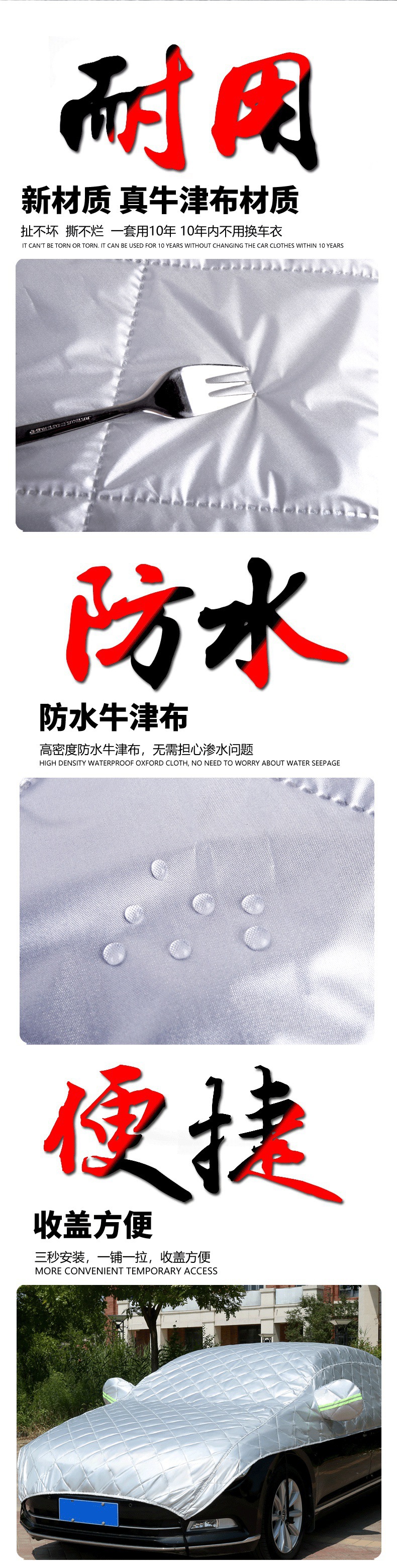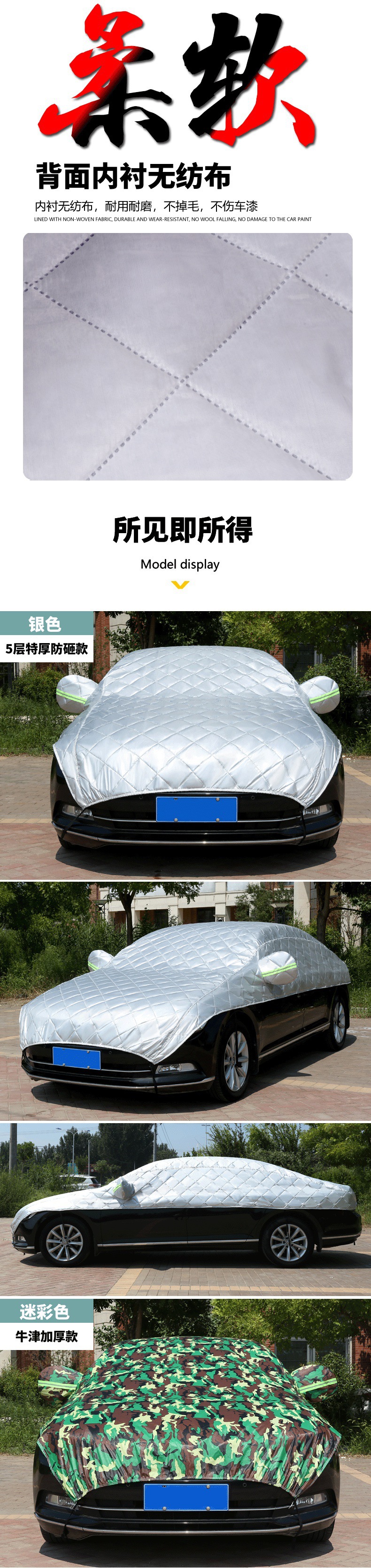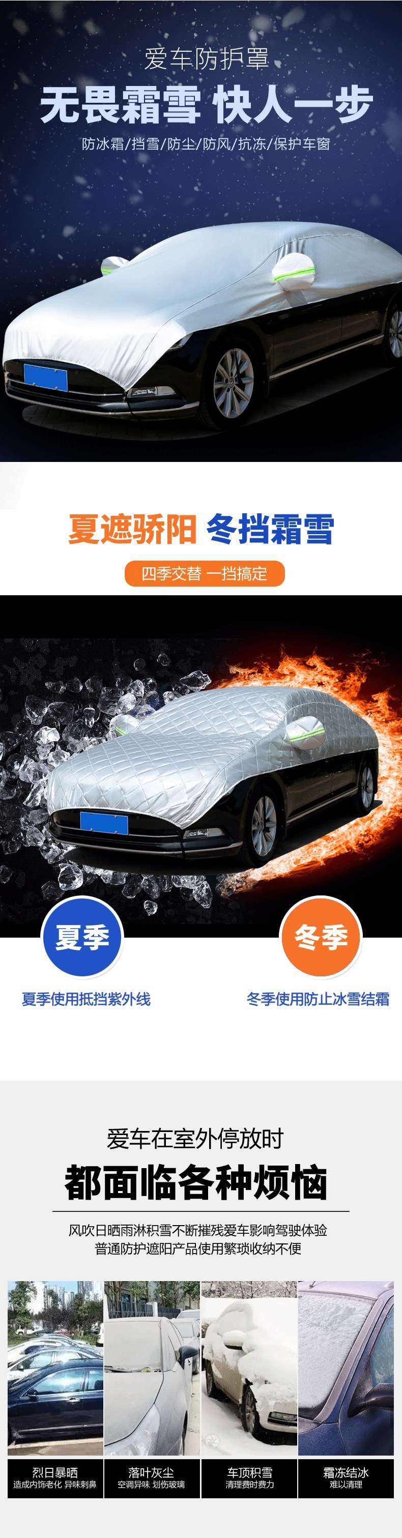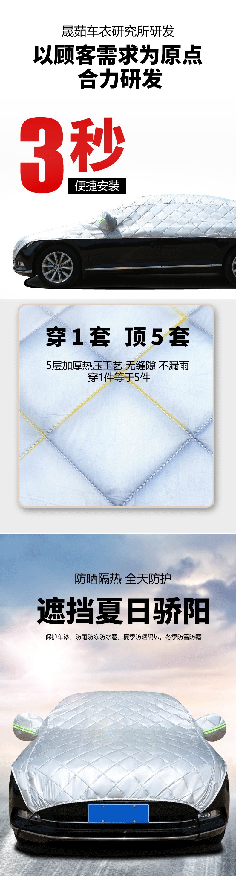자동차 하프 커버, 자동차 커버, 사계절 범용 자외선 차단, 비, 눈 및 동결 방지 커버, 하프 전면 커버, 두꺼운 지붕 커버