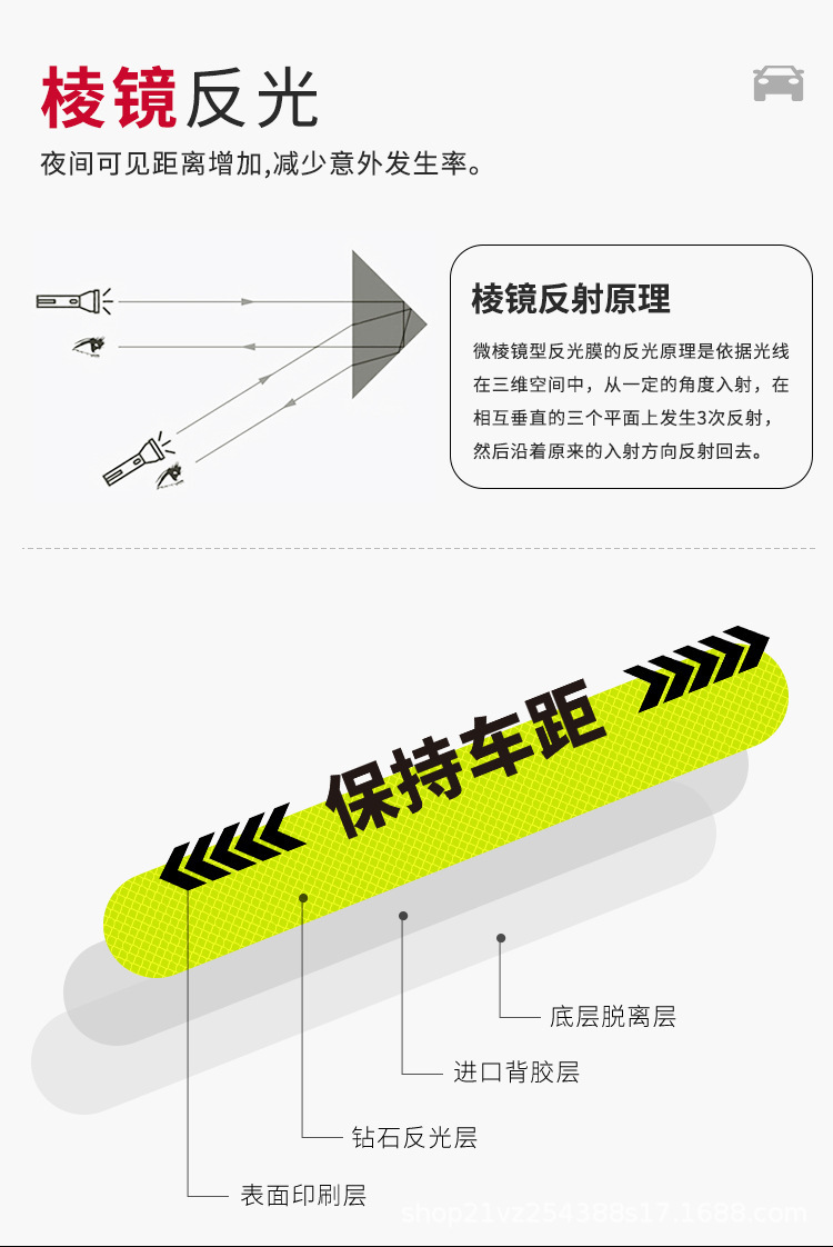 초보 인턴쉽 바디 리어 바 반사 스티커 자기 흡착 강한 반사 반사 경고 스티커스토어 가기