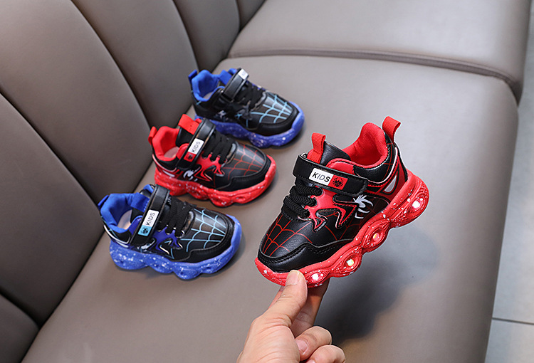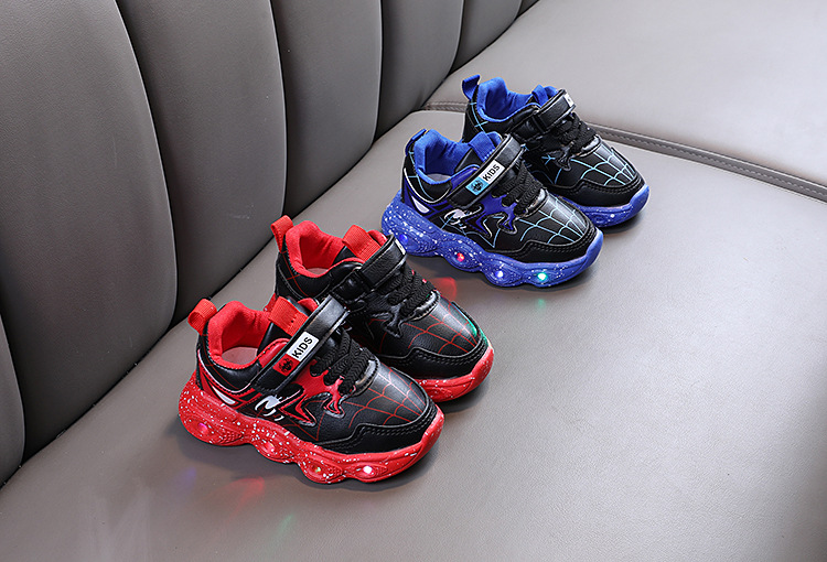 봄과 가을 새로운 한국 스타일 빛나는 가죽 신발 LED 빛나는 어린이 신발 1-6 세 소년 소녀 스포츠 캐주얼 신발 빛