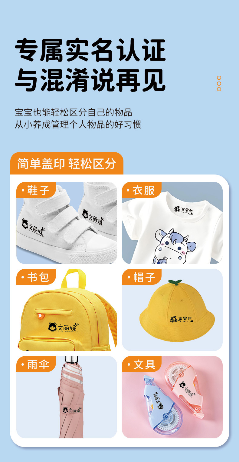 만화 이름 스탬프, 의류 스탬프, 감광성 스탬프 재료 도매, 방수 및 변색 방지 어린이 이름 스탬프스토어 가기