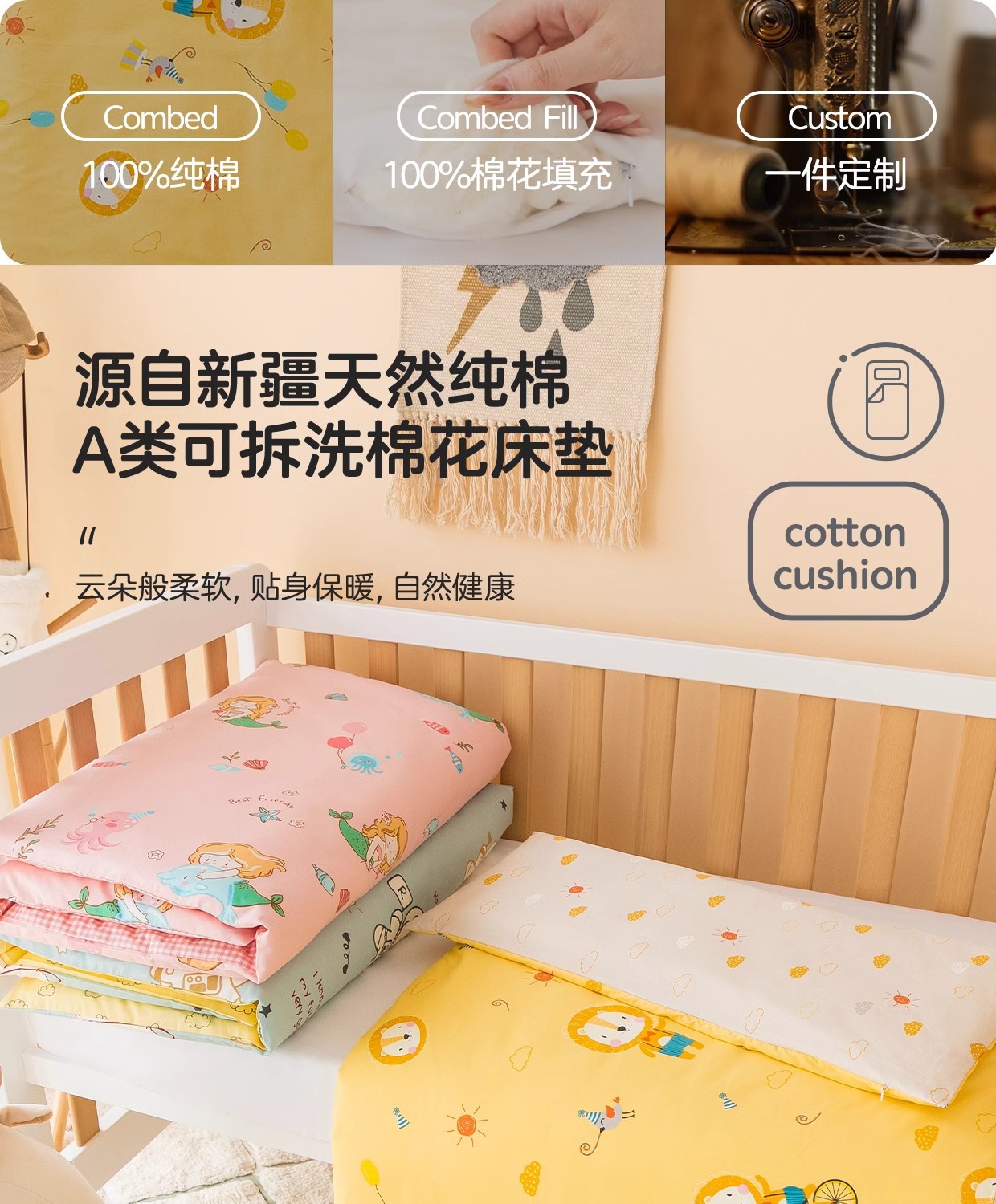 유치원 어린이 낮잠 면화 매트리스 면화 매트리스 이동식 및 세척 가능한 부드러운 침대 매트 도매 면화 쿠션 퀼트
