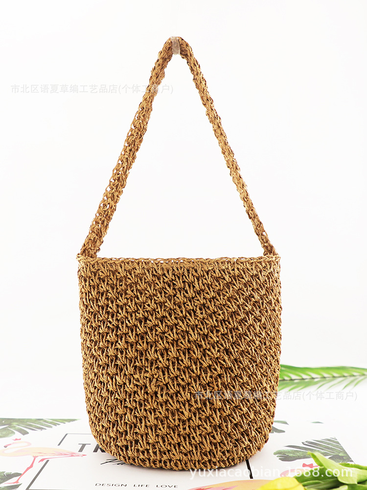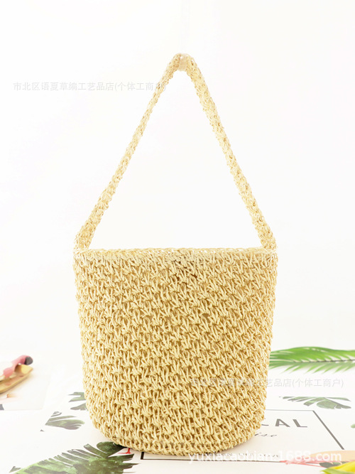 Ins New Arrival Hollow Monofilament 종이 로프 짠 가방 유행 어깨 짚 짠 가방 모리 스타일 캐주얼 여성 가방 비치 백스토어 가기