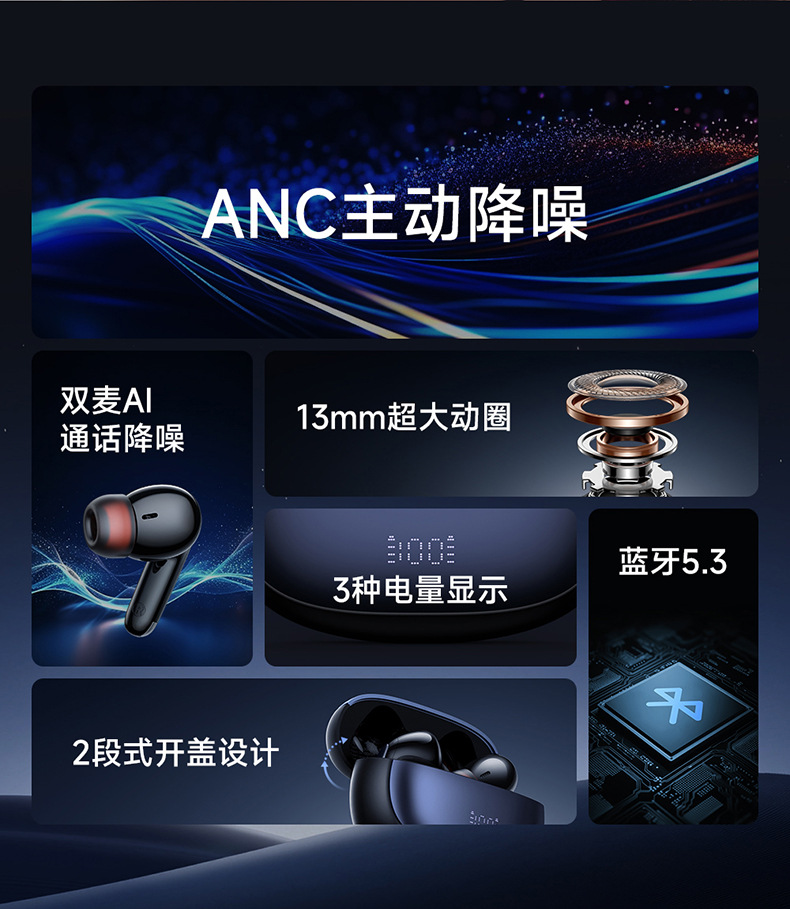 • N2 시리즈 ANC ENC 인 이어 디지털 디스플레이 TWS 헤드폰