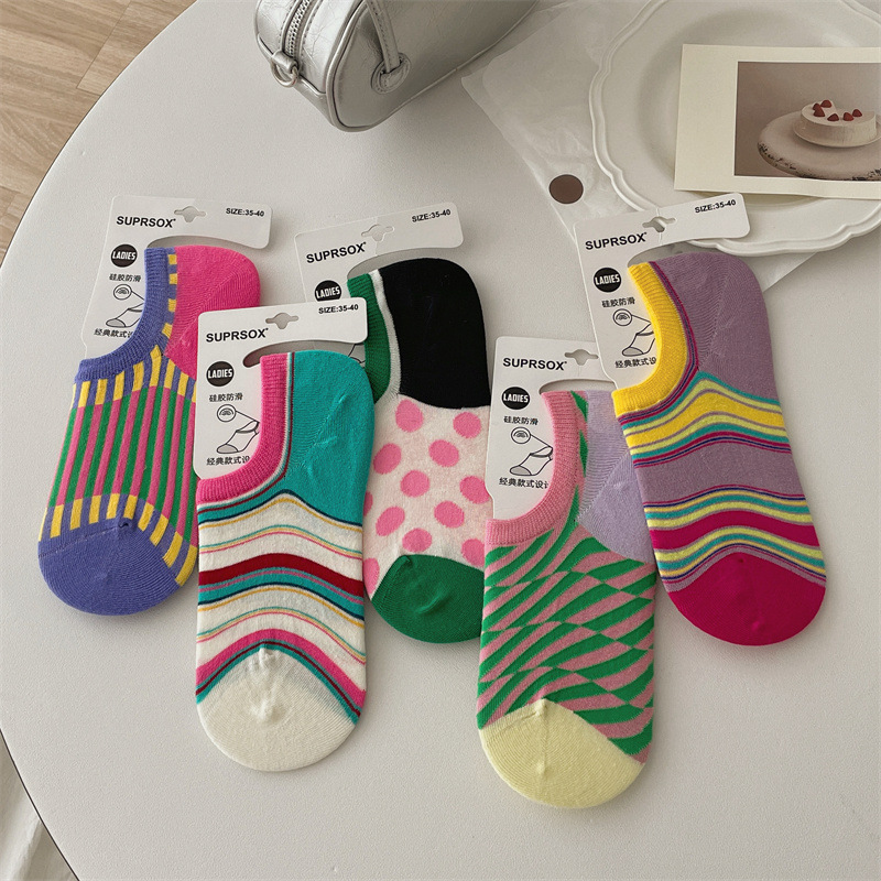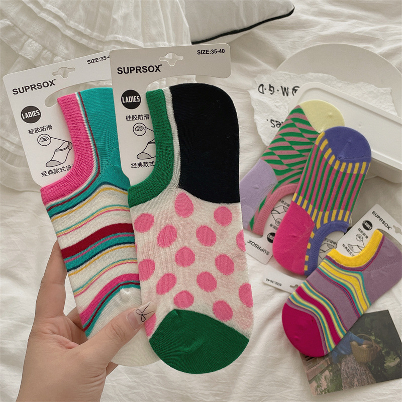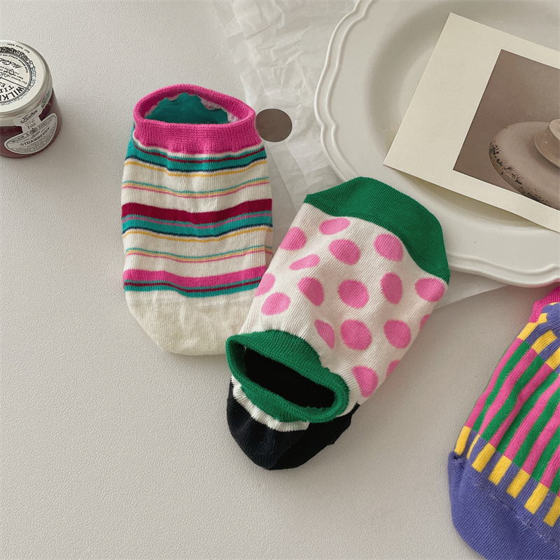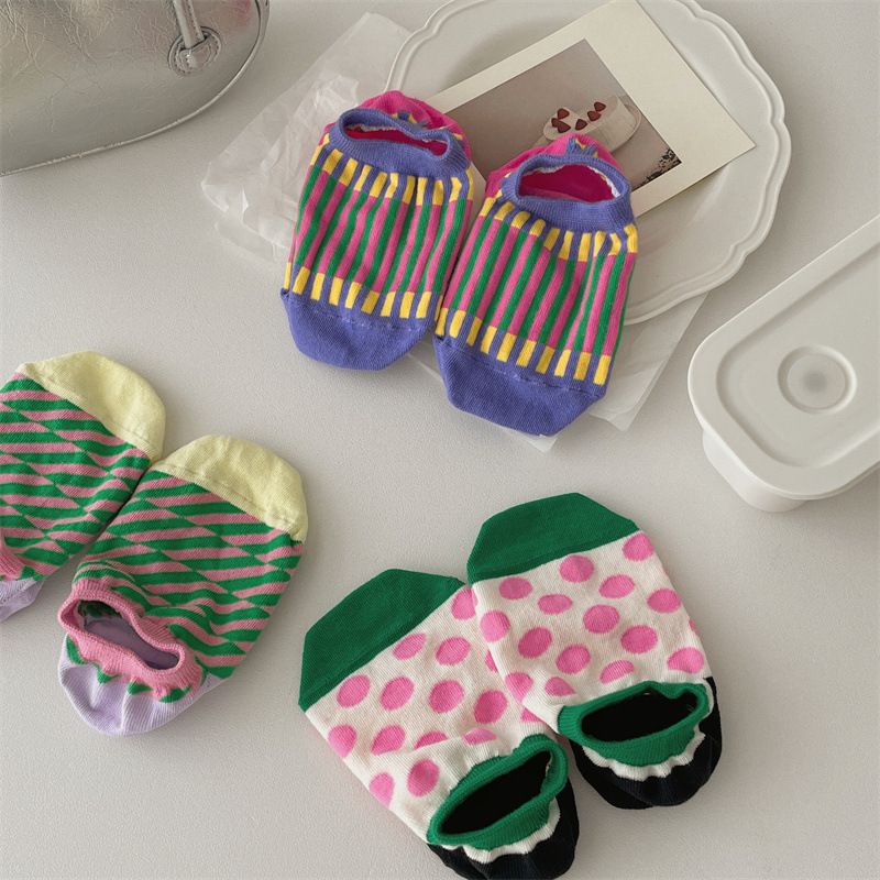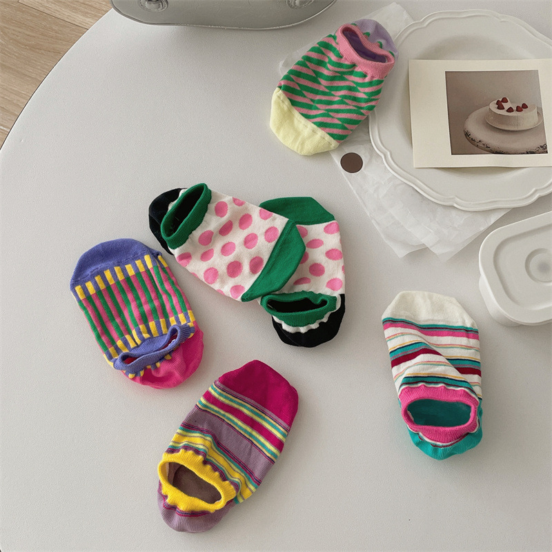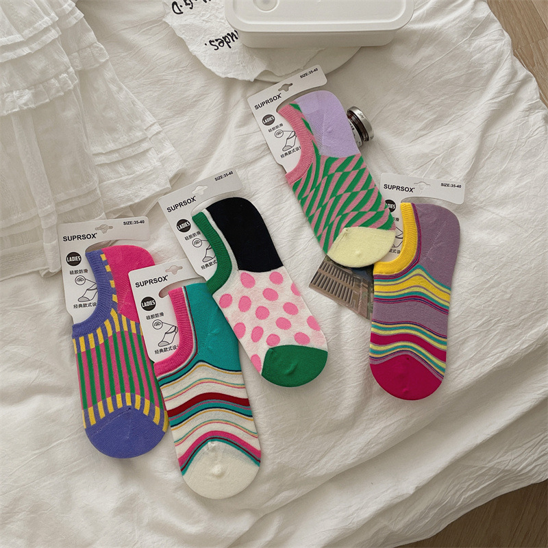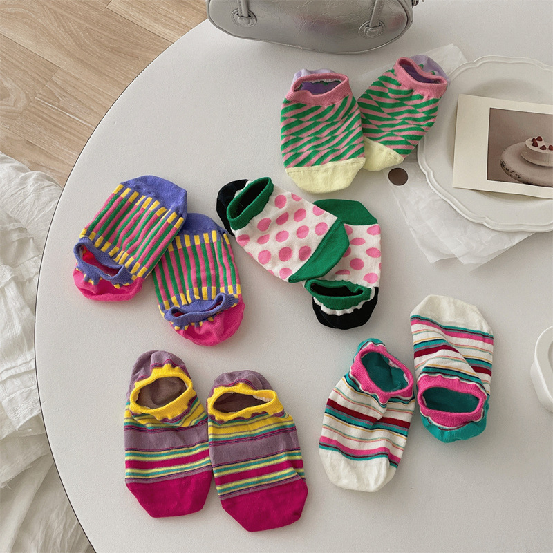 양말 짧은 얕은 입 여성용 줄무늬 코튼 뼈없는 보트 양말 웨이브 도트 대비 컬러 미끄럼 방지 여름 보이지 않는 양말스토어 가기