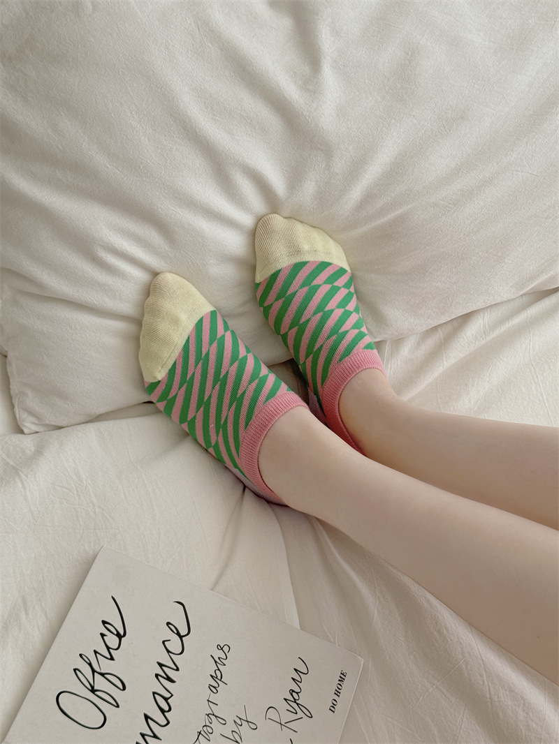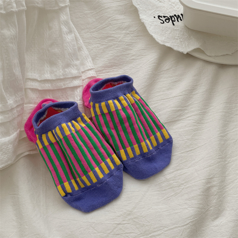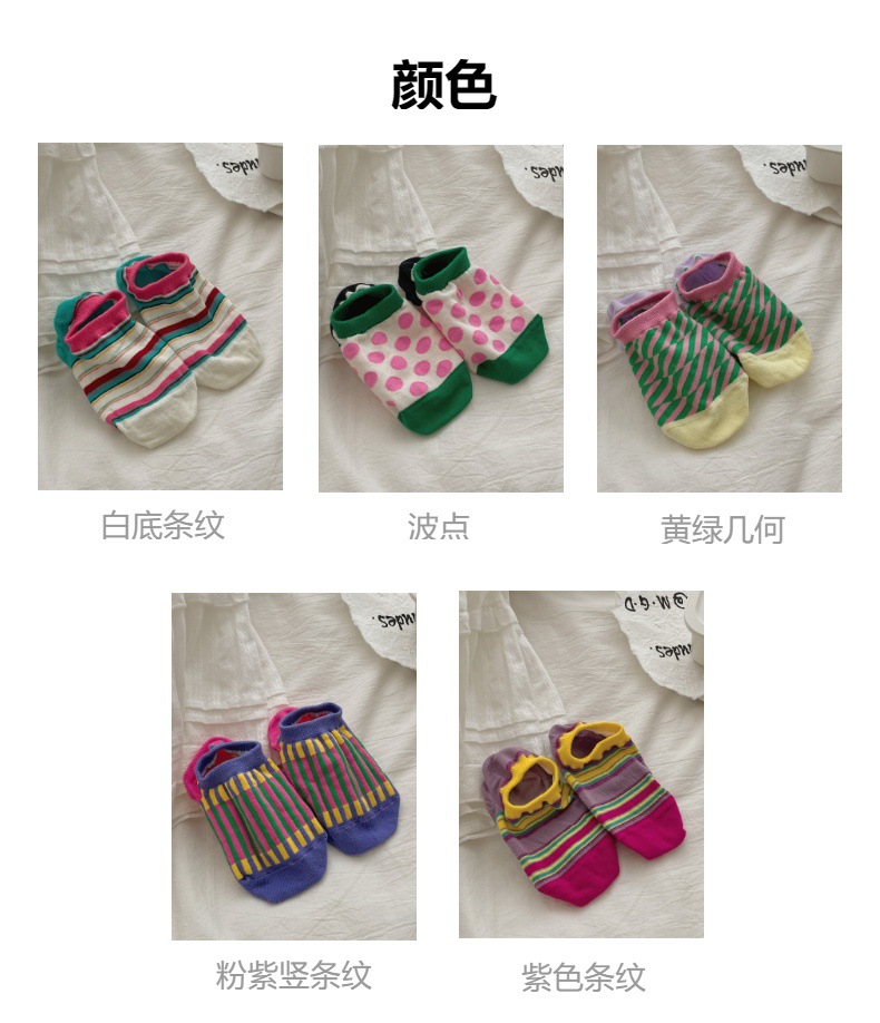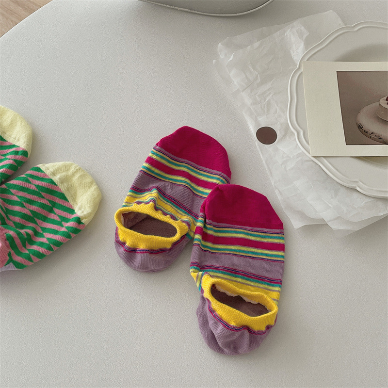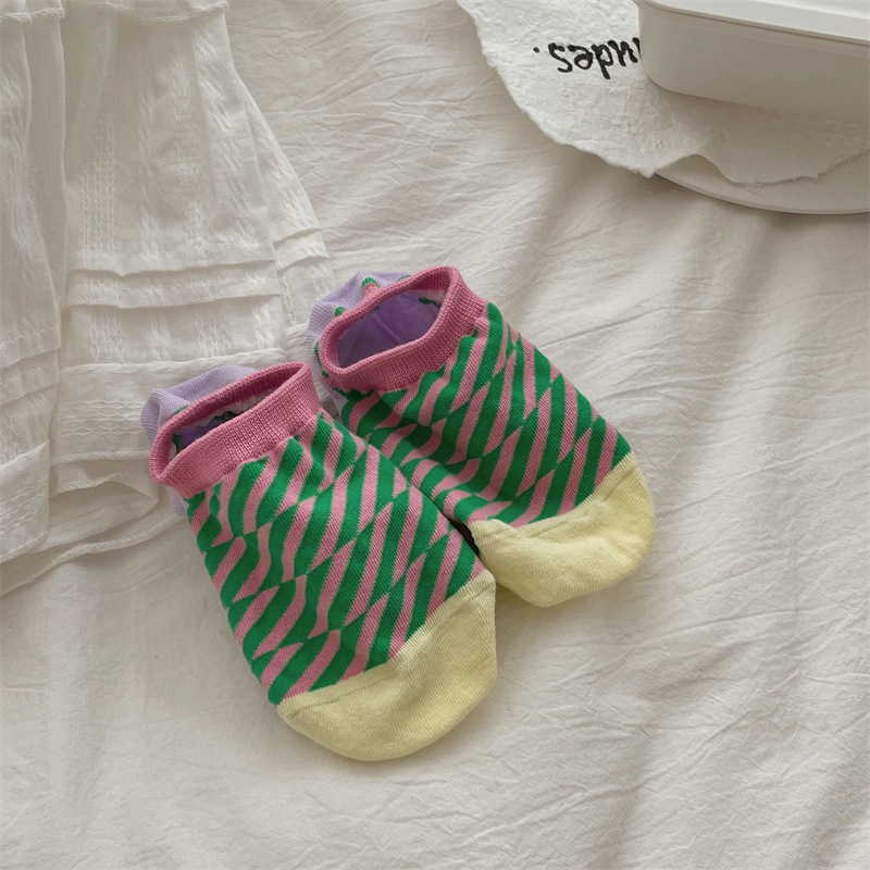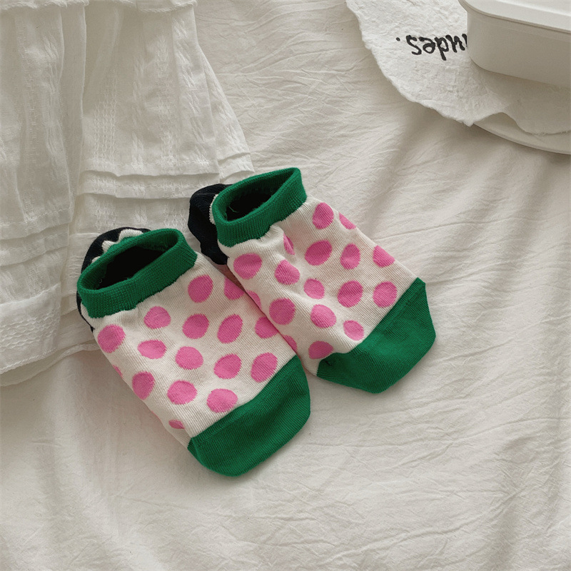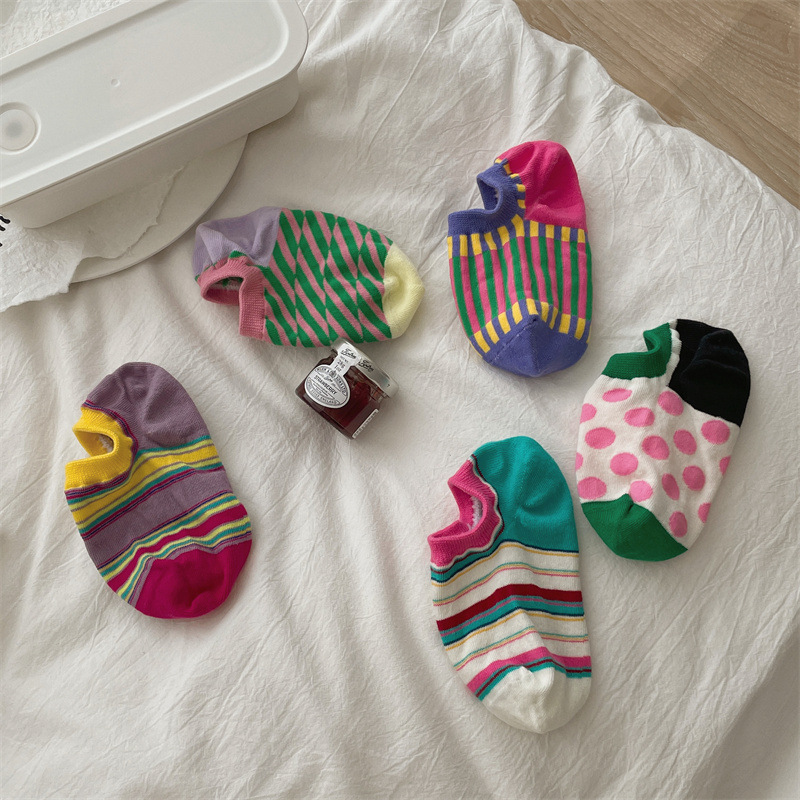 양말 짧은 얕은 입 여성용 줄무늬 코튼 뼈없는 보트 양말 웨이브 도트 대비 컬러 미끄럼 방지 여름 보이지 않는 양말스토어 가기