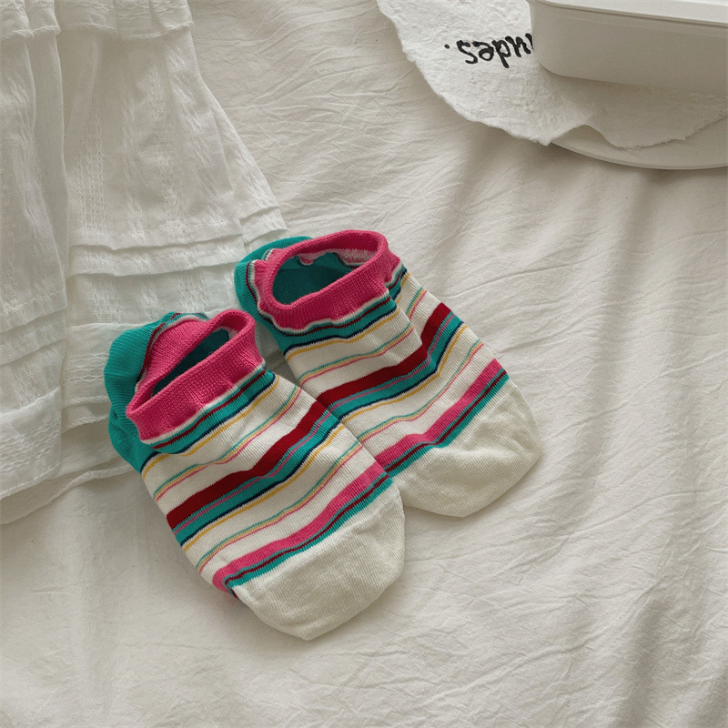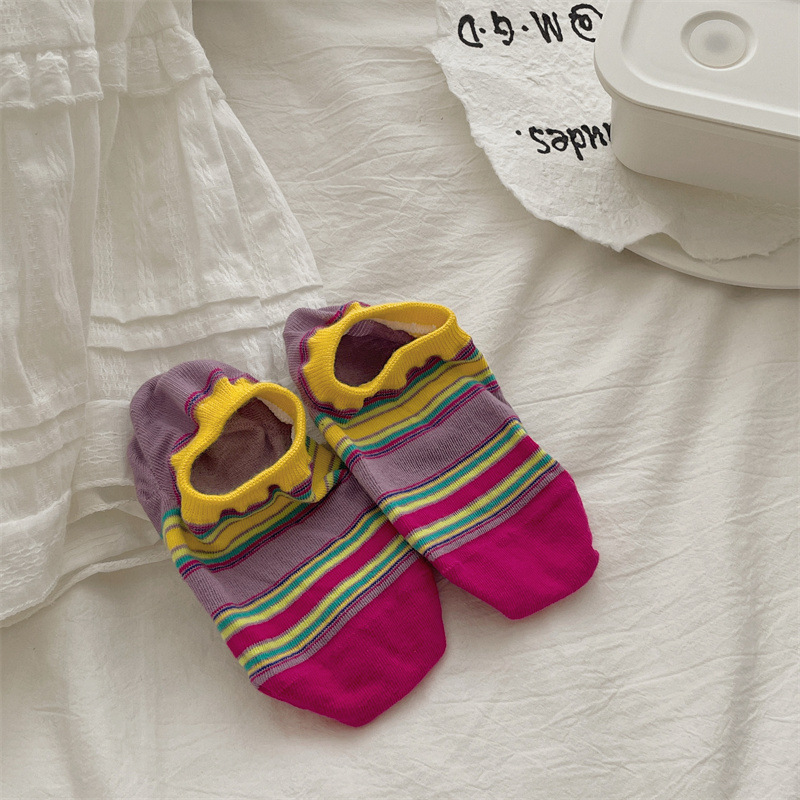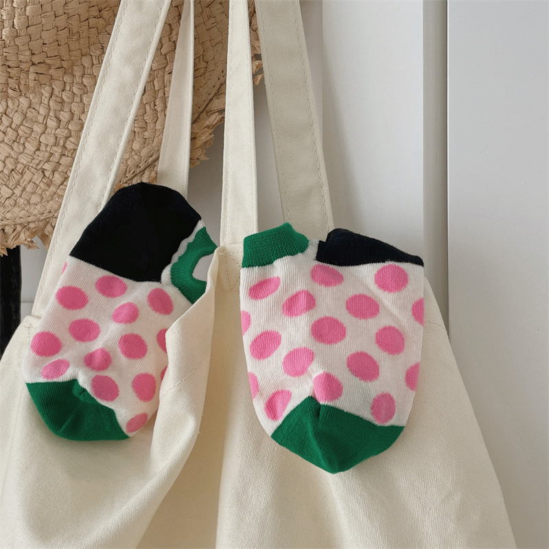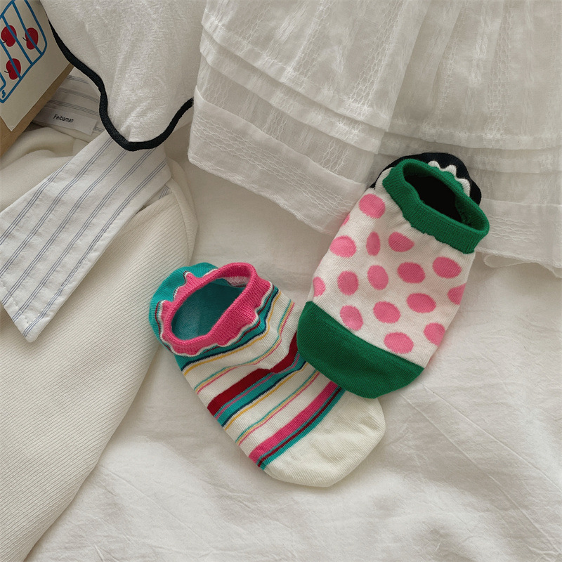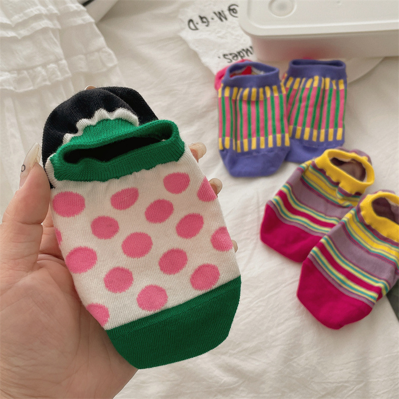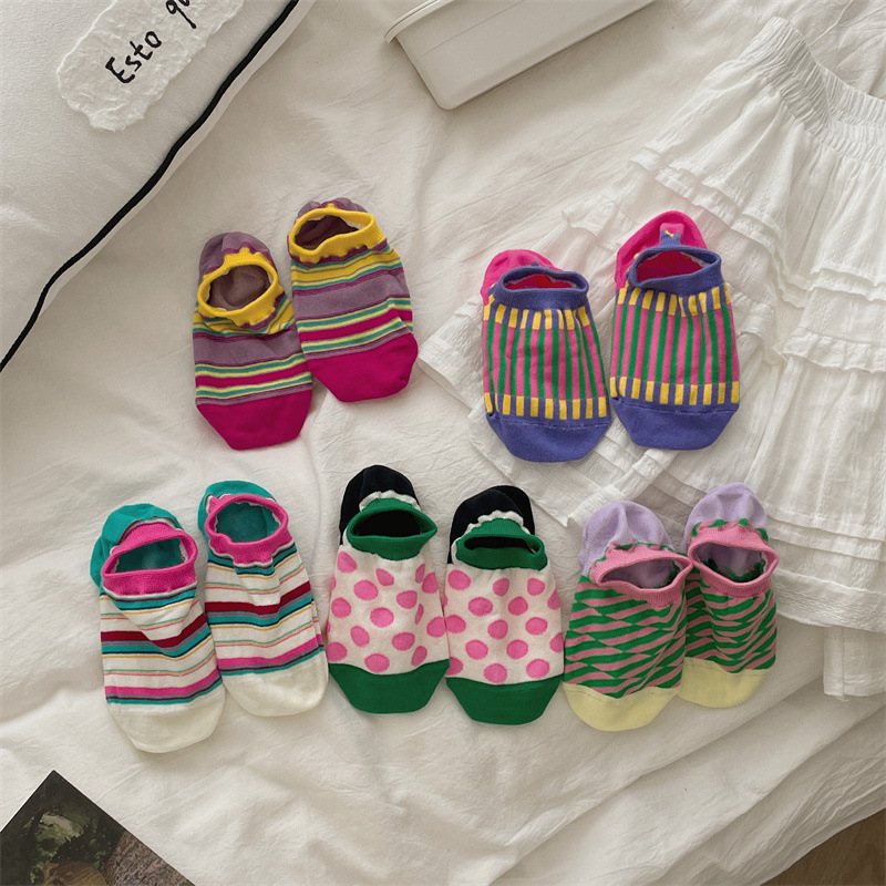 양말 짧은 얕은 입 여성용 줄무늬 코튼 뼈없는 보트 양말 웨이브 도트 대비 컬러 미끄럼 방지 여름 보이지 않는 양말