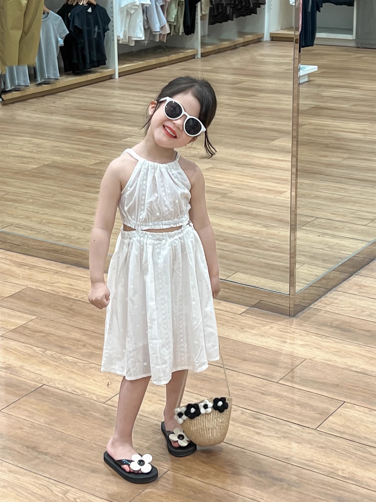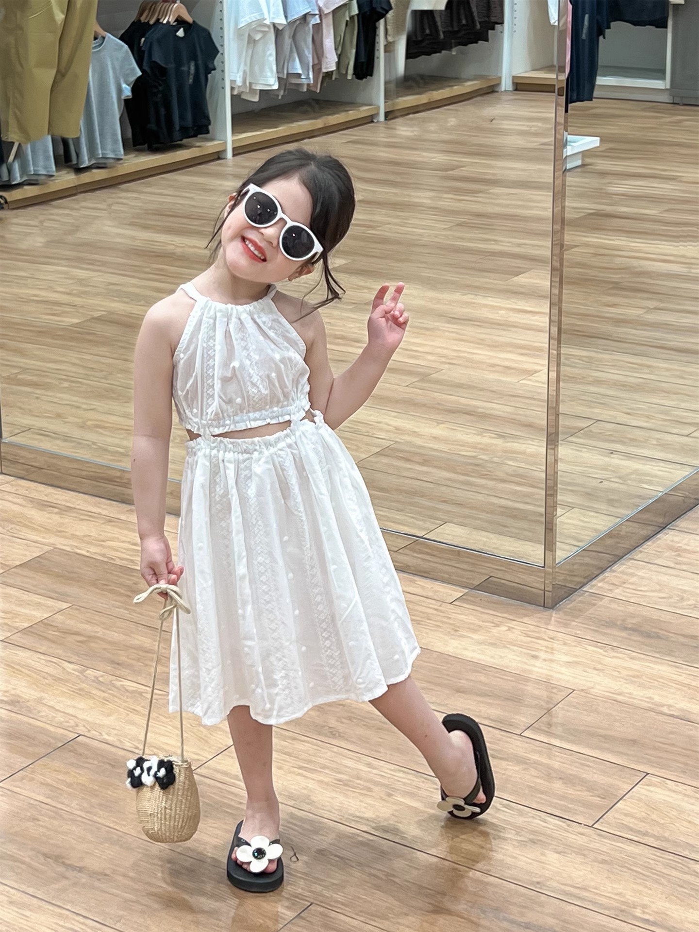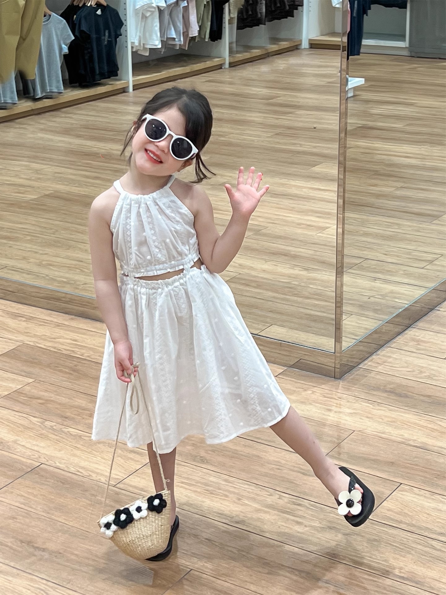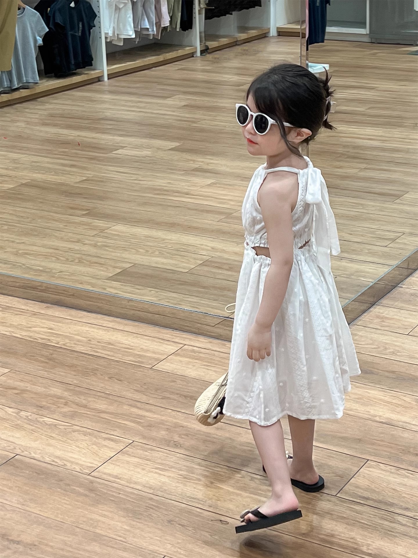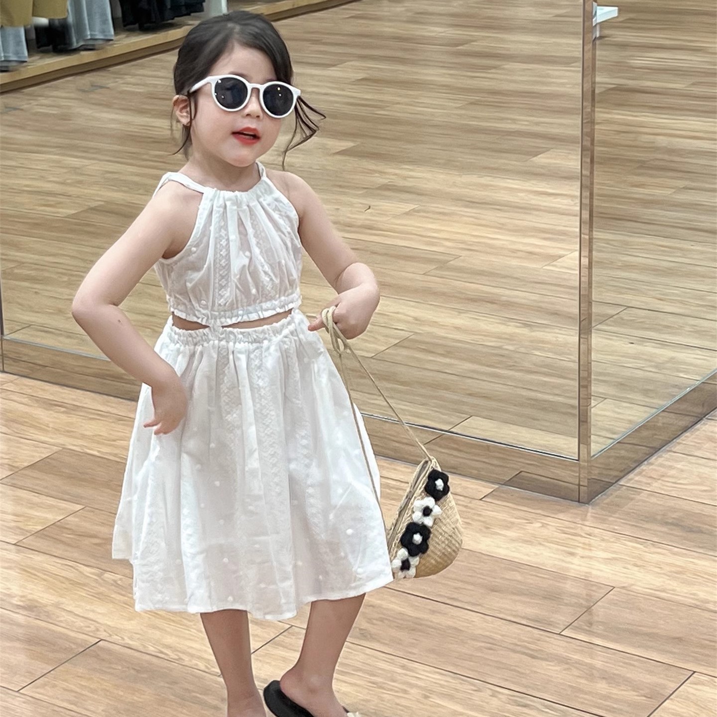 여자 서스펜더 드레스 여름 새로운 어린이 스타일 허리 수 놓은 비치 드레스 아기 소녀 Sundress