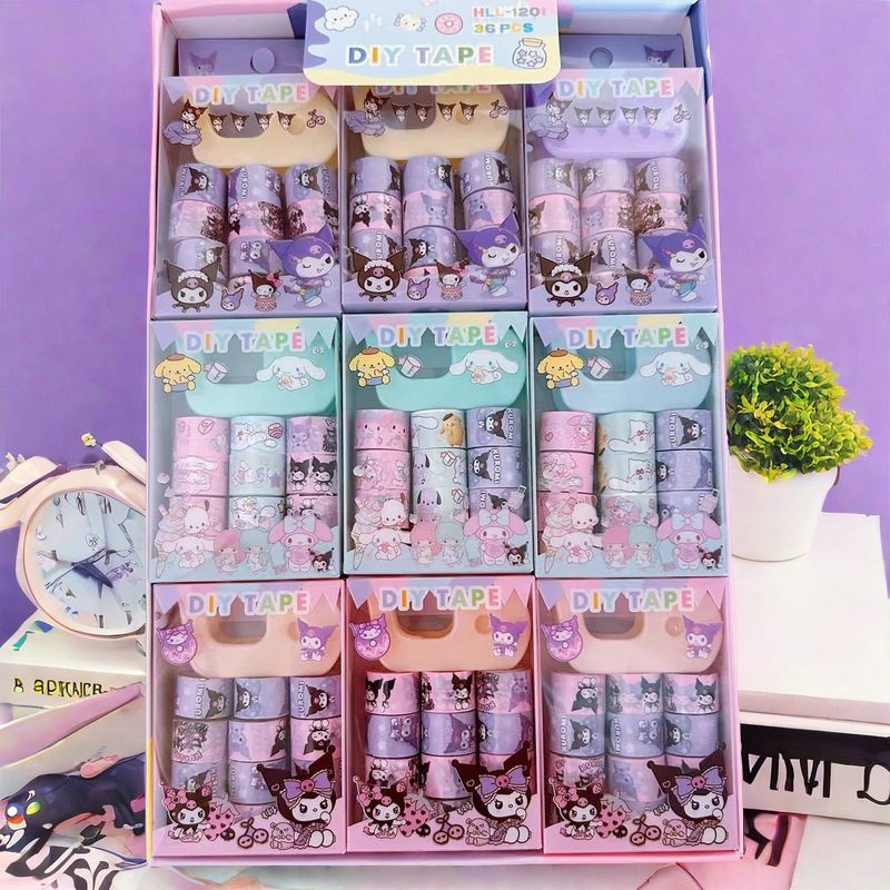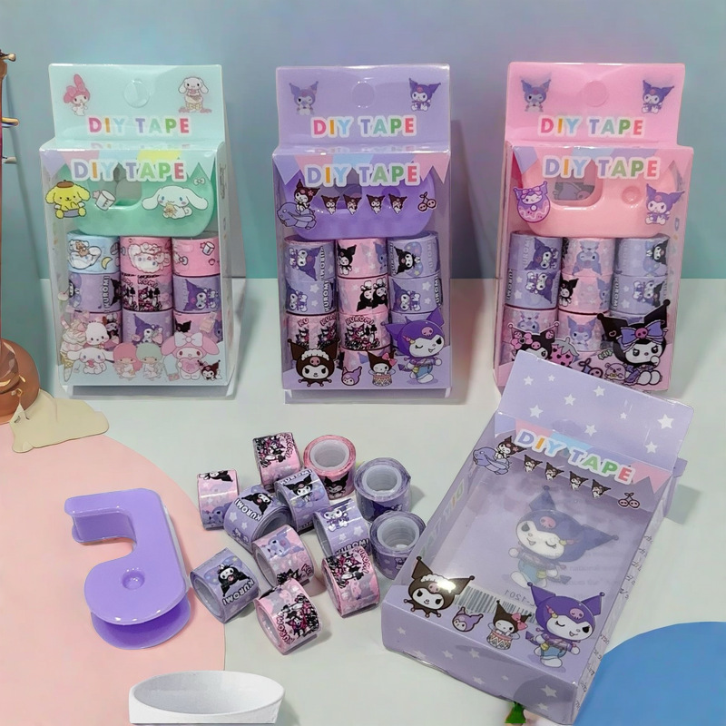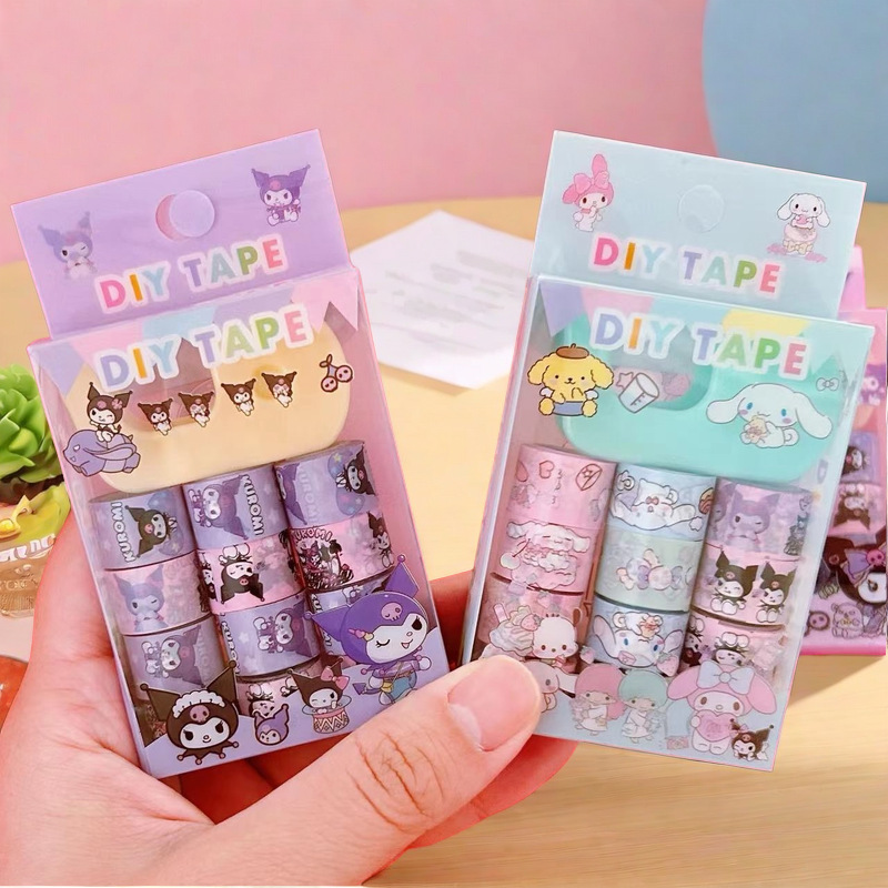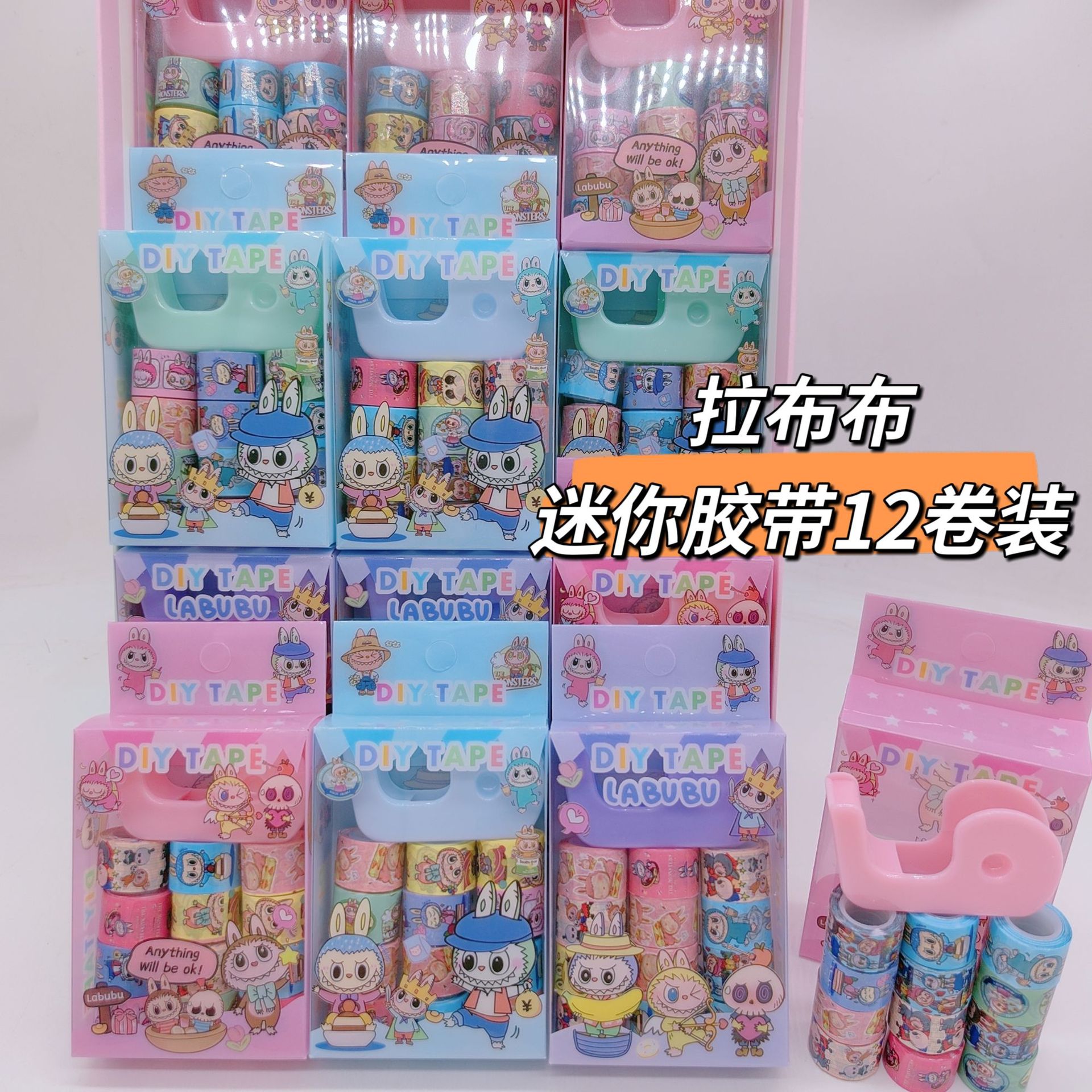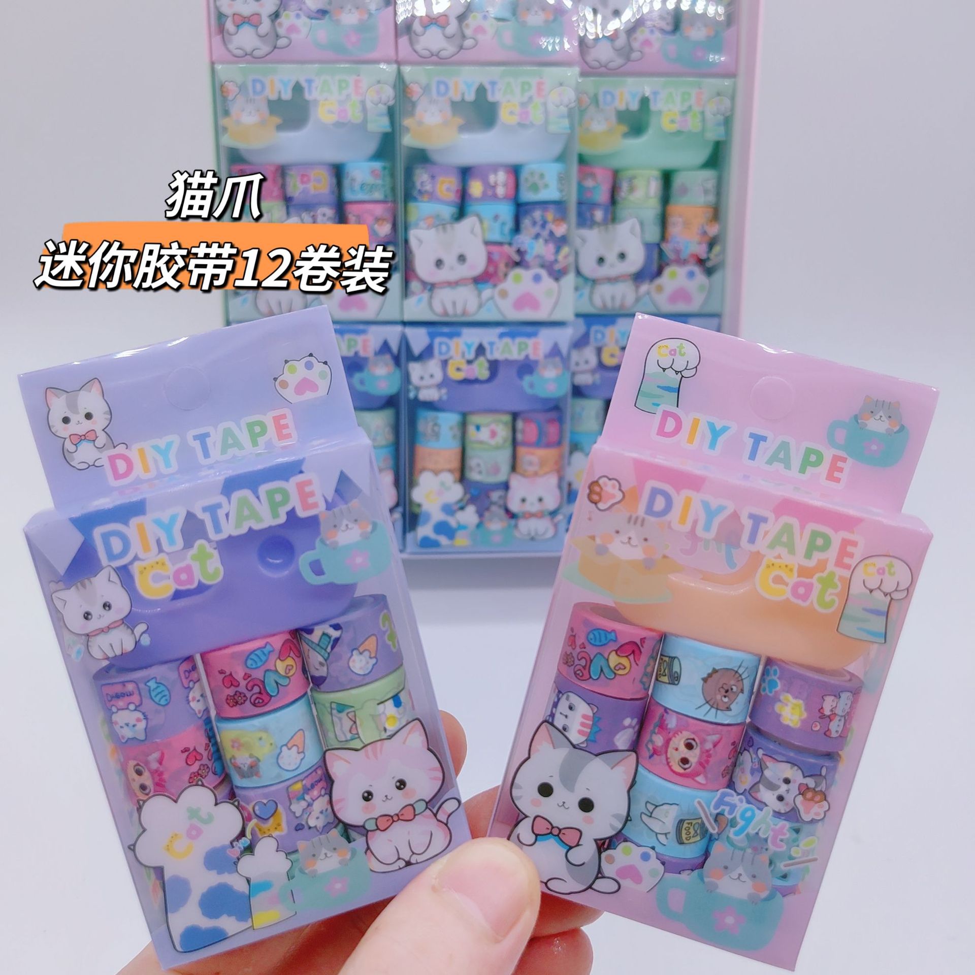 새로운 kulomi 멜로디 yugui 개 12 1 미니 및 종이 테이프 diy gummed 종이 홀더 손 계정 스티커 세트