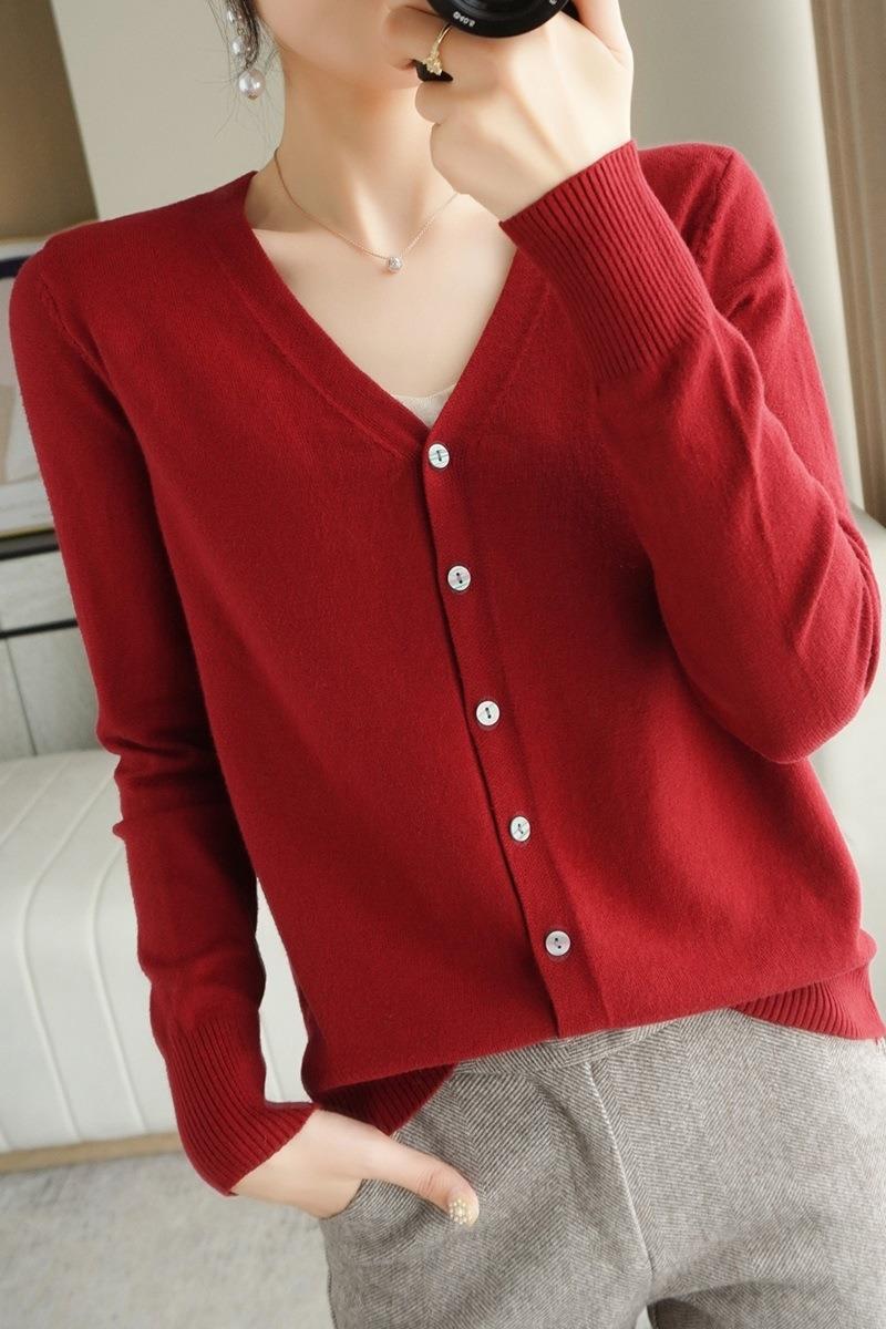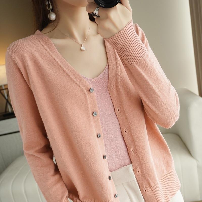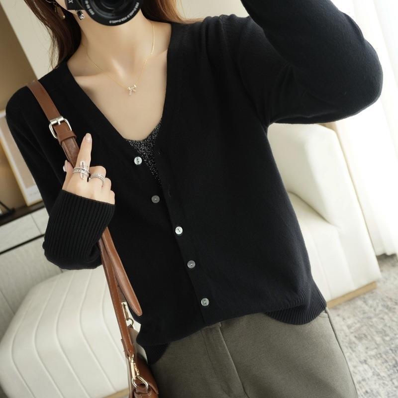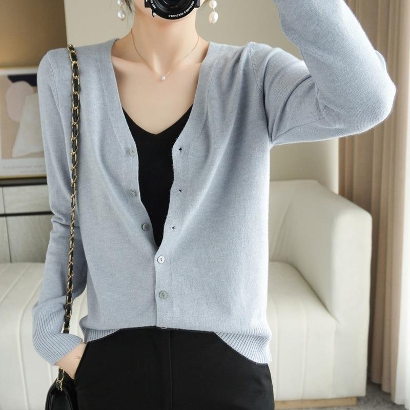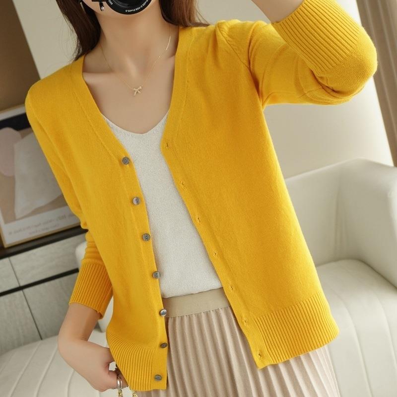 봄과 가을 새로운 니트 카디건 여성용 얇은 V-Neck 스웨터 재킷 느슨한 플러스 사이즈 외부 긴 소매 탑