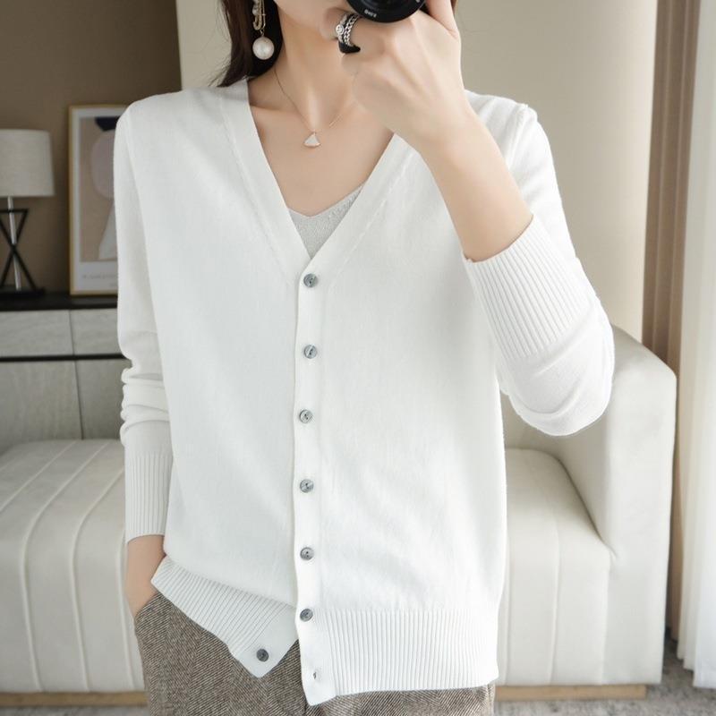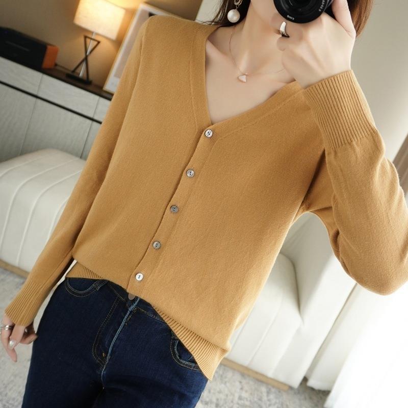 봄과 가을 새로운 니트 카디건 여성용 얇은 V-Neck 스웨터 재킷 느슨한 플러스 사이즈 외부 긴 소매 탑스토어 가기
